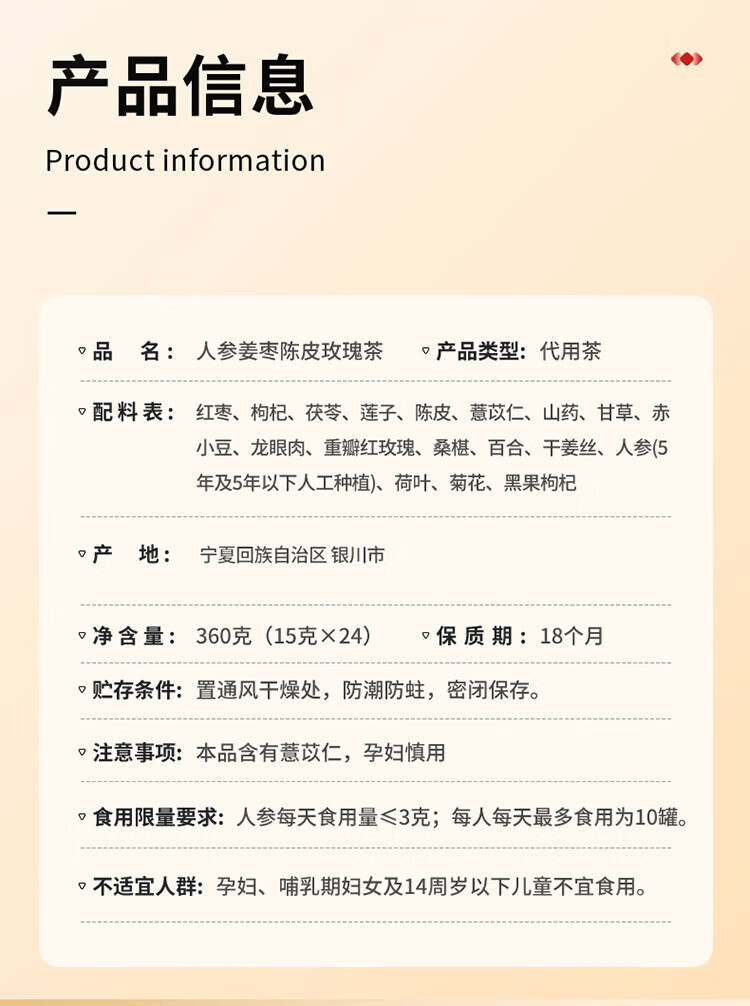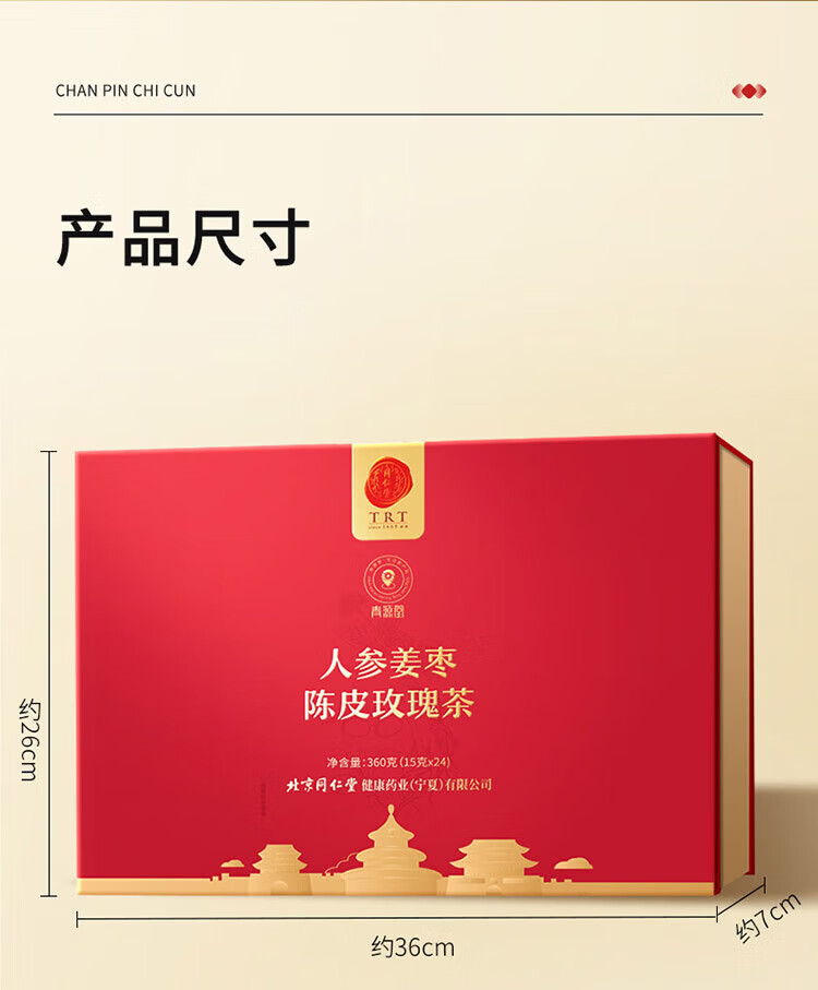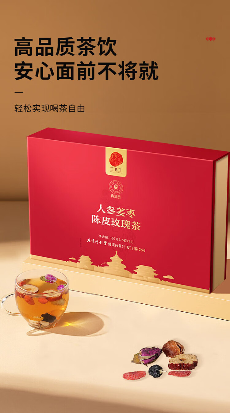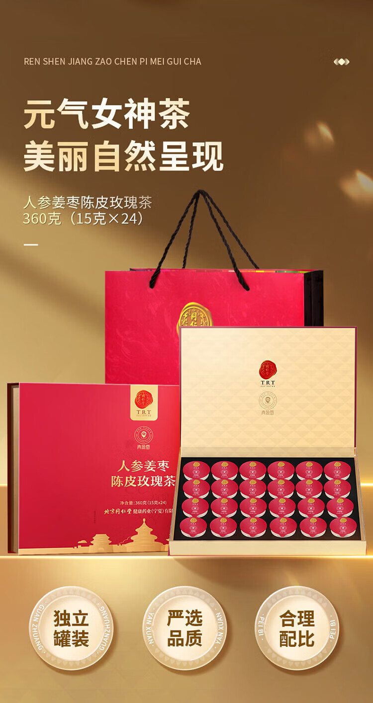 同仁堂人参姜枣陈皮玫瑰茶24罐养生滋补女神节礼物养生茶礼盒 360g(内含24罐)