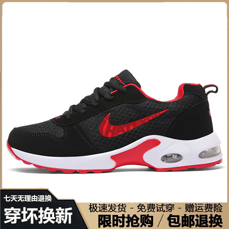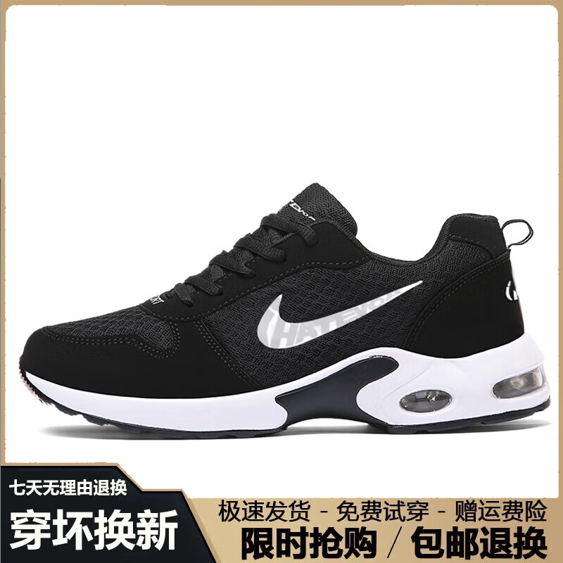 轻奢男鞋2026春季新款户外运动鞋男网面跑步鞋男士休闲百搭鞋子男 NK666黑白【皮面】 41