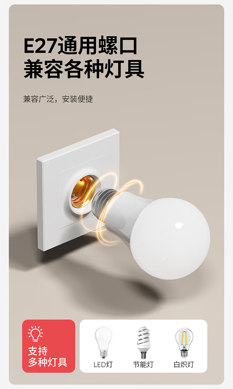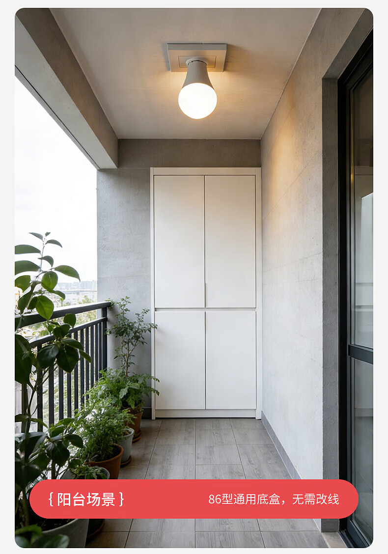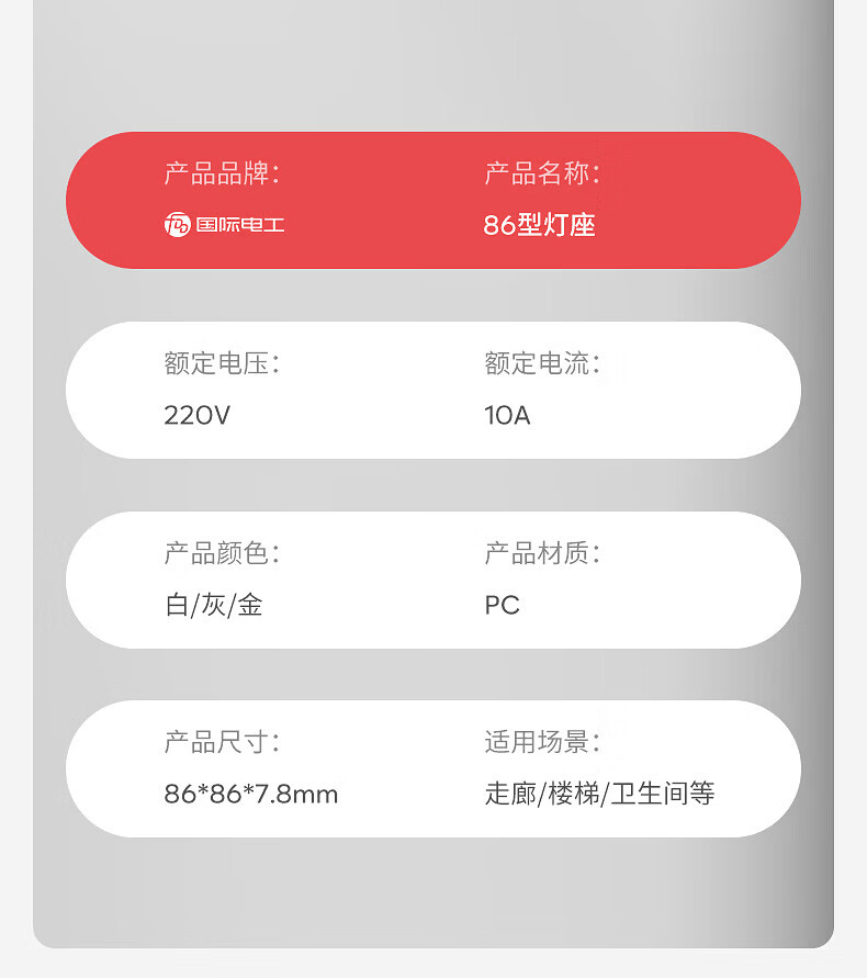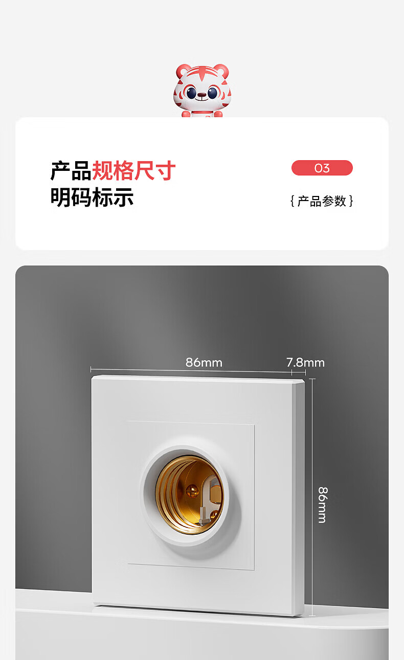 国际电工E27螺口灯头灯座家用墙壁86型暗装方形LED节能灯泡螺纹灯头 暗装灯座-白色 1只装