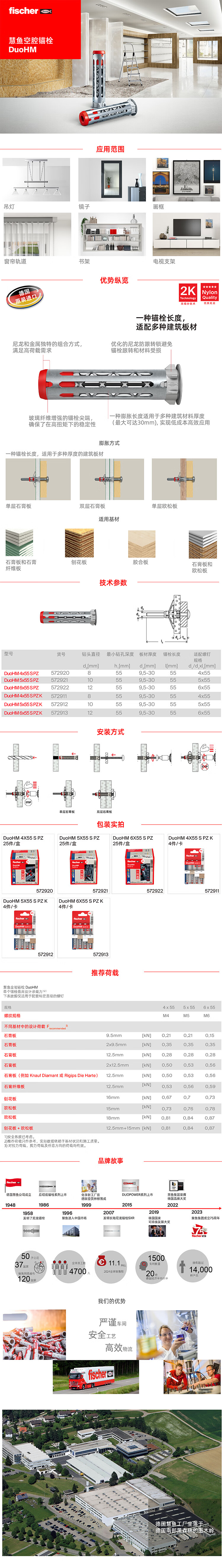 德国fischer慧鱼膨胀螺丝空腔锚栓石膏板胶合板OSB板专用DuoHM 4X55S原厂钉1套572920