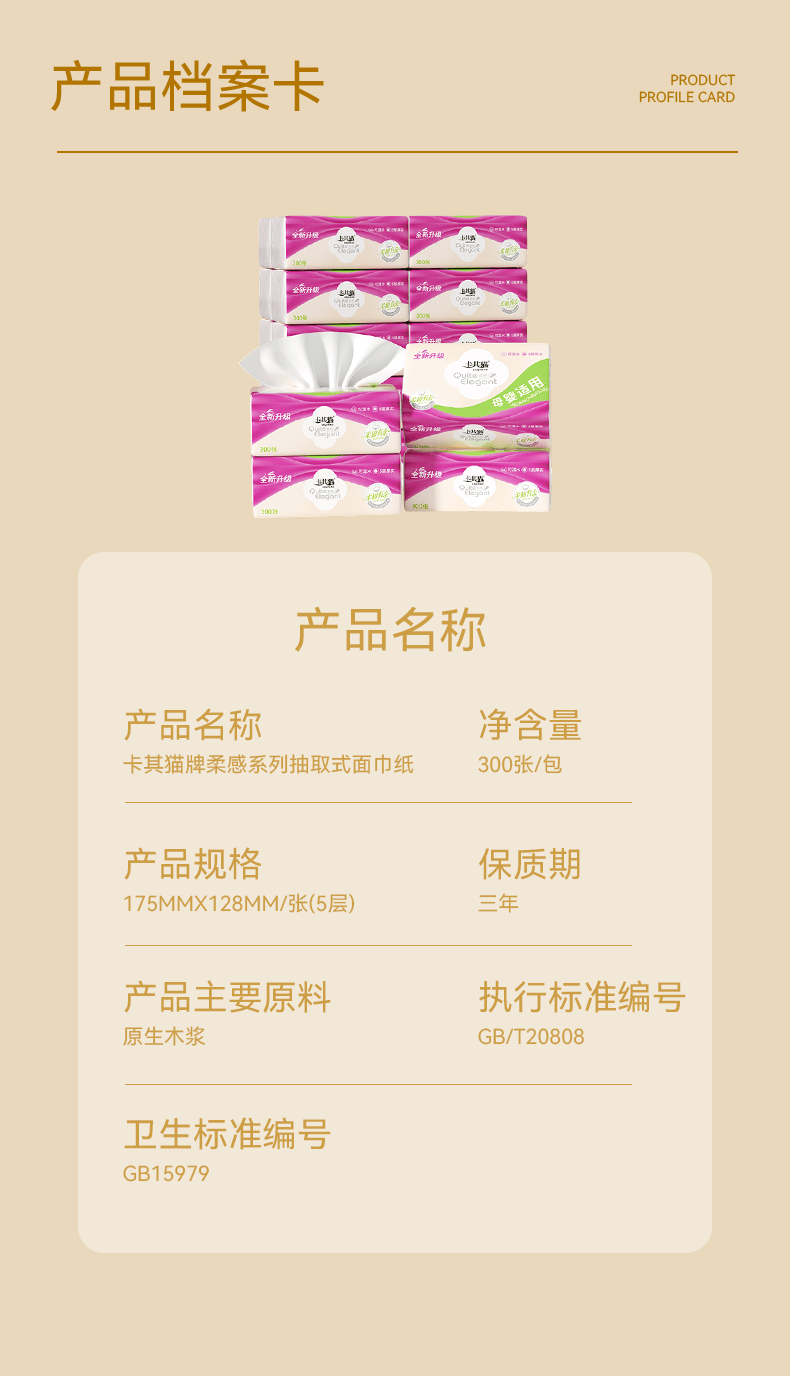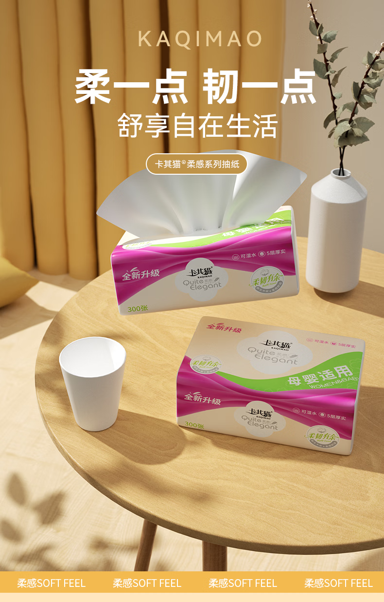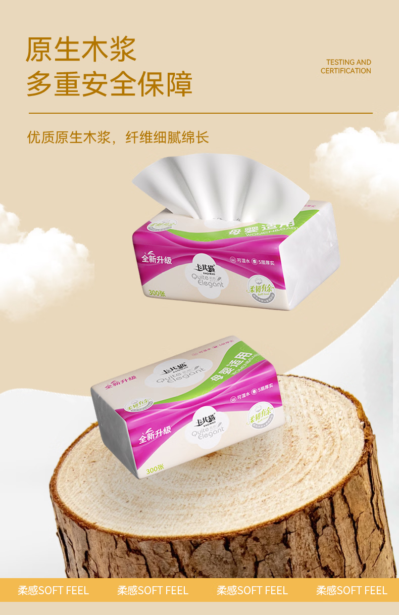 卡其猫抽纸原木餐巾纸加厚家用亲肤柔软卫生纸可湿水面巾纸 【商超品质】 5层 300张*18包