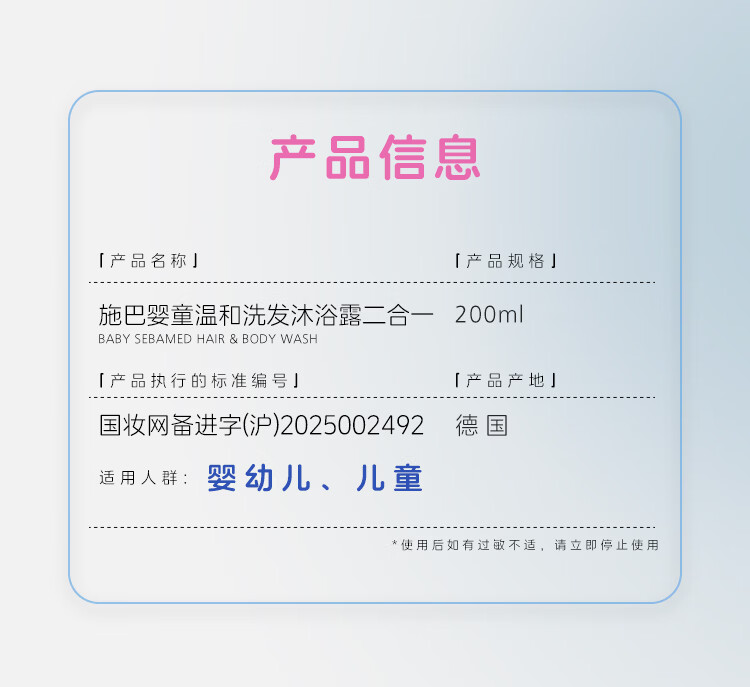 施巴(Sebamed)洗发沐浴二合一200ml德国进口宝宝洗发水儿童沐浴乳洗沐1瓶2用 洗沐二合一200ml