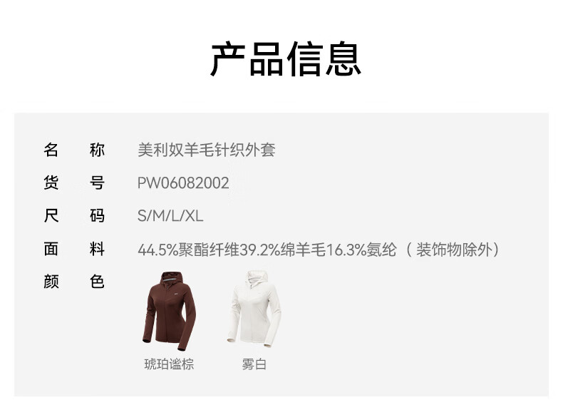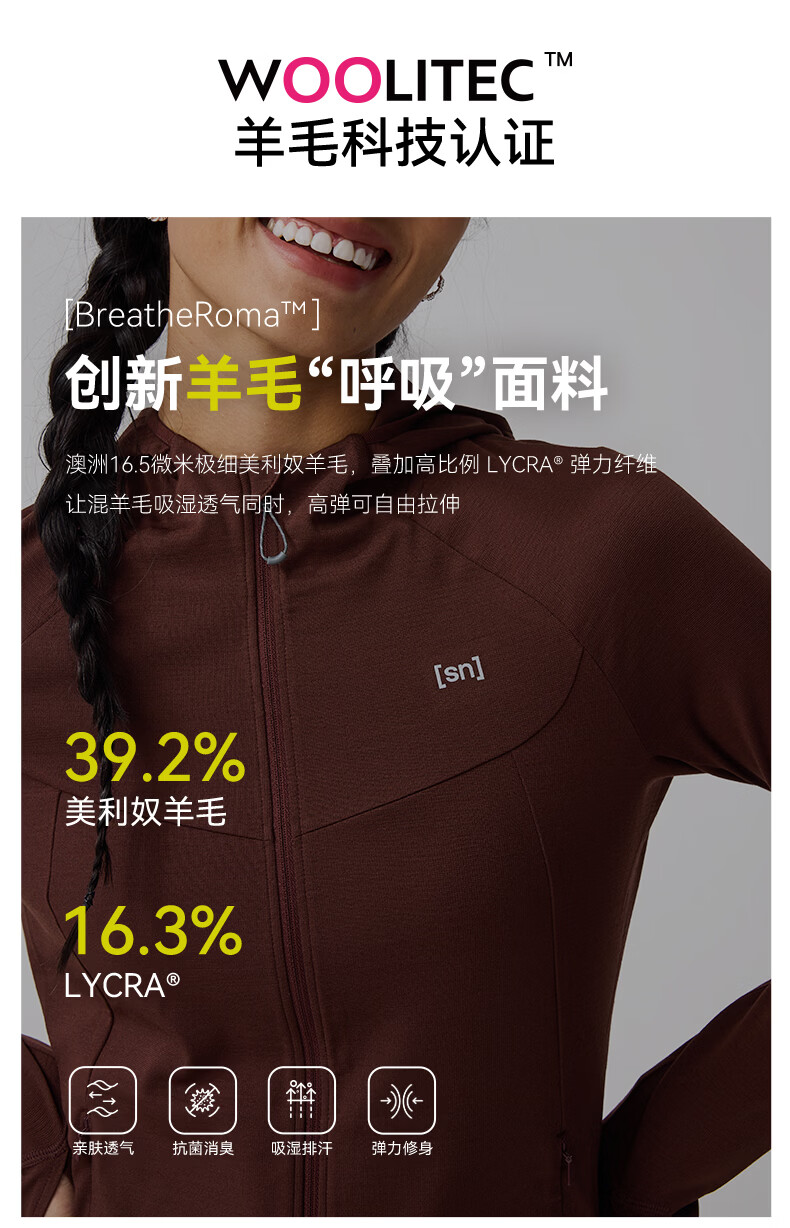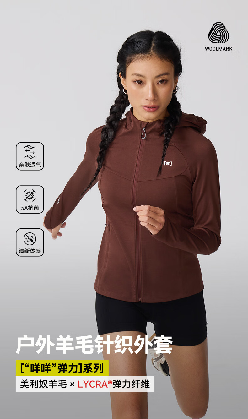 SN【春夏新品】SN美利奴羊毛外套针织衫女户外可机洗 咩咩弹力系列 琥珀谧棕 M
