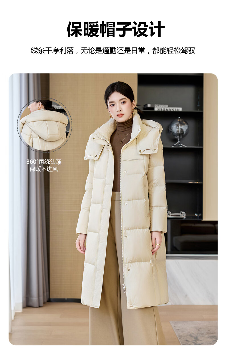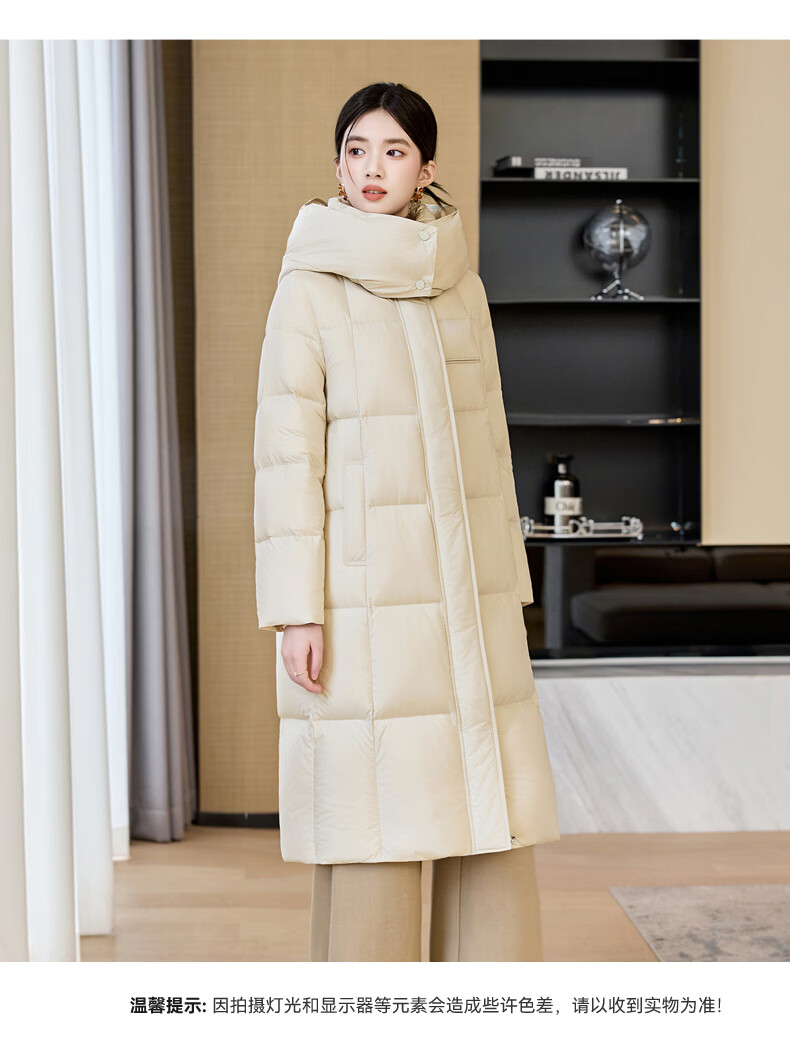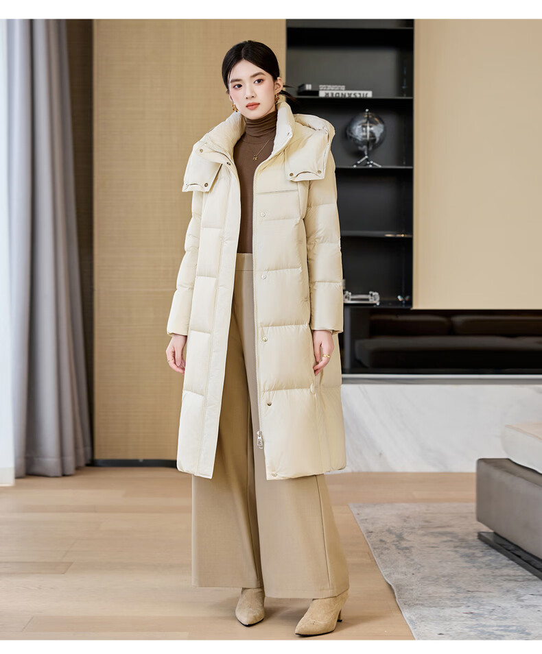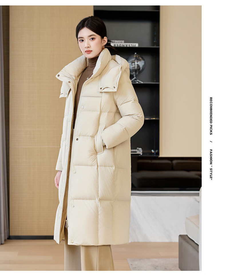 雪中飞过膝加厚羽绒服女中长款2026年新款直筒通勤气质百搭冬季保暖外套 米白 XL 170/92A