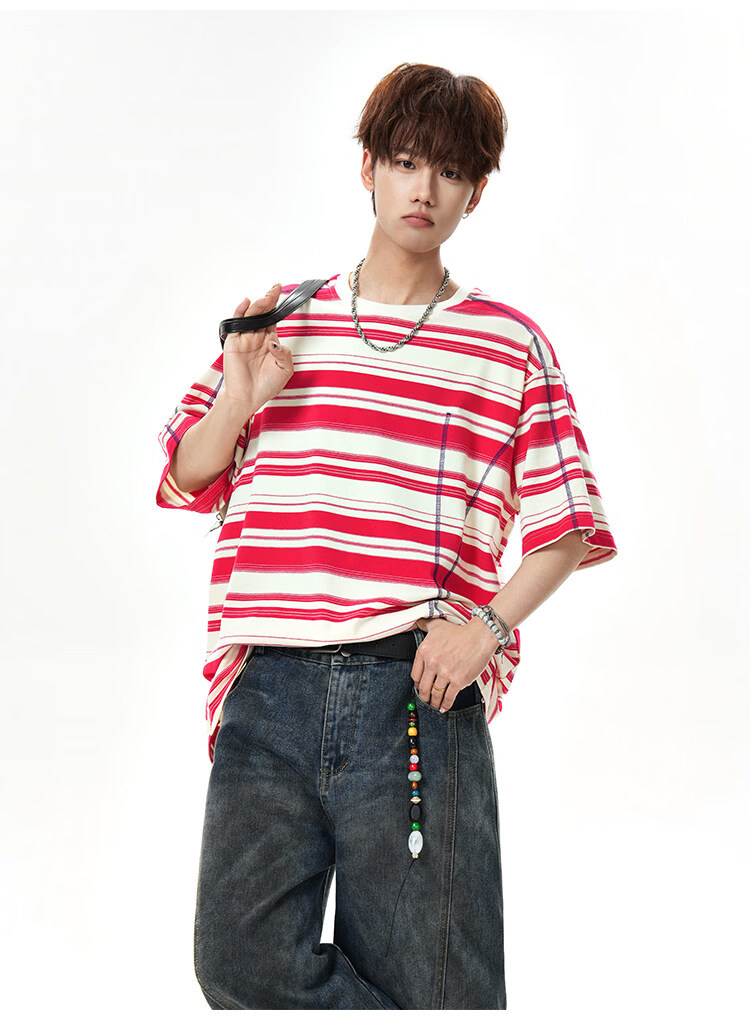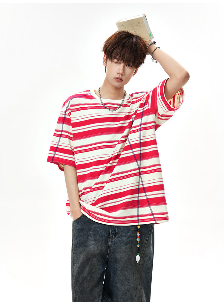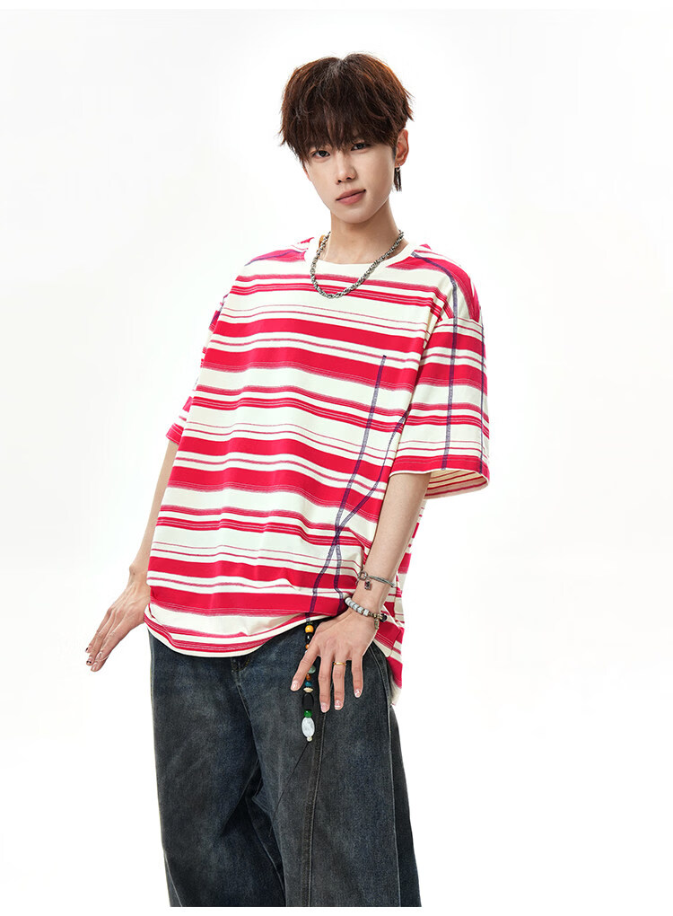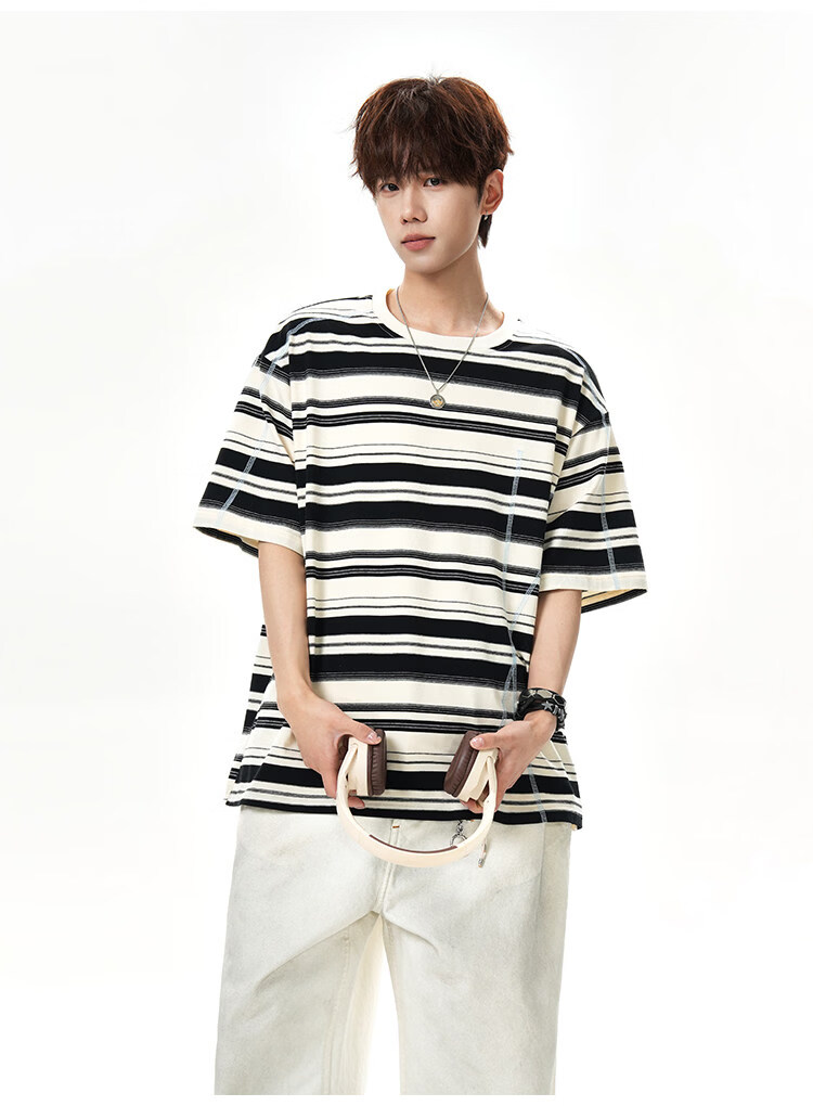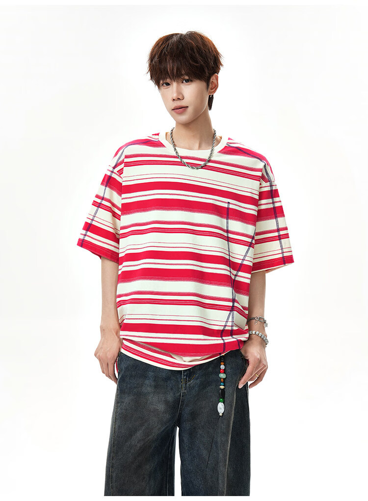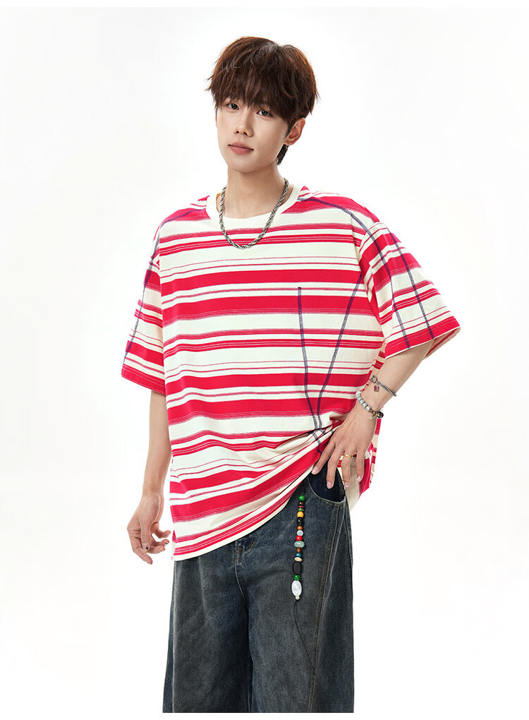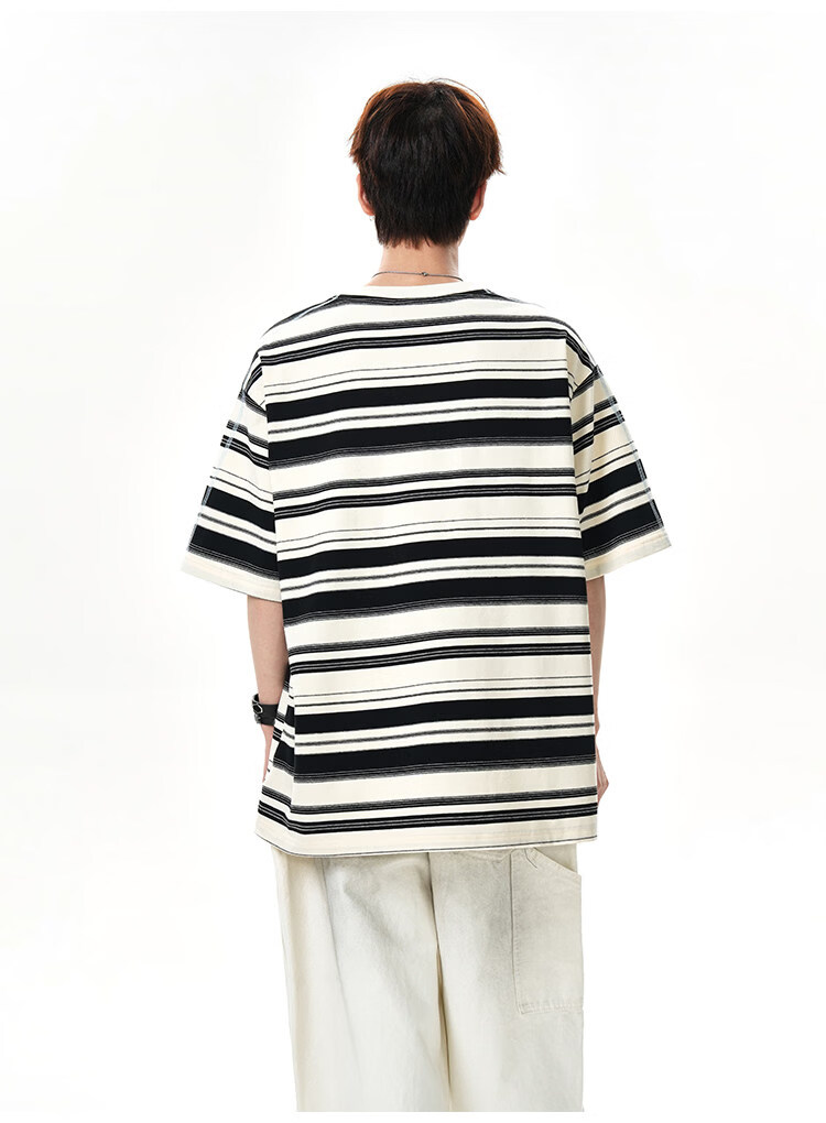 NEW OR MODE美式哈苏线条纹短袖t恤男夏季新款潮牌高街宽松痞帅青少年半袖T恤 绿色【高品质】 M 【建议90-110斤】