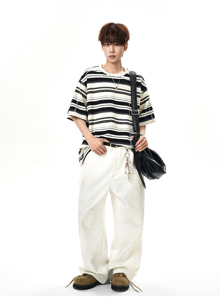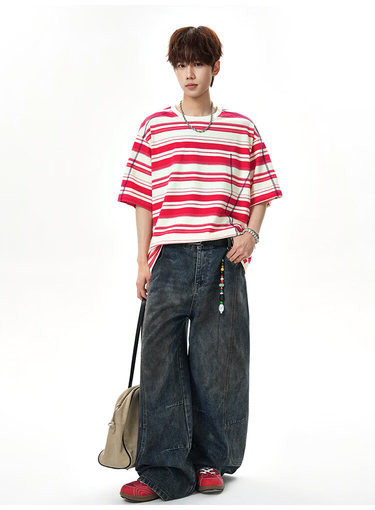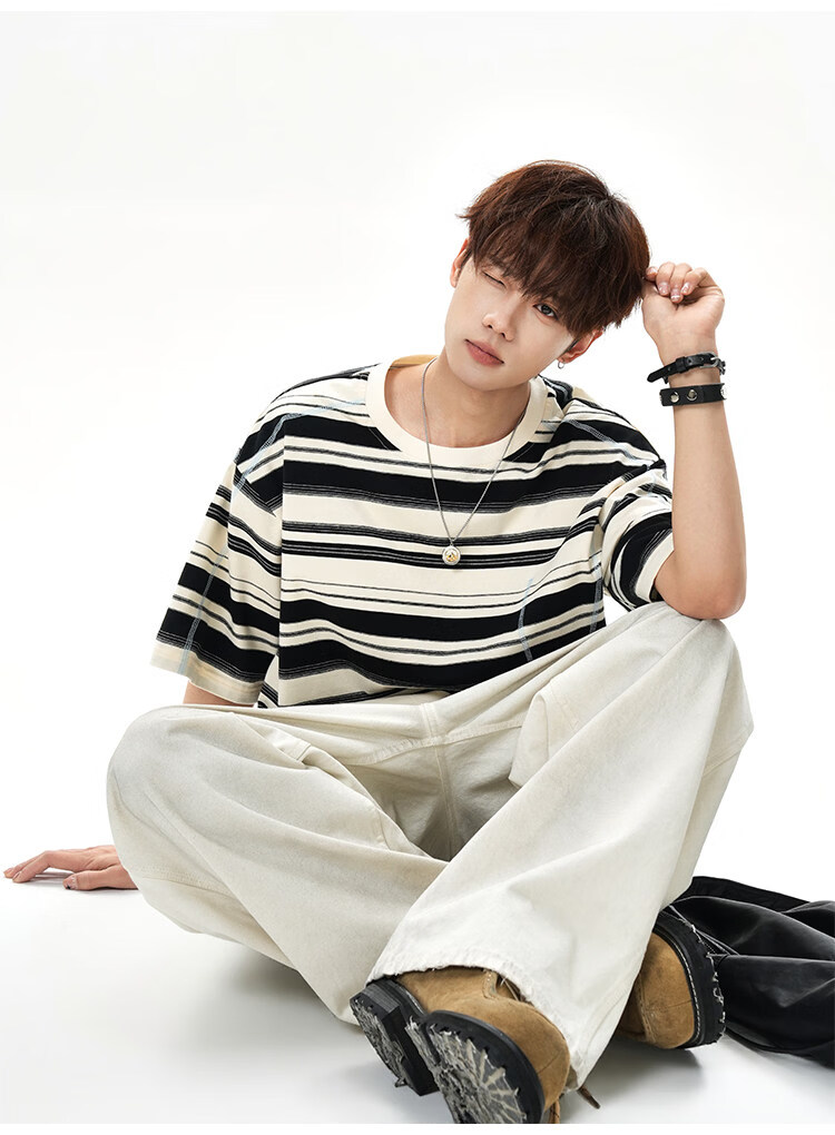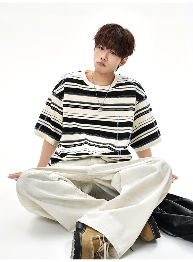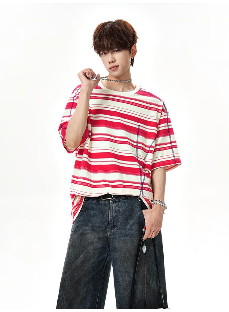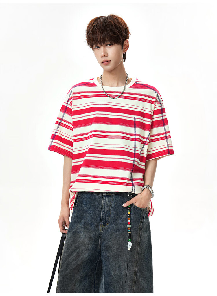 NEW OR MODE美式哈苏线条纹短袖t恤男夏季新款潮牌高街宽松痞帅青少年半袖T恤 绿色【高品质】 M 【建议90-110斤】