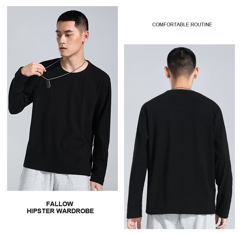 真维斯(Jeanswest)纯棉长袖t恤男款春夏新款青少年内搭打底衫男士宽松美式潮牌上衣 藏青 野营很好 M