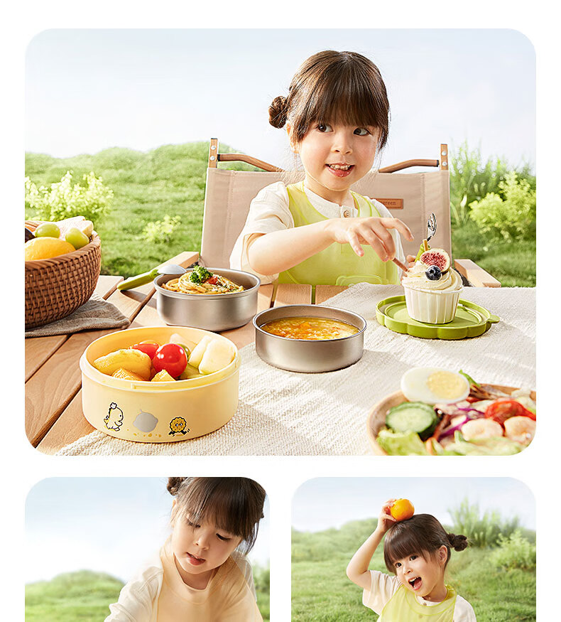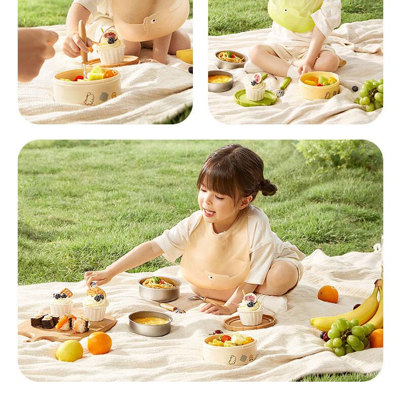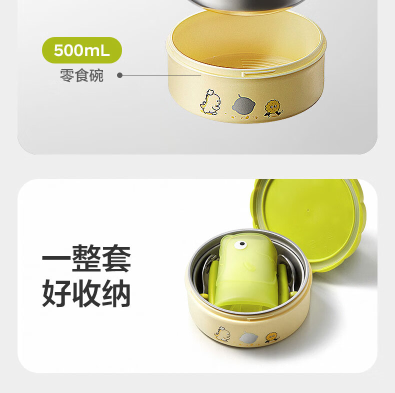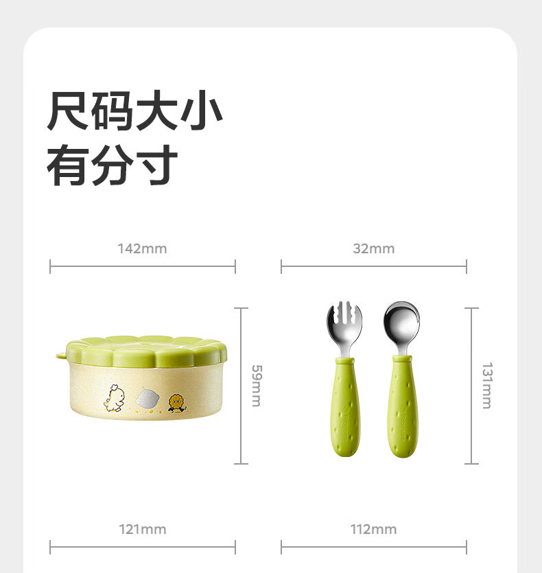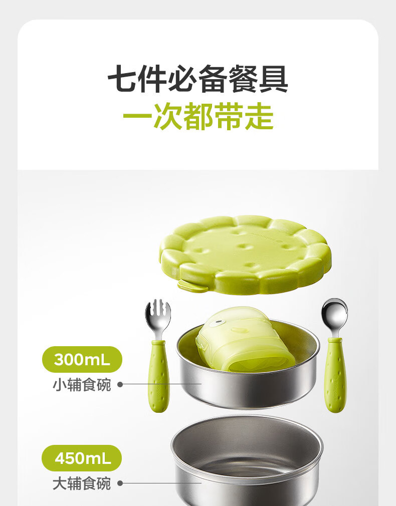 babycare宝宝外出便携辅食碗儿童餐具多功能旅行碗叉勺保温杯卡通套装 青