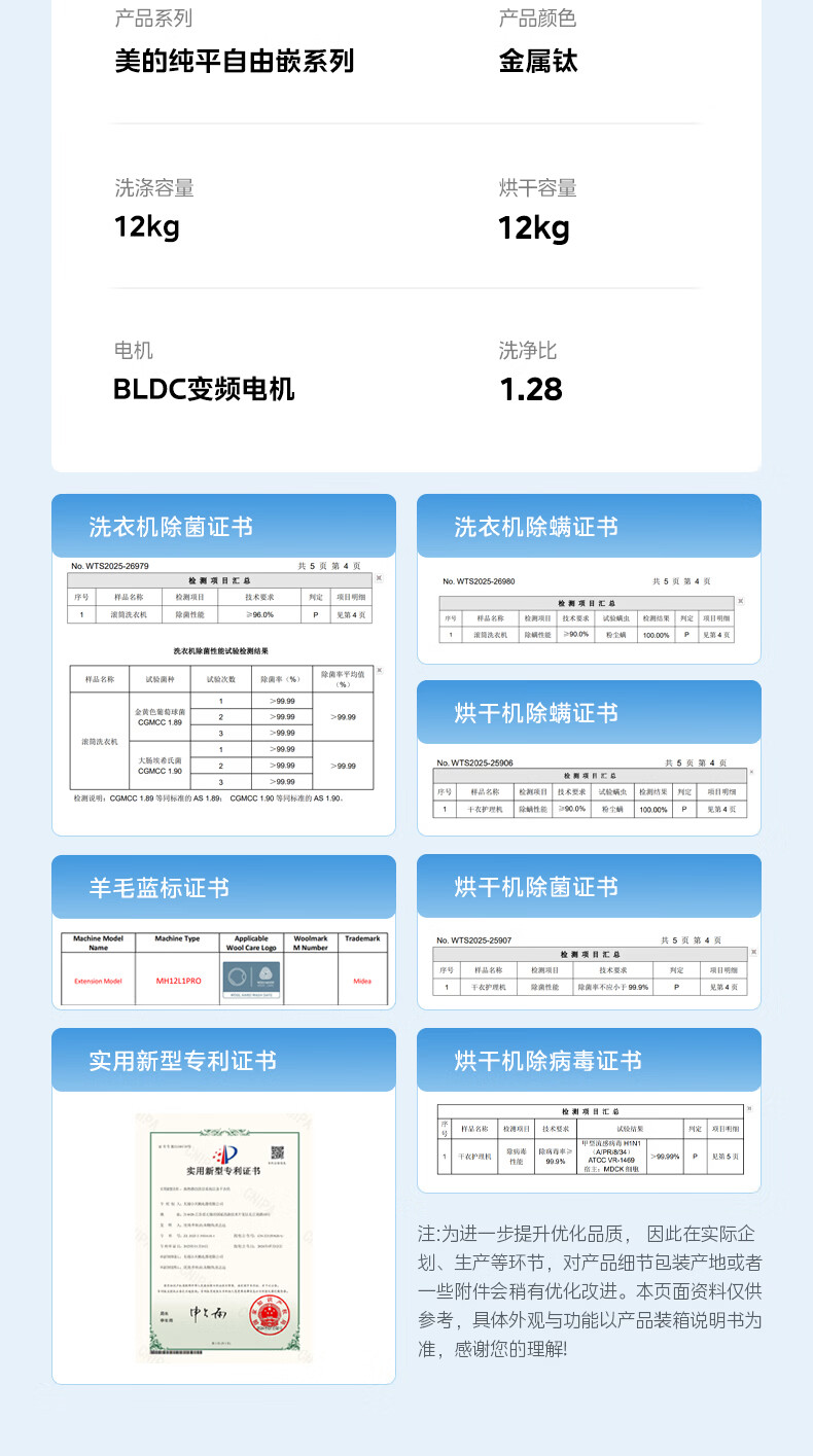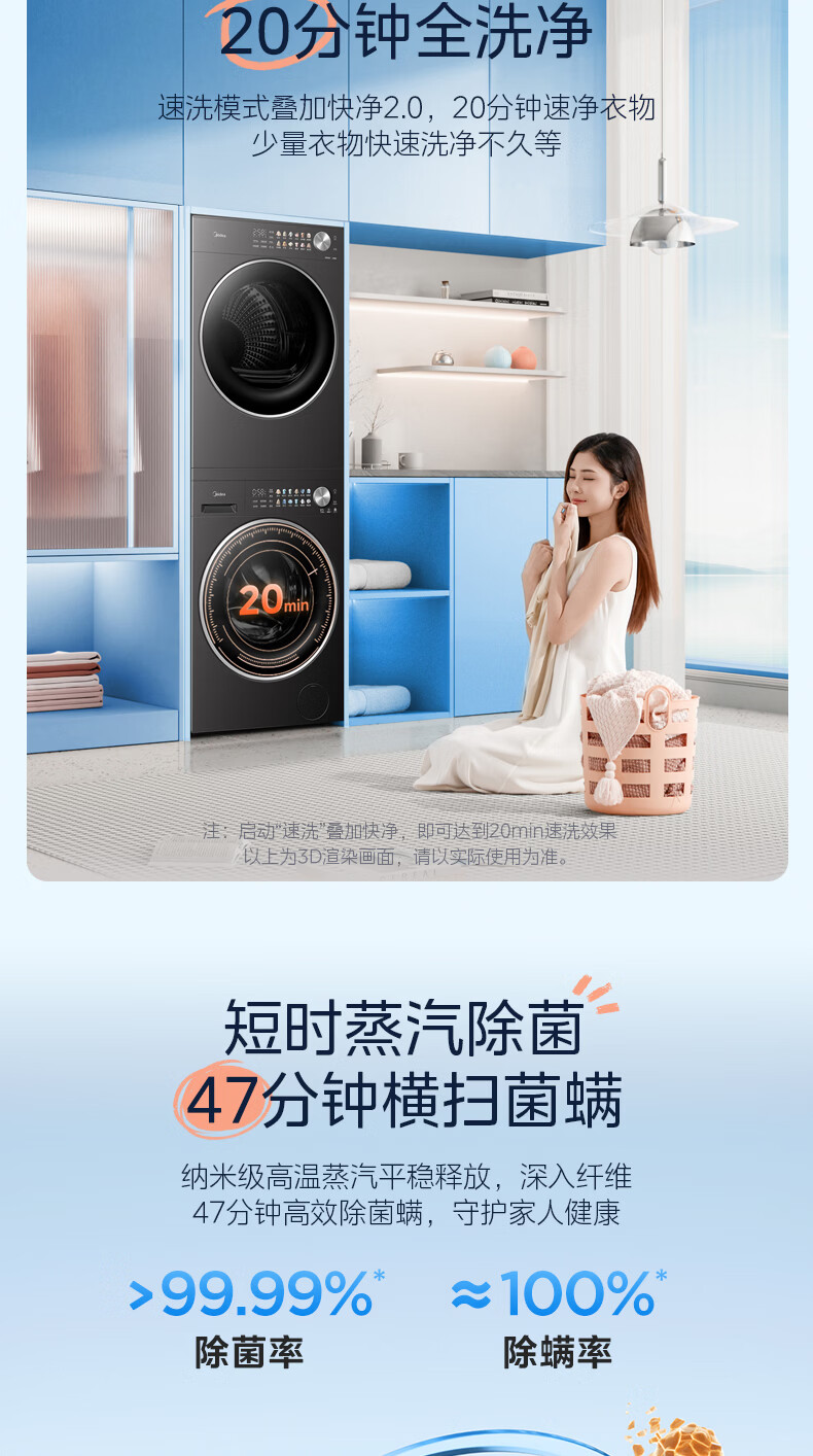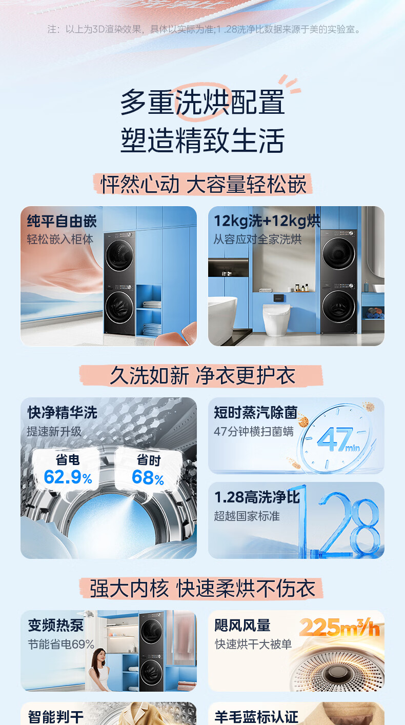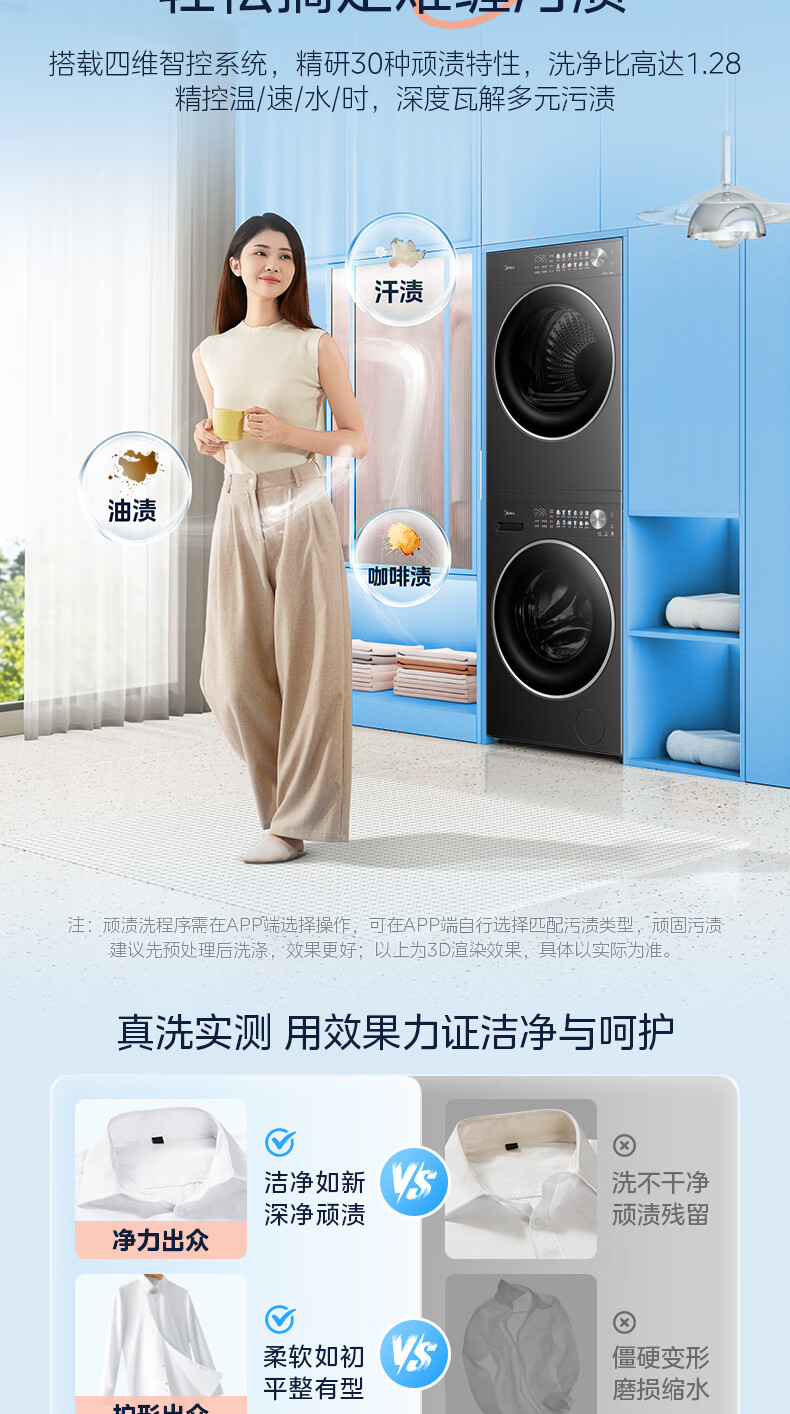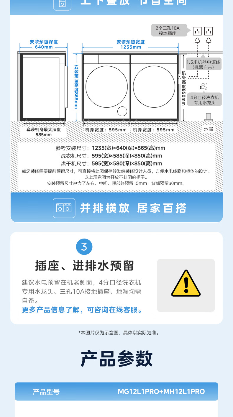 美的(Midea)洗烘套装12kg滚筒洗衣机+12kg热泵烘干机 全变频省水省电智能投放 1.28高洗净比智能判干除毛净屑一级能效 MG12L1PRO+MH12L1PRO