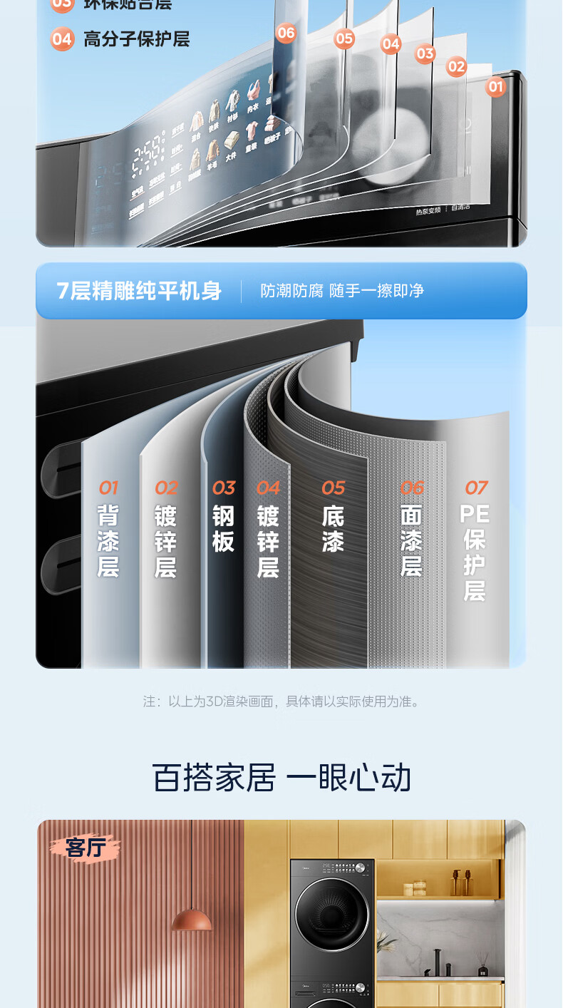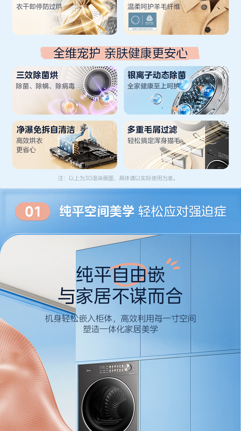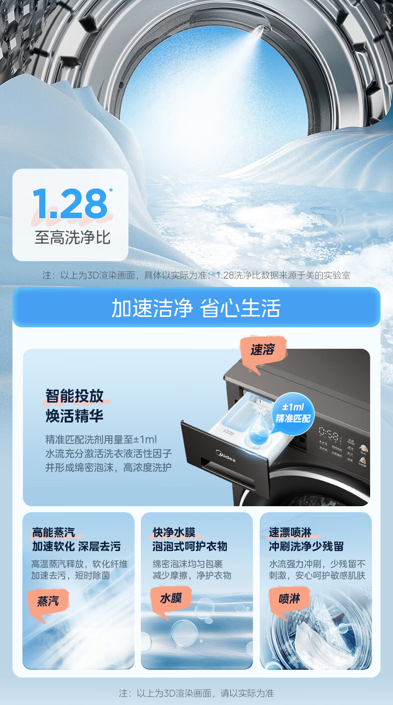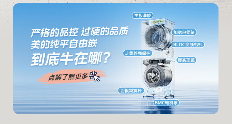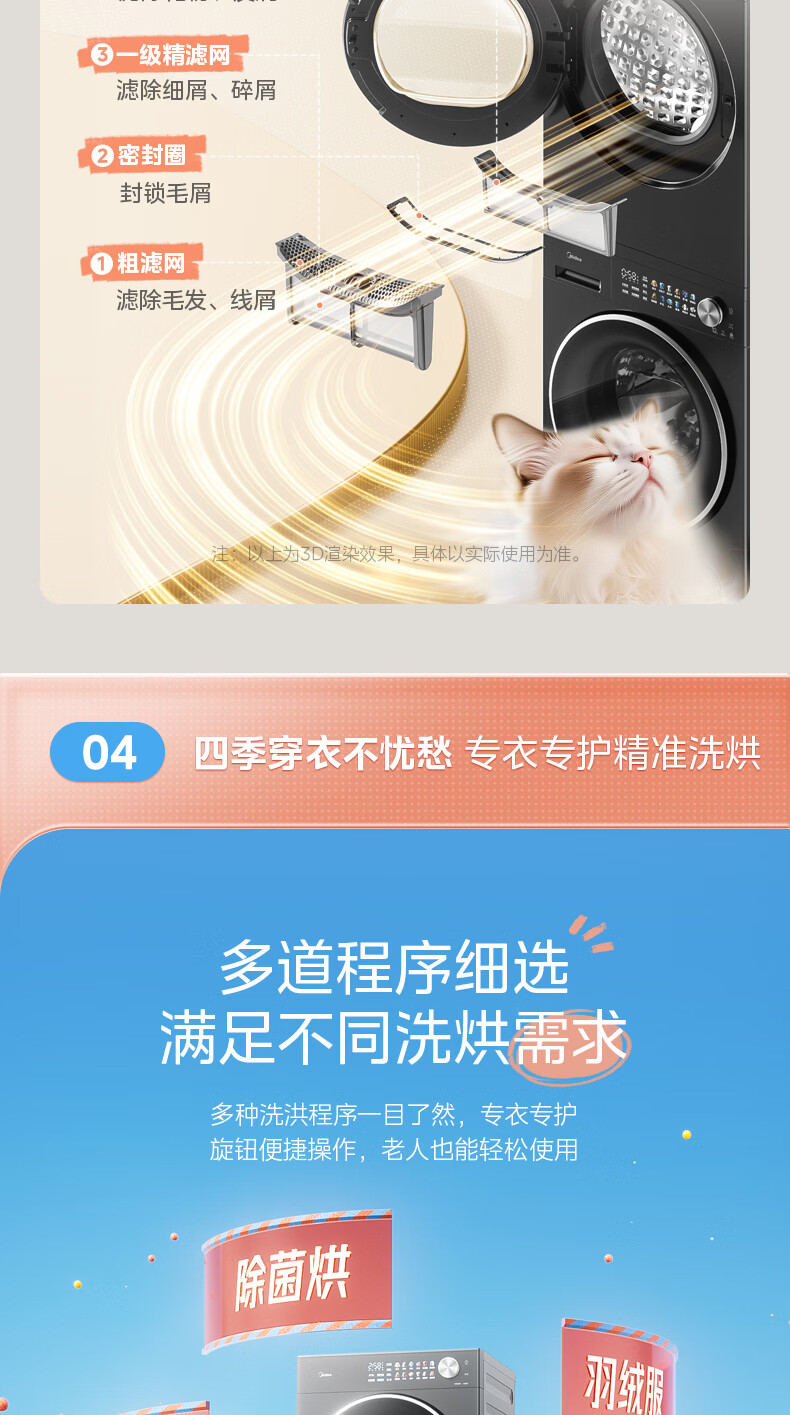 美的(Midea)洗烘套装12kg滚筒洗衣机+12kg热泵烘干机 全变频省水省电智能投放 1.28高洗净比智能判干除毛净屑一级能效 MG12L1PRO+MH12L1PRO