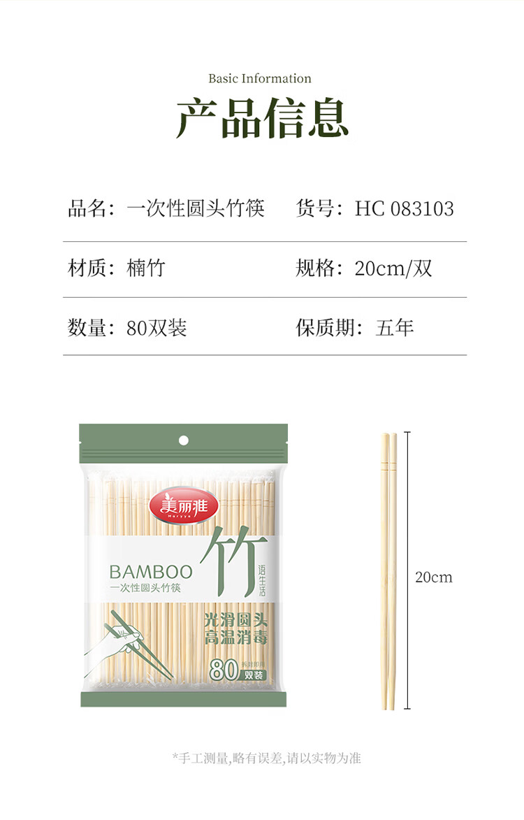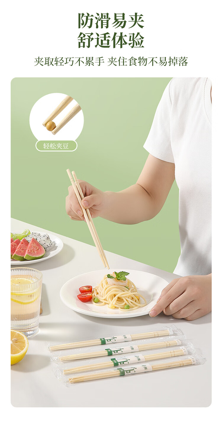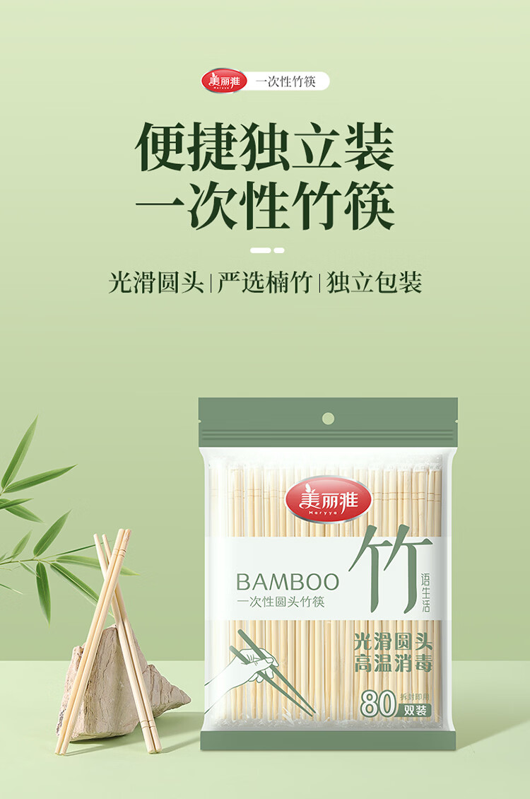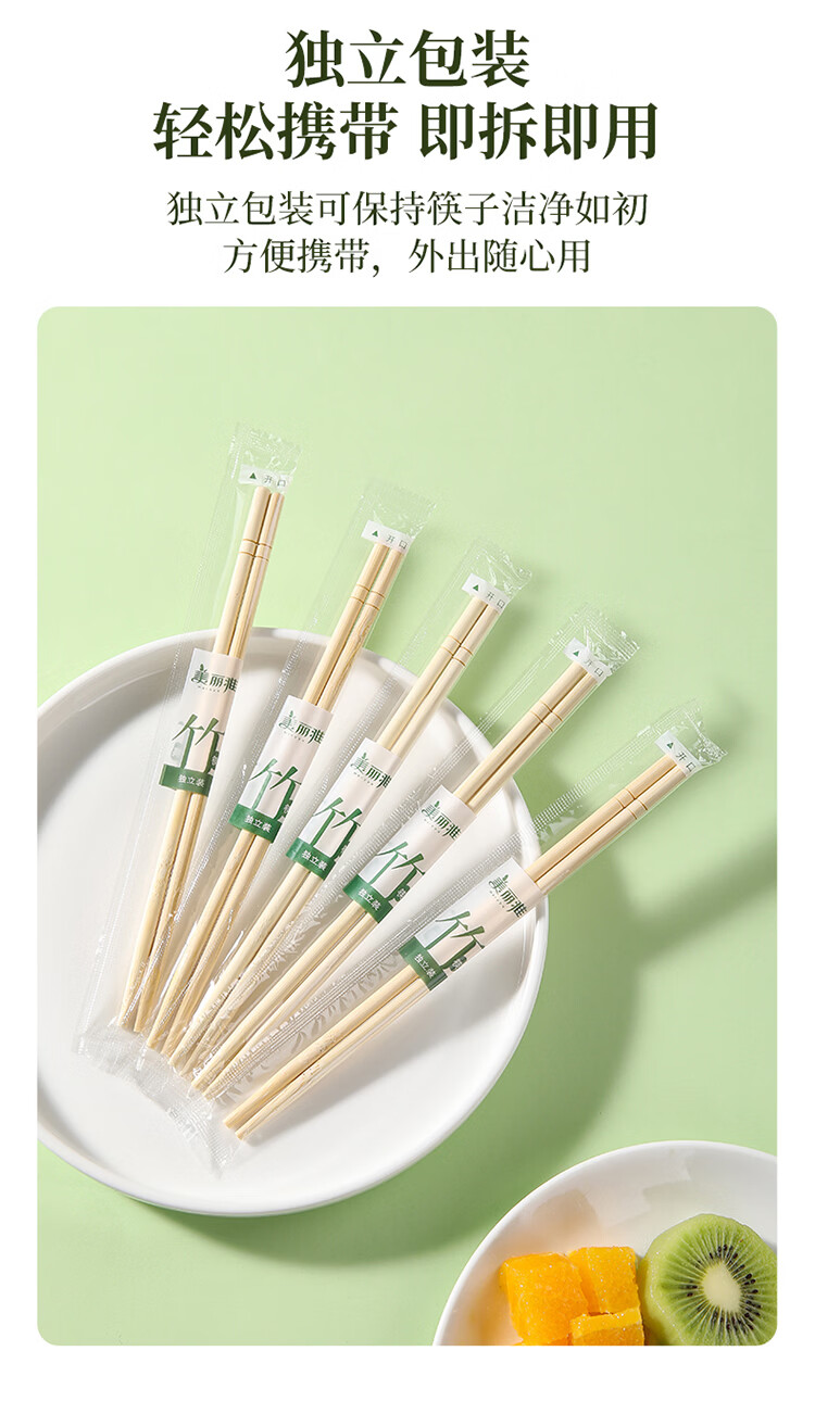 美丽雅一次性筷子独立包装80双 竹筷方便筷家用快餐方便外卖餐具
