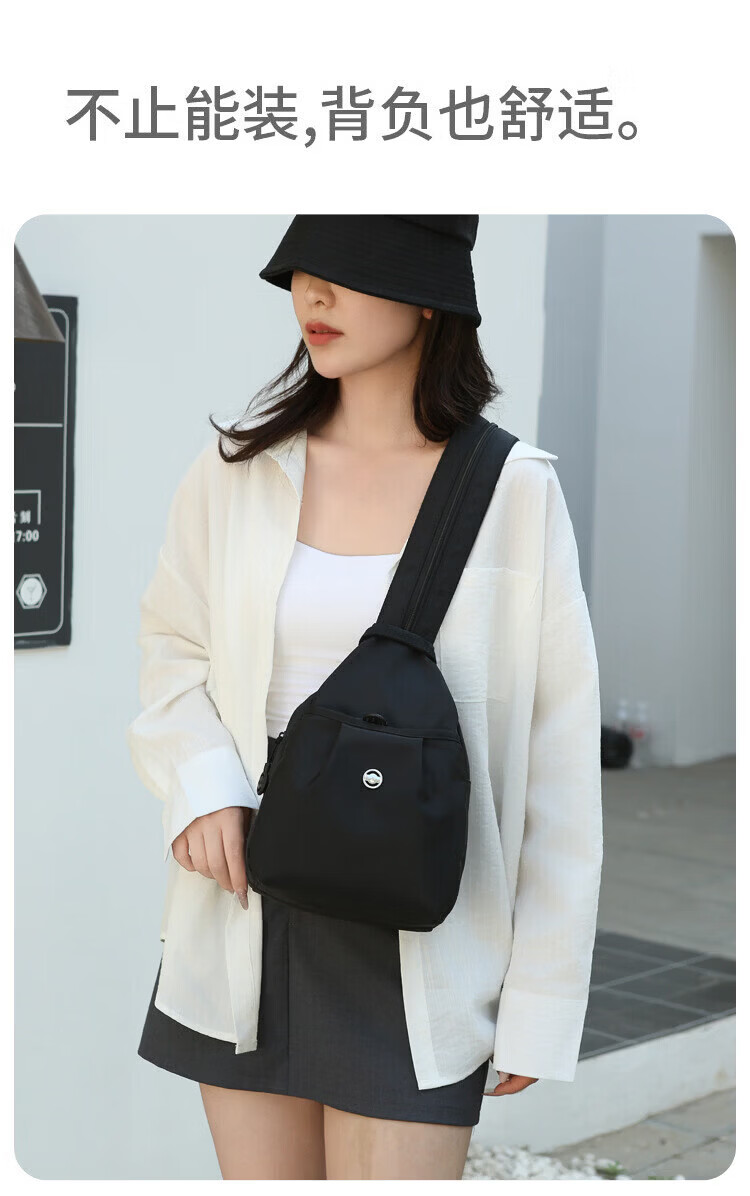 新款牛津布包潮流商务胸包男女单肩包帆布休闲背包防刮耐磨斜挎包 黑色【简约时尚】