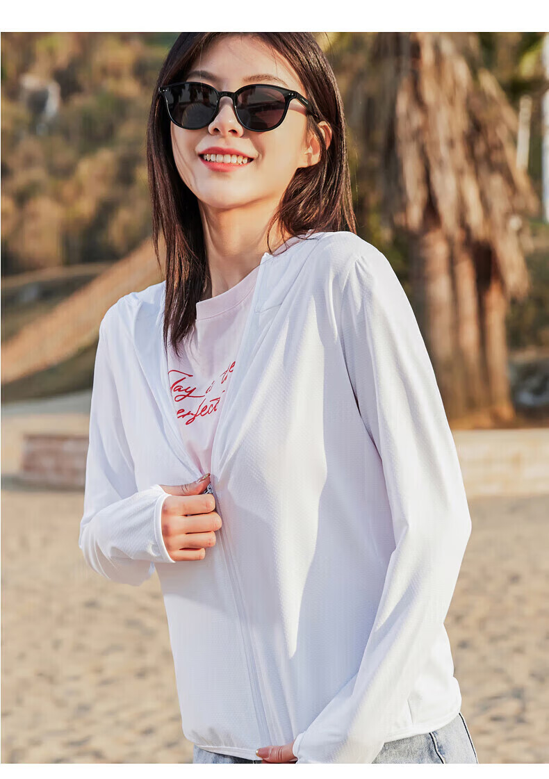罗蒙(ROMON)男女同款防晒衣2026夏季新款弹力透气连帽大帽檐防晒服 7J49199B白色【女款】 M (建议男95-115/女90-105斤)