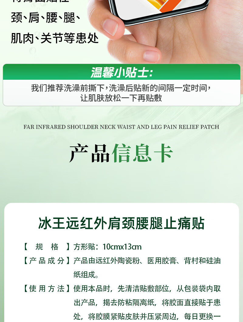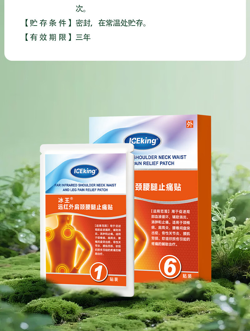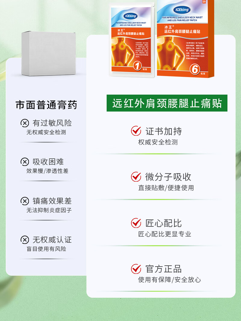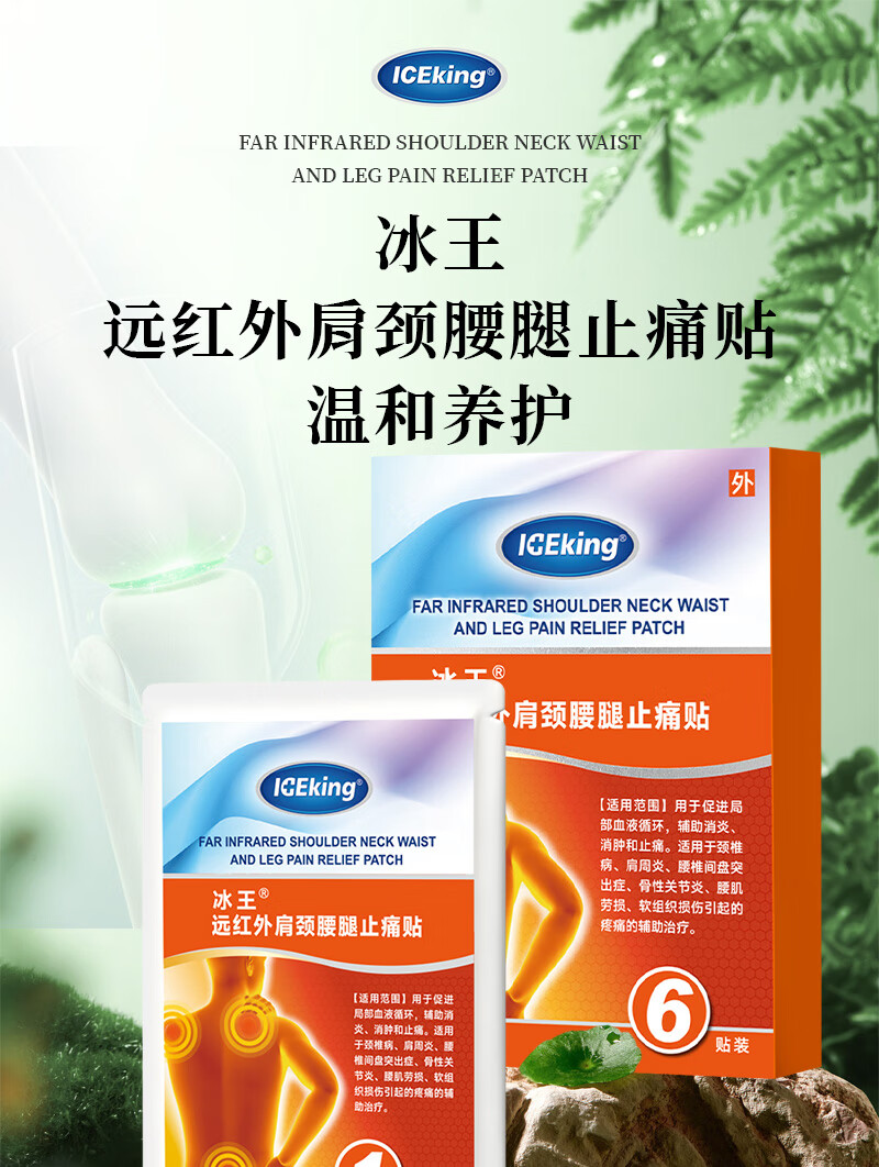 冰王止痛贴颈椎病肩周炎关节疼痛专用贴膏远红外止痛贴腰椎腰间盘突出 一盒体验装【到手6贴】缓解轻度关节疼痛