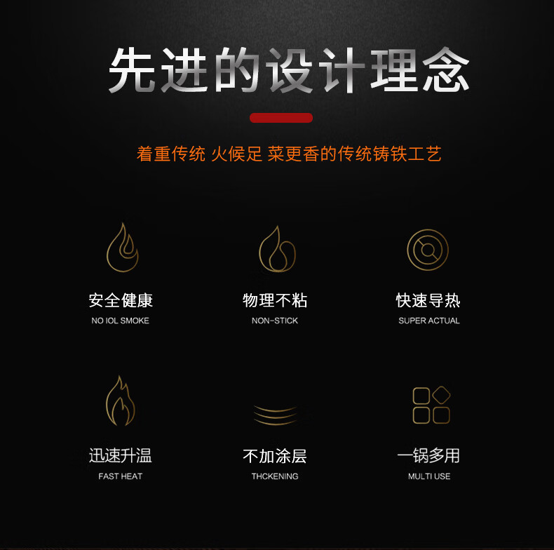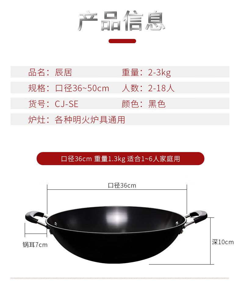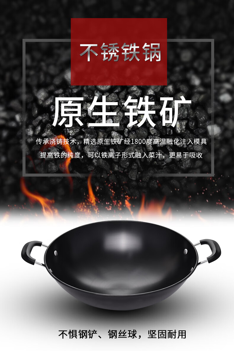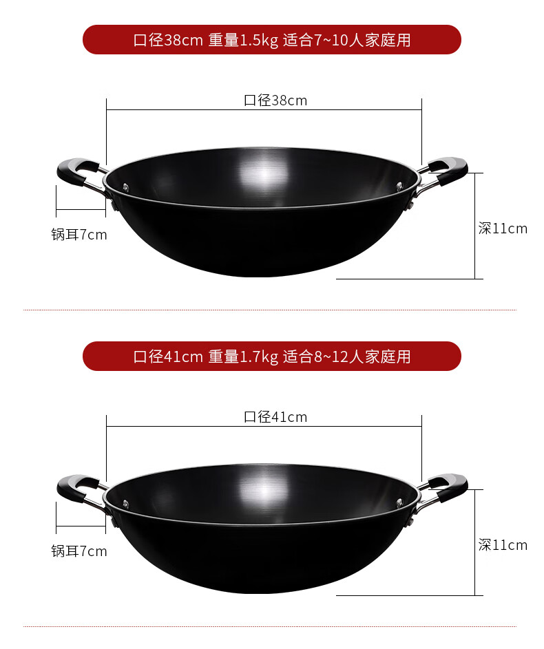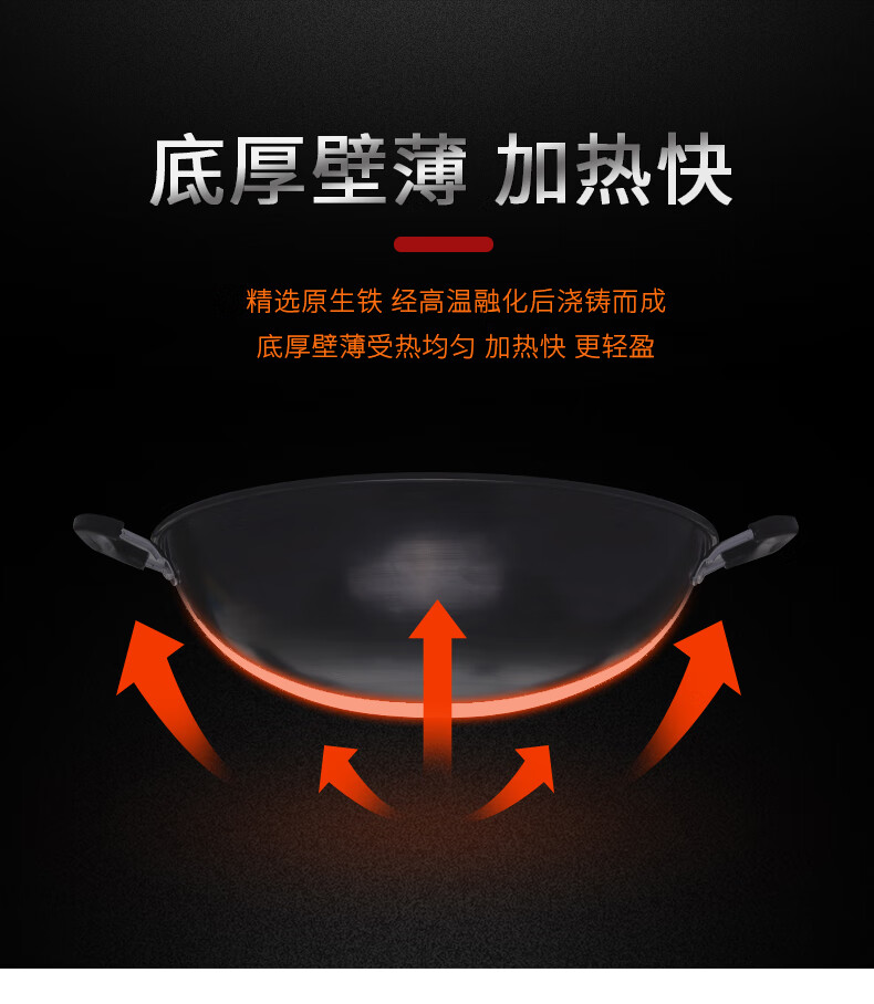 PJ双耳生铁锅大炒锅不粘锅煤气灶燃气灶铸铁炒菜锅具无涂层38 1寸 1寸50点cm炒锅适合9-14人鎹钢铲