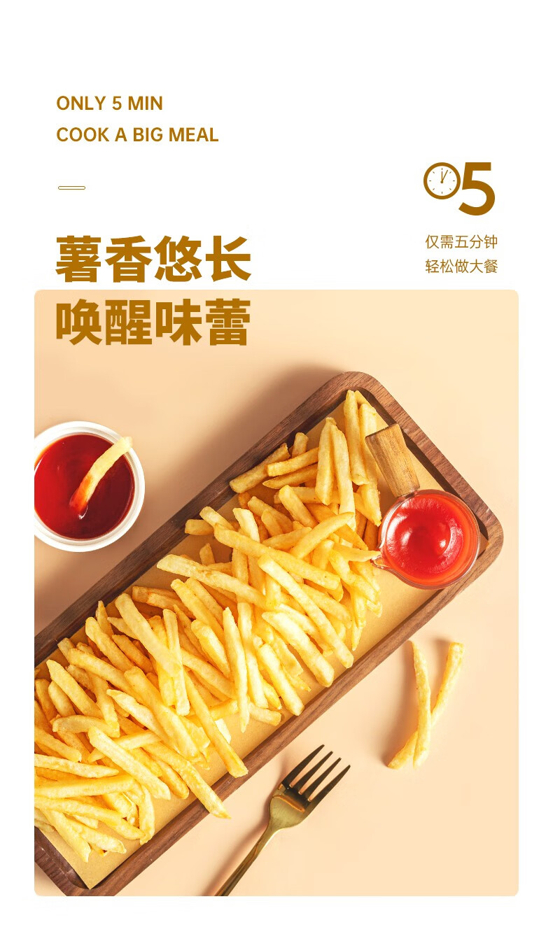 小牛凯西 薯条法式直薯半成品冷冻薯条 袋装送番茄酱空气炸锅食材可用 2包(共400g)