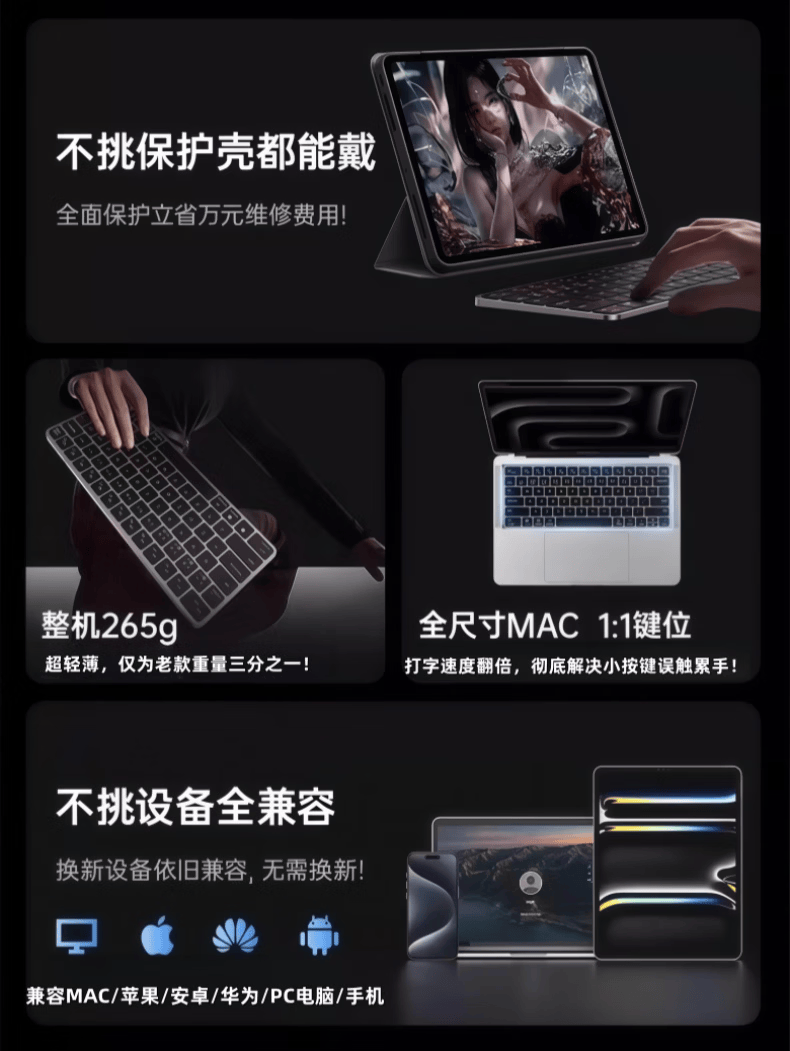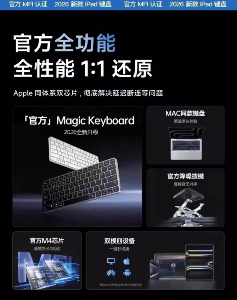 富有酷骑【美国MFI认证】妙控键盘鼠标适配苹果ipad平板Macbook笔记本台式air 蓝牙无线键鼠电脑手机通用 【妙控键盘-苹果白】原版质量认证丨原版妙控键位 78