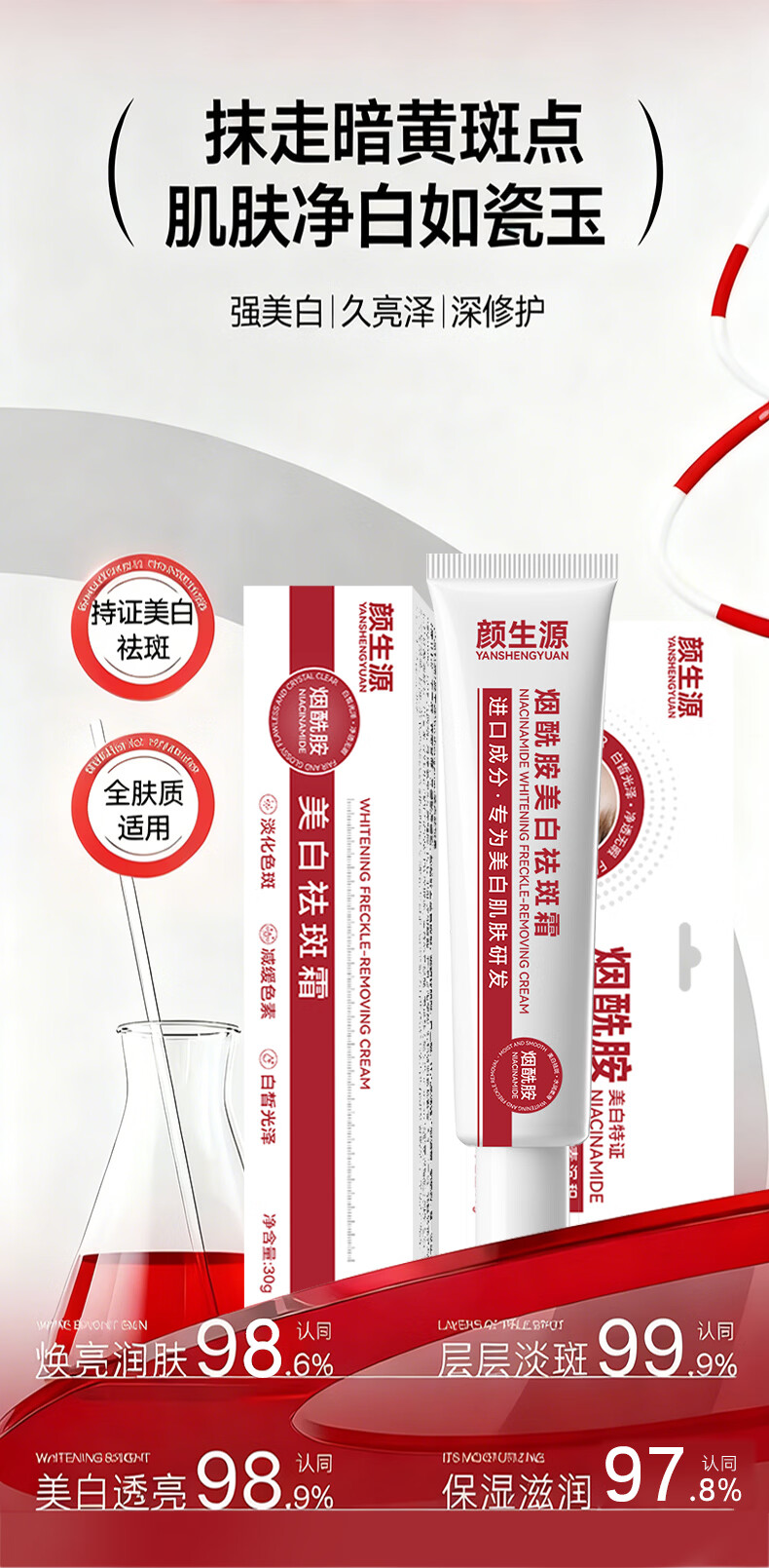 烟酰胺祛癍霜30g/支提亮肤色改善暗沉男女通用祛斑淡黑提拉紧致 买三送二,烟酰胺祛斑霜
