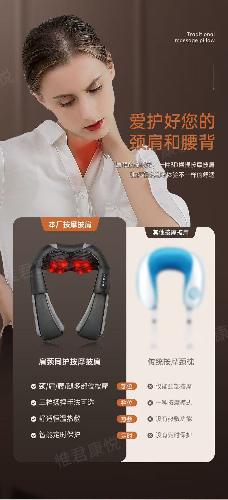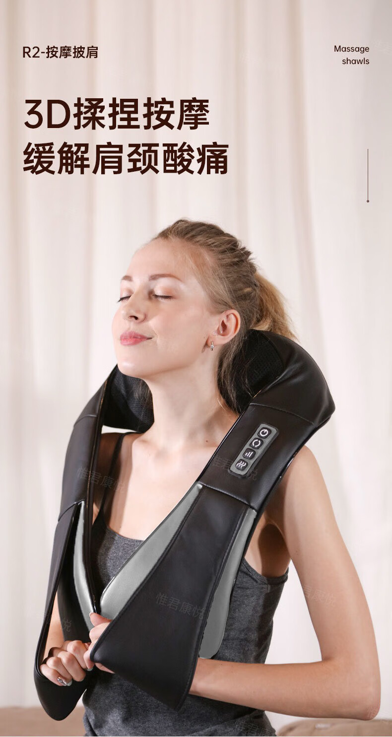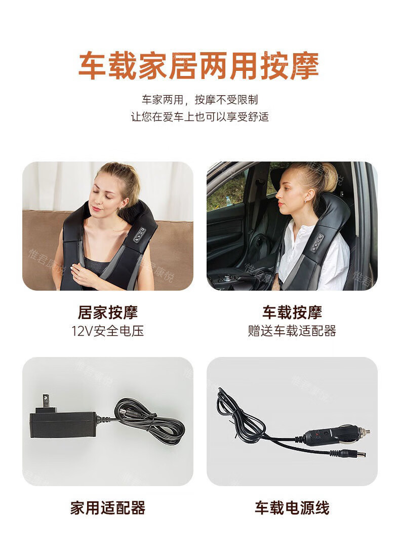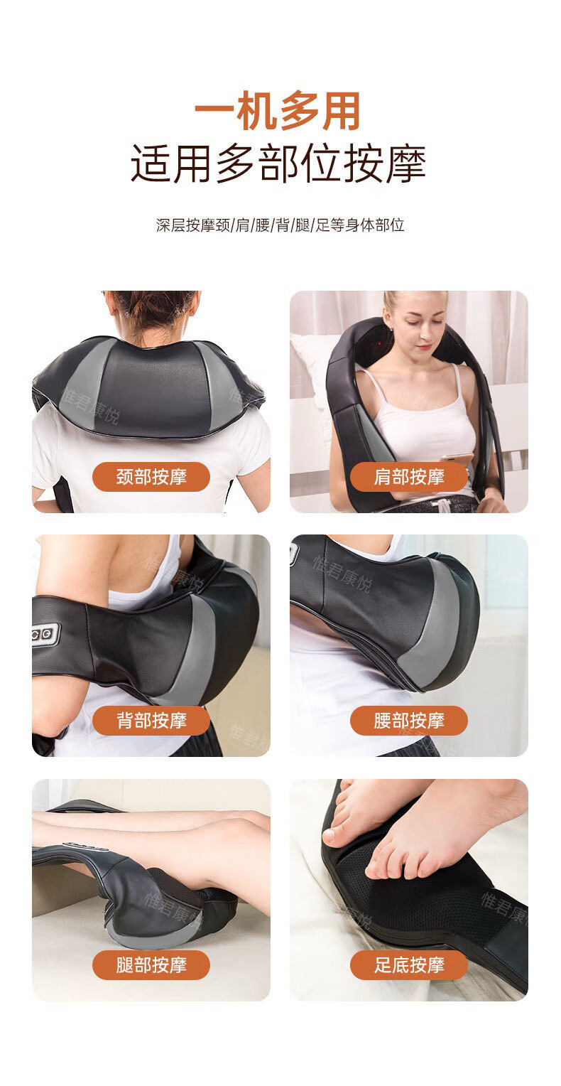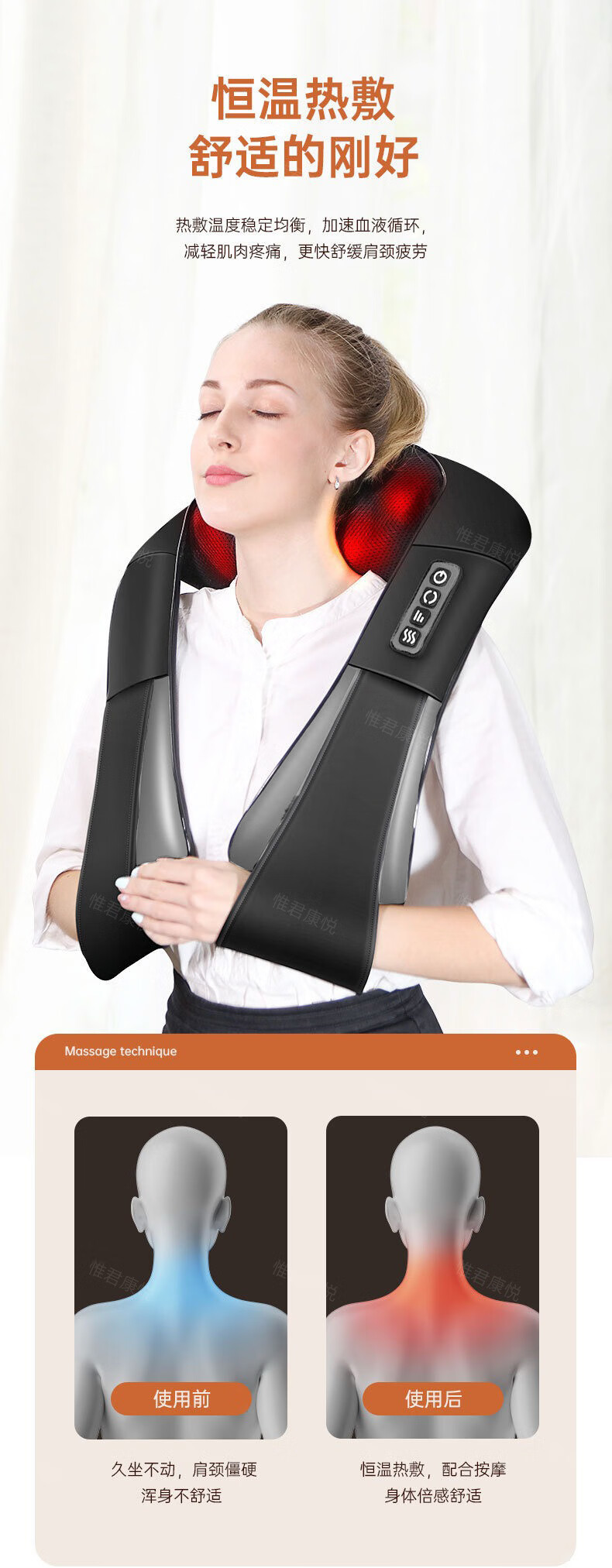 惟君康悦颈椎按摩仪腰部一体家用按摩机器披肩舒缓颈部疼痛肩颈按摩热敷缓解疲劳 黑色插电款