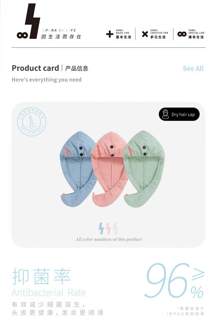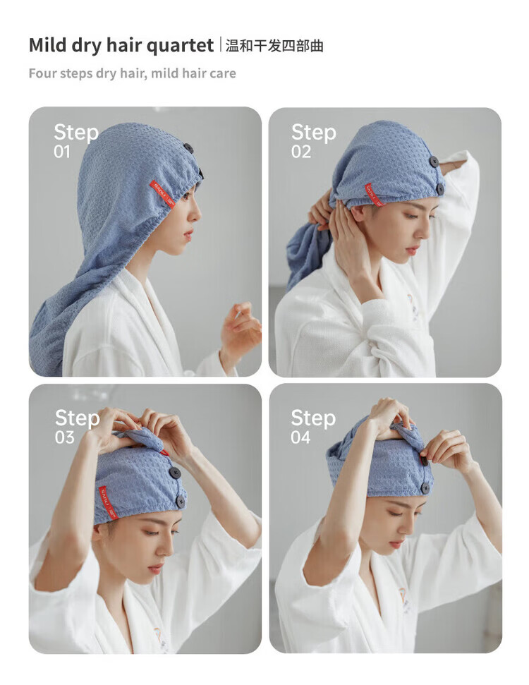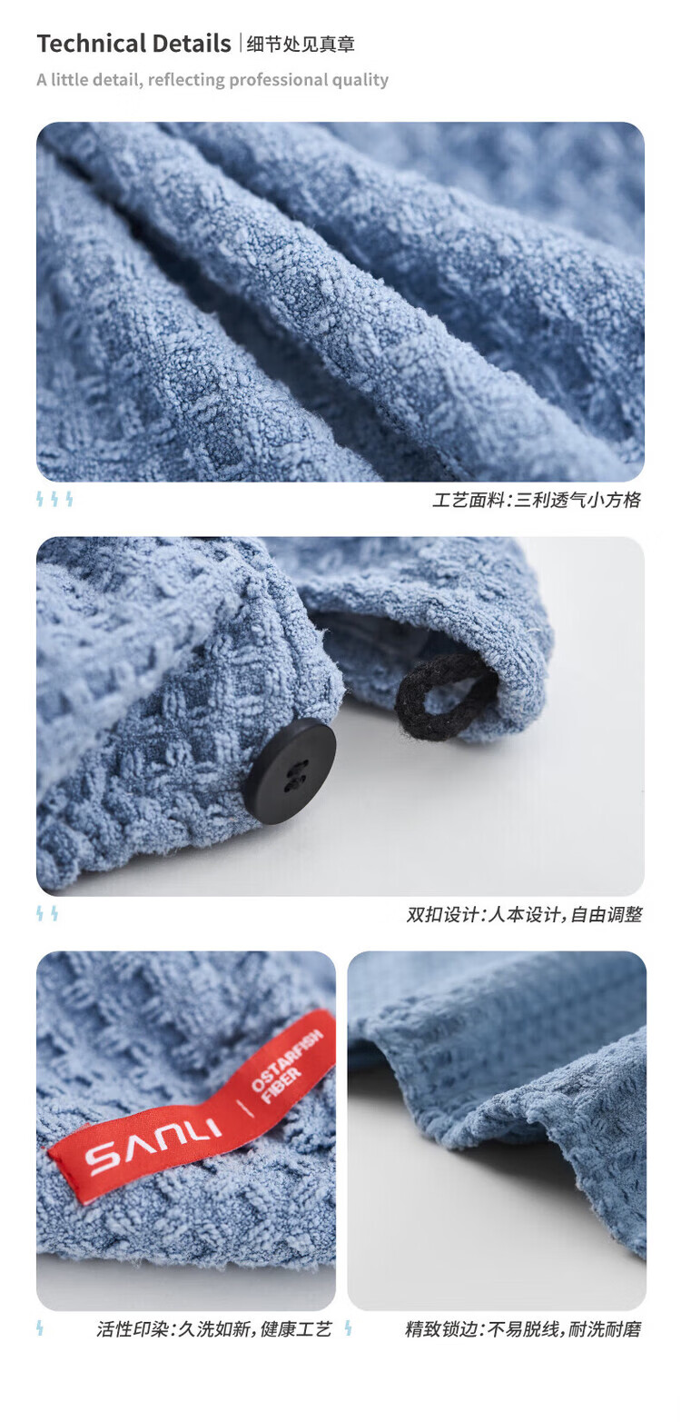三利干发帽女吸水速干加大加厚浴帽干发巾擦头发毛巾家用 若竹绿mimi