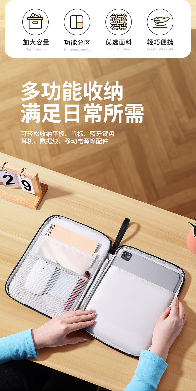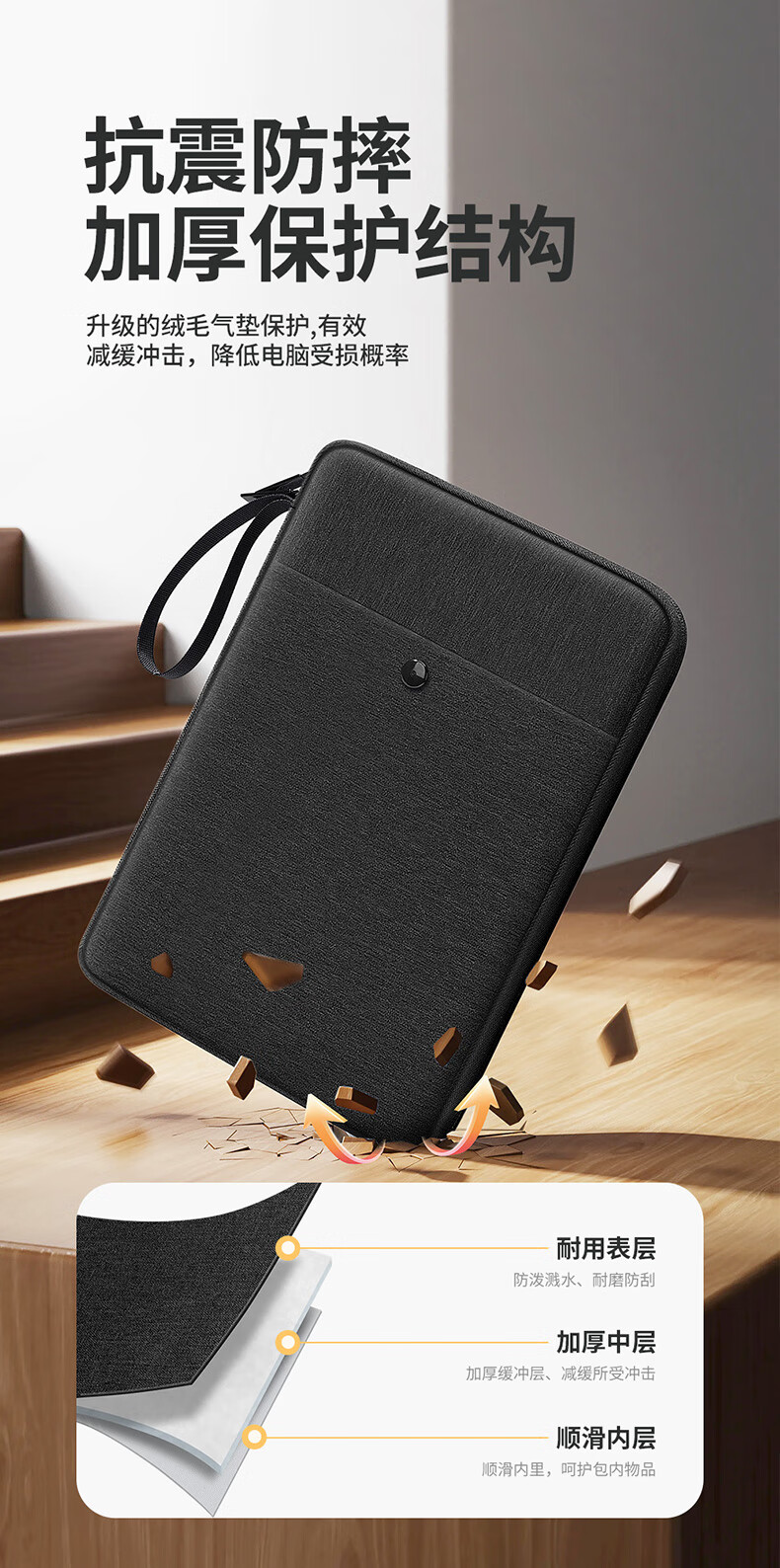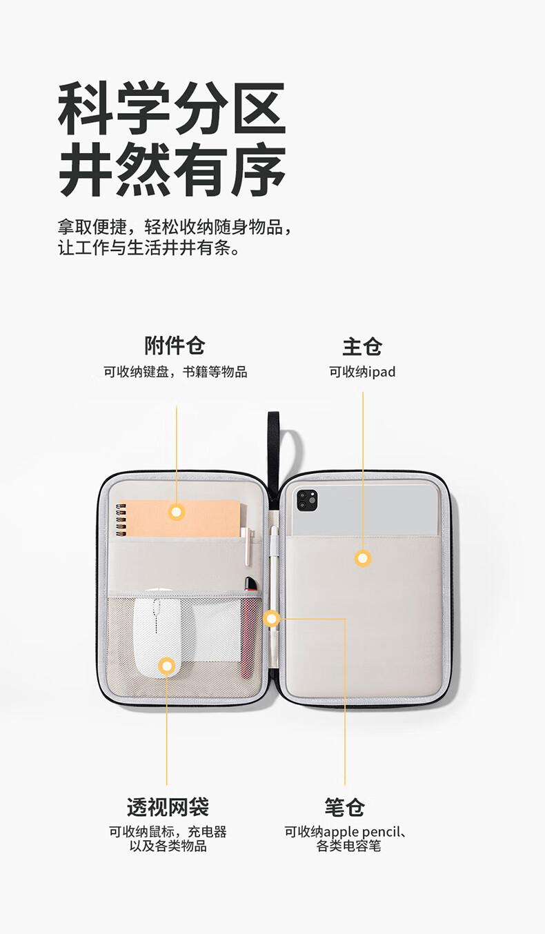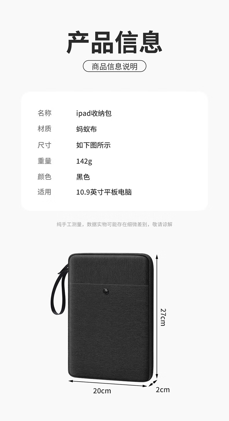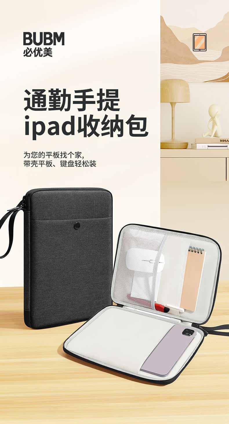必优美 iPad收纳包平板Pro内胆包Air5包11英寸手提电脑包 黑色 13英寸
