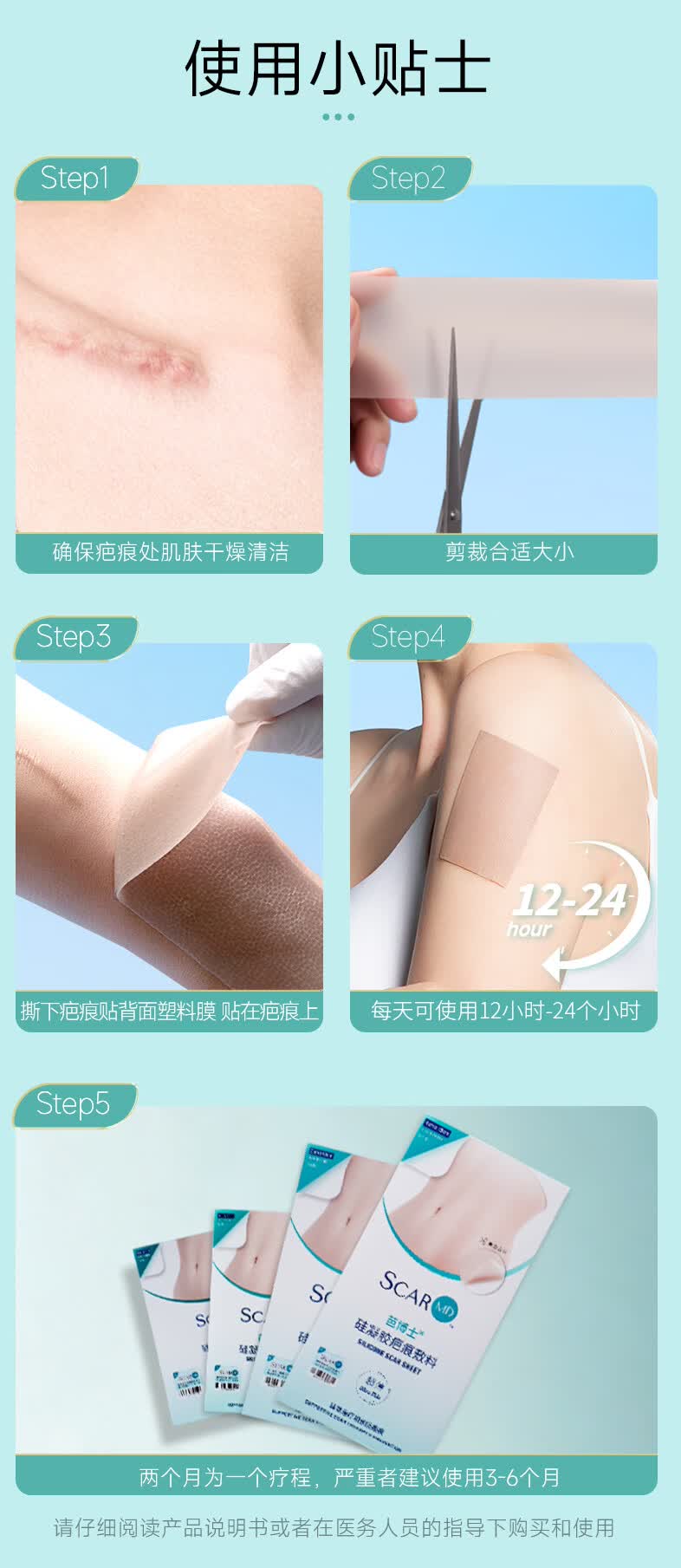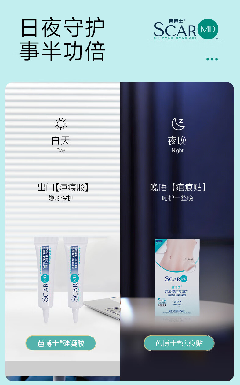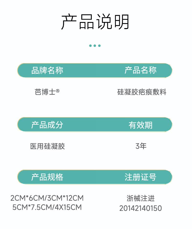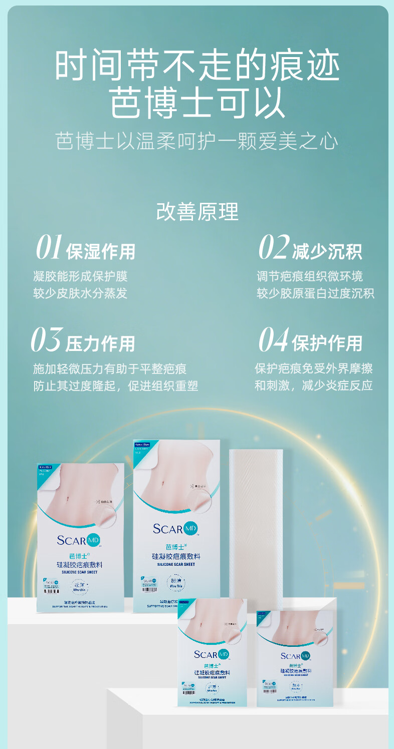 芭博士剖腹产疤痕贴硅凝胶疤痕敷料辅助祛疤贴治疗改善修复疤痕淡化护理 3X12cm硅凝胶疤痕贴