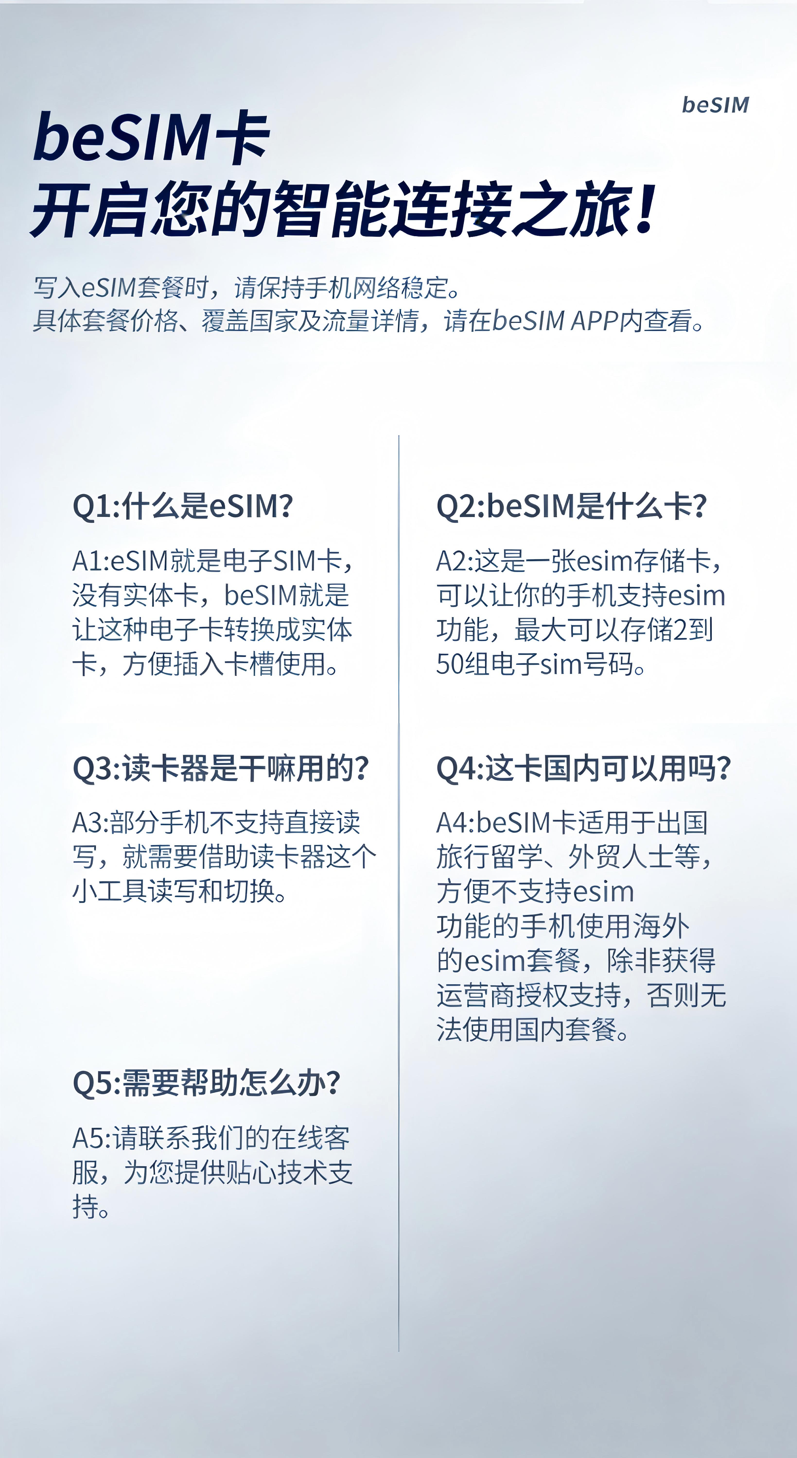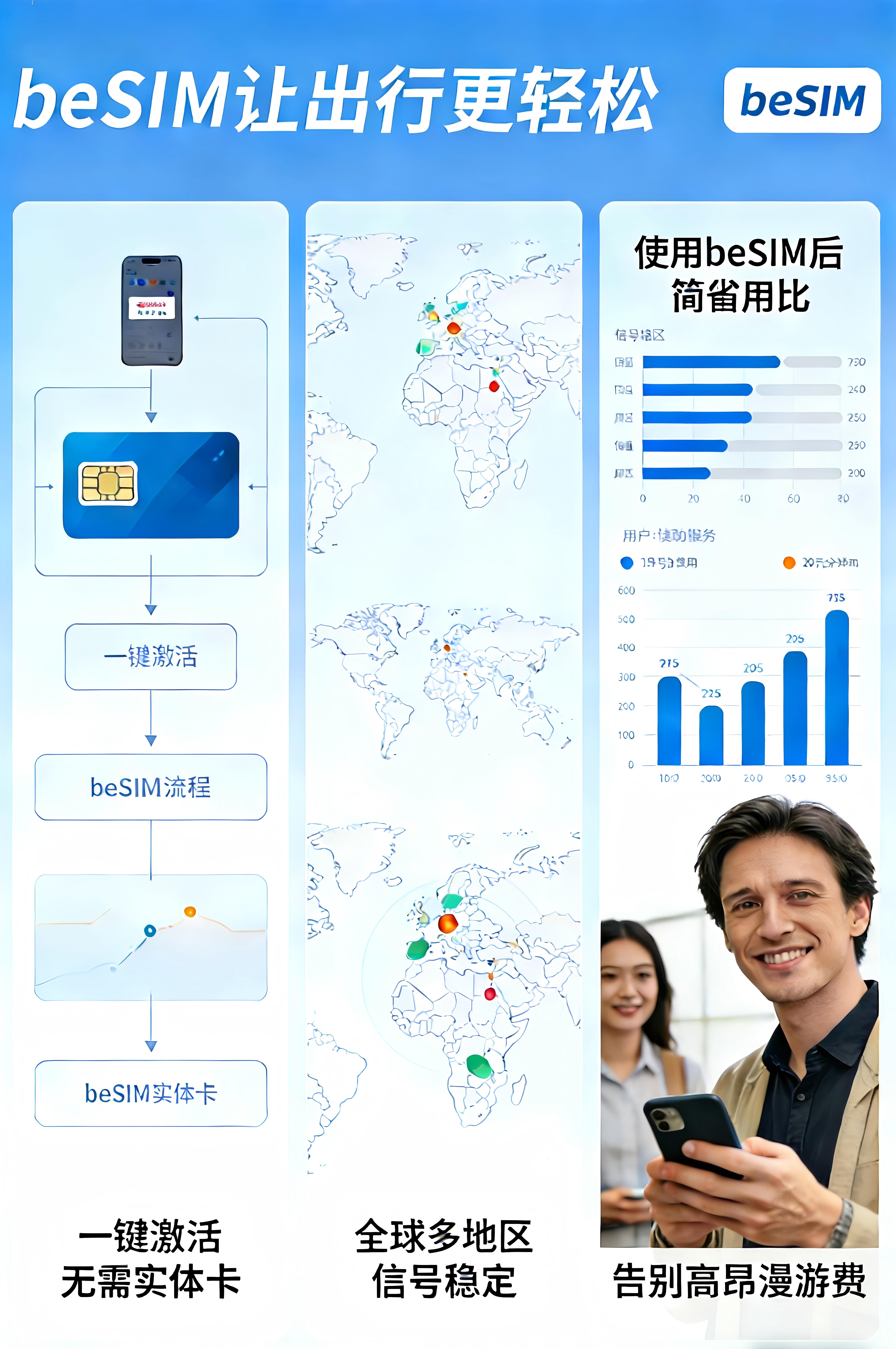 beSIM出行通信//iOS/Android双平台/eSIM/蓝牙连接方便快捷/高颜值eSIM卡 宝蓝色eSIM卡450k