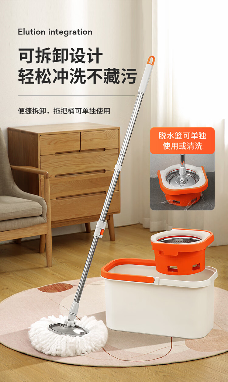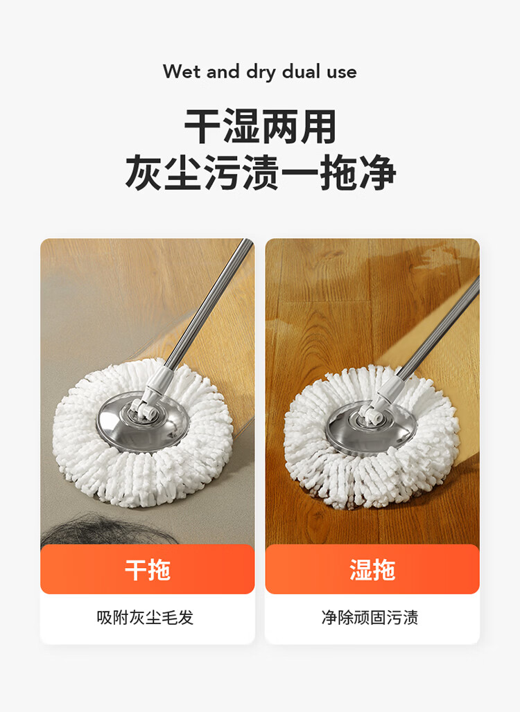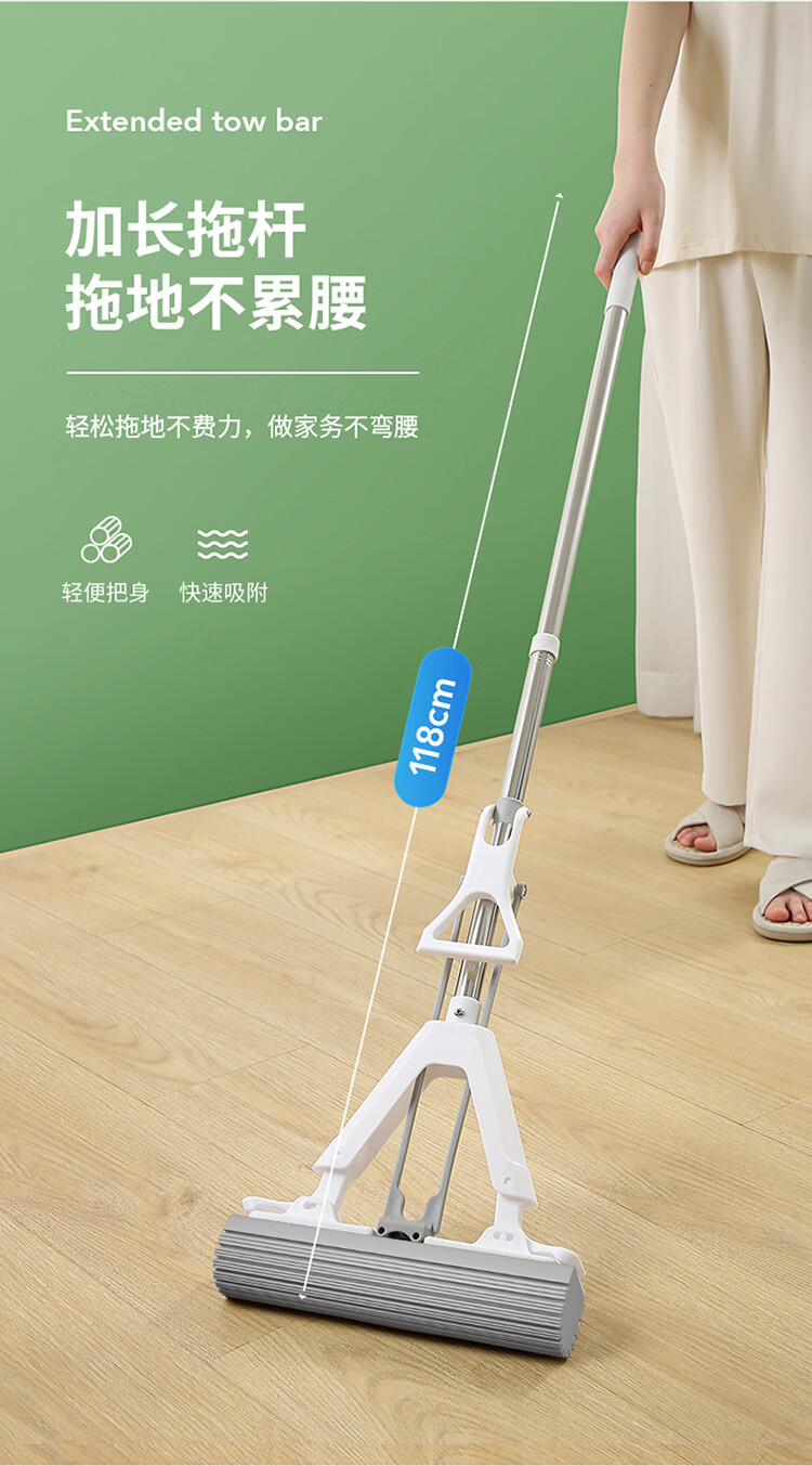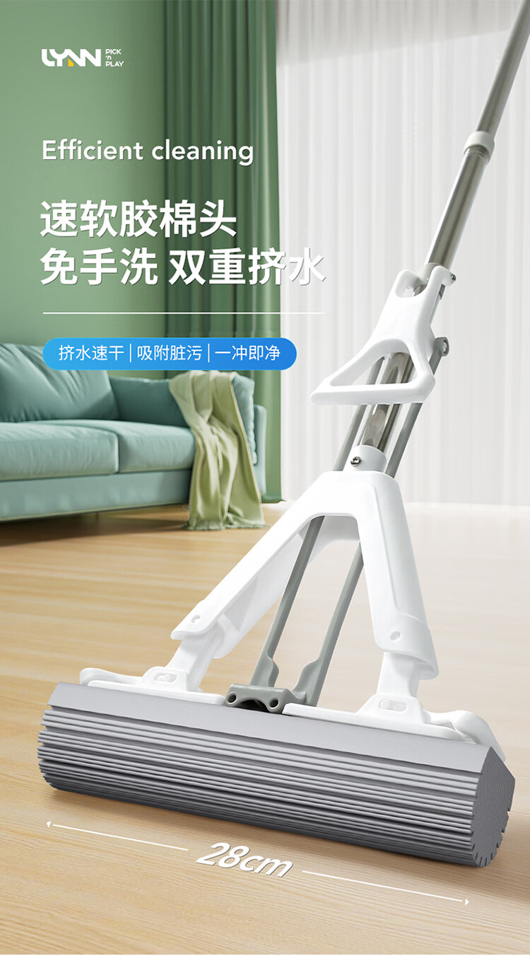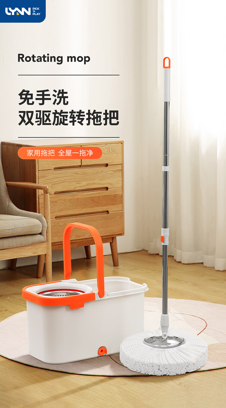 LYNN海绵拖把家用免手洗一拖净干湿两用懒人拖地拖布墩布强力吸水胶棉 【新升级】双驱动旋转拖把套装