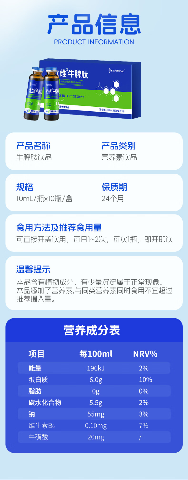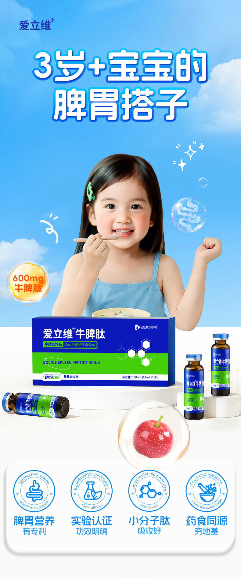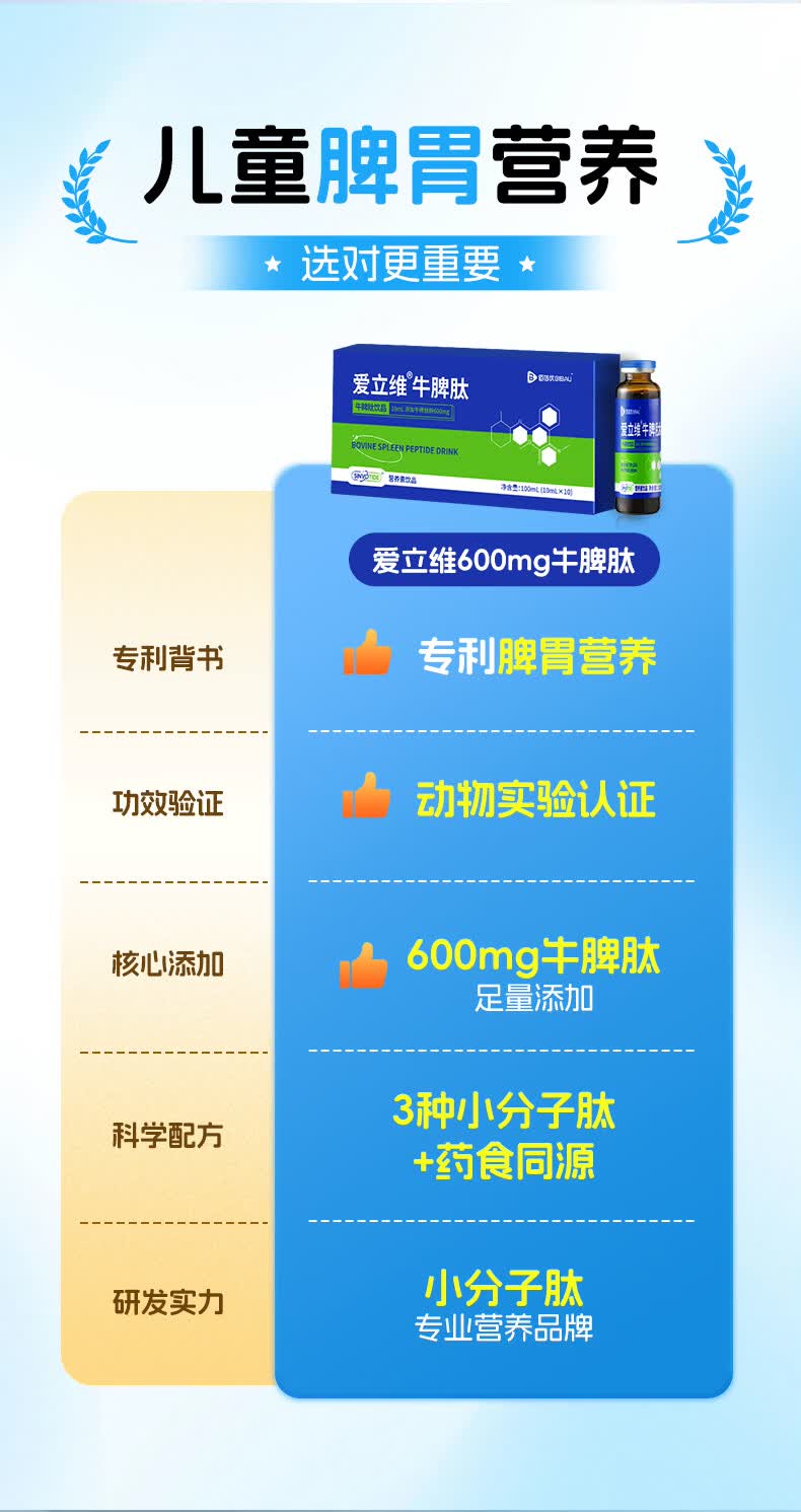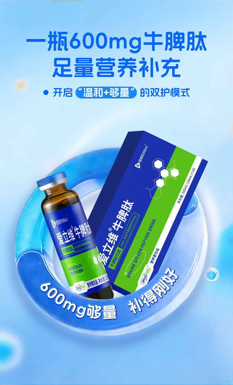 爱立维儿童成人牛脾氨肽肽鸡内金口服液小分子牛脾肽脾胃营养品礼品盒 【600mg】牛脾肽 10支*3盒 周期装
