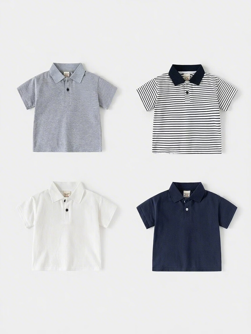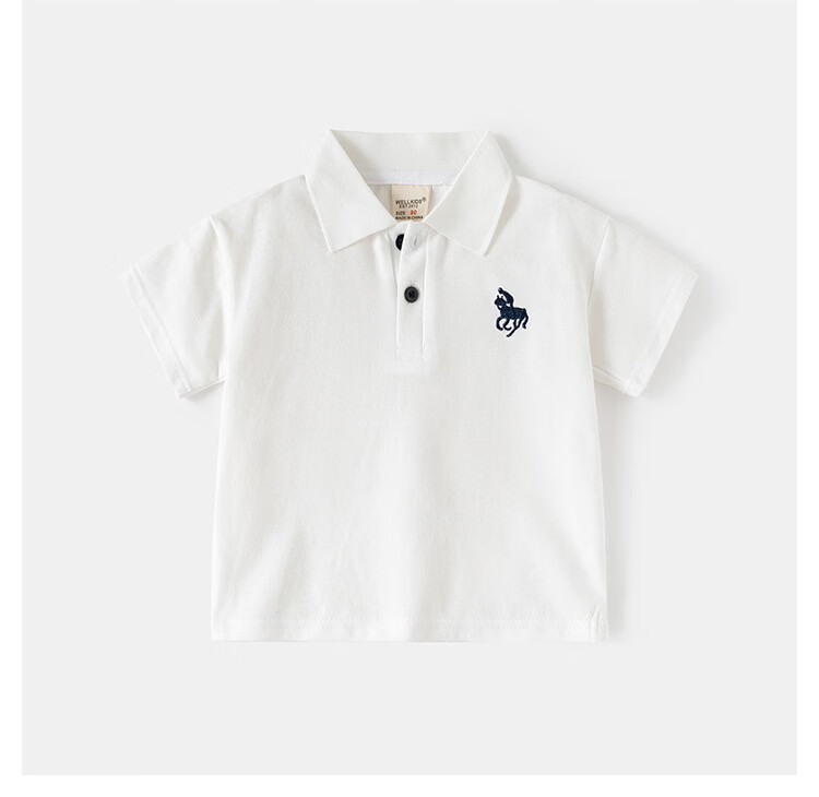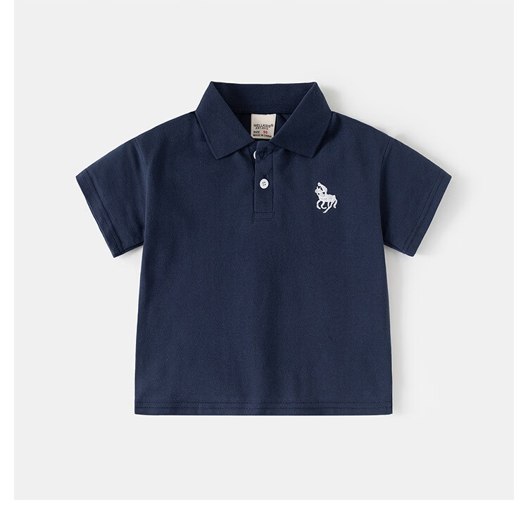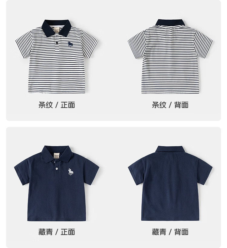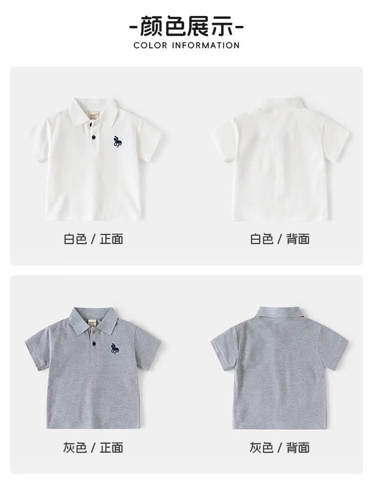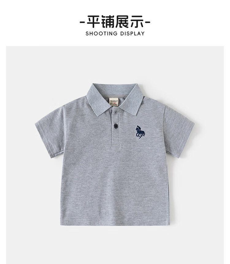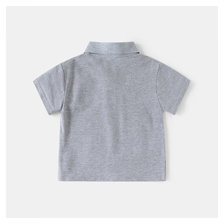 韩版童装2026夏装男童POLO衫儿童短袖T恤时尚纯色袖标 灰色 90