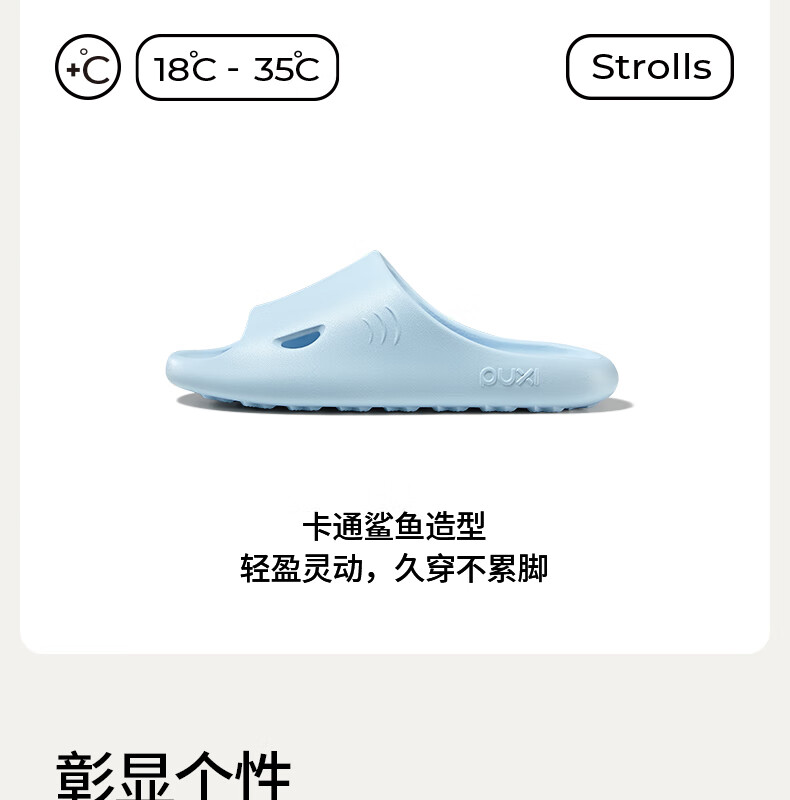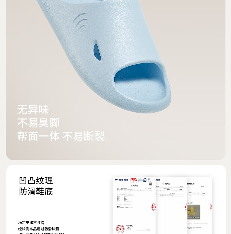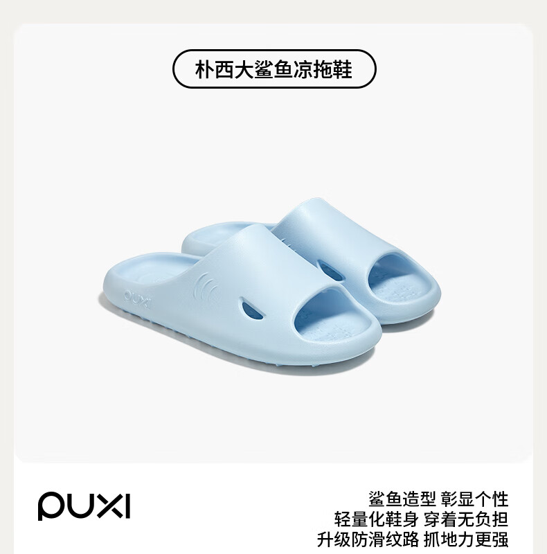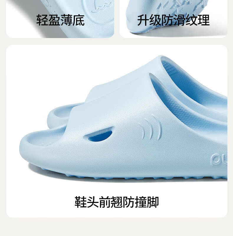 朴西大鲨鱼拖鞋女夏季薄底家居室内家用洗澡防滑防臭eva凉拖鞋男 云朵白 37-38