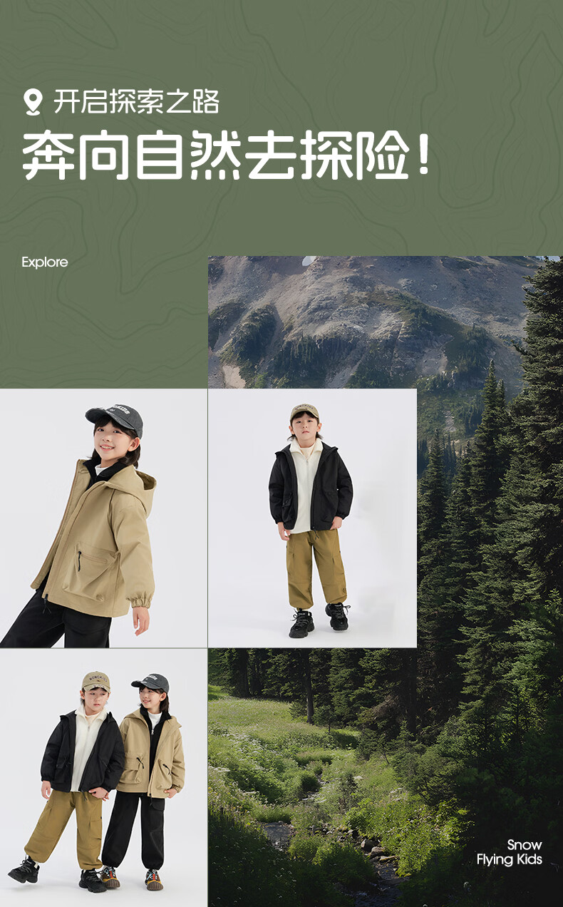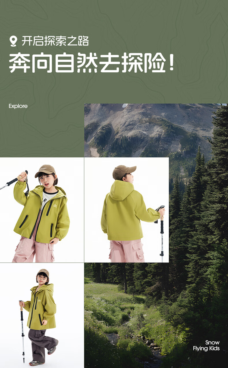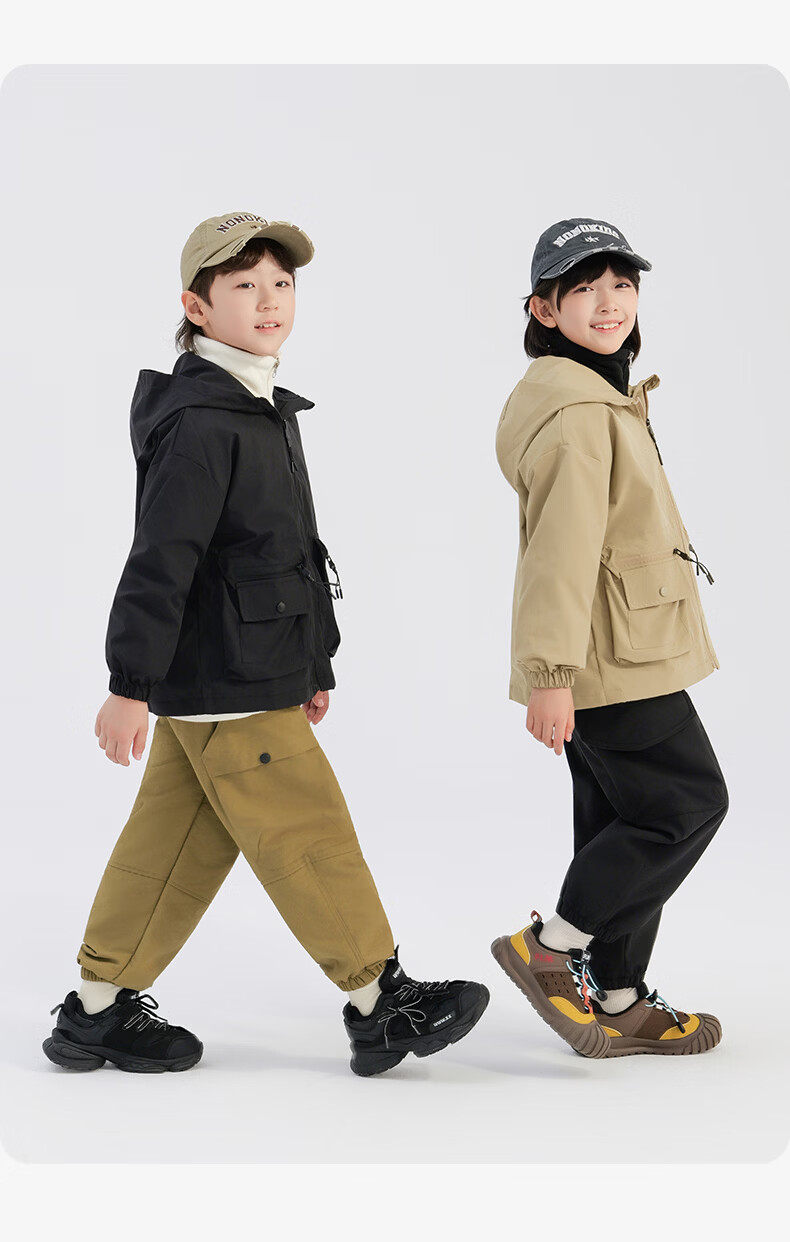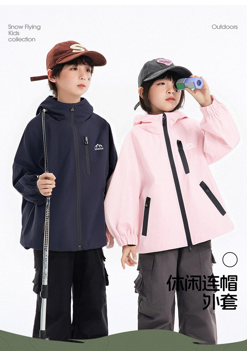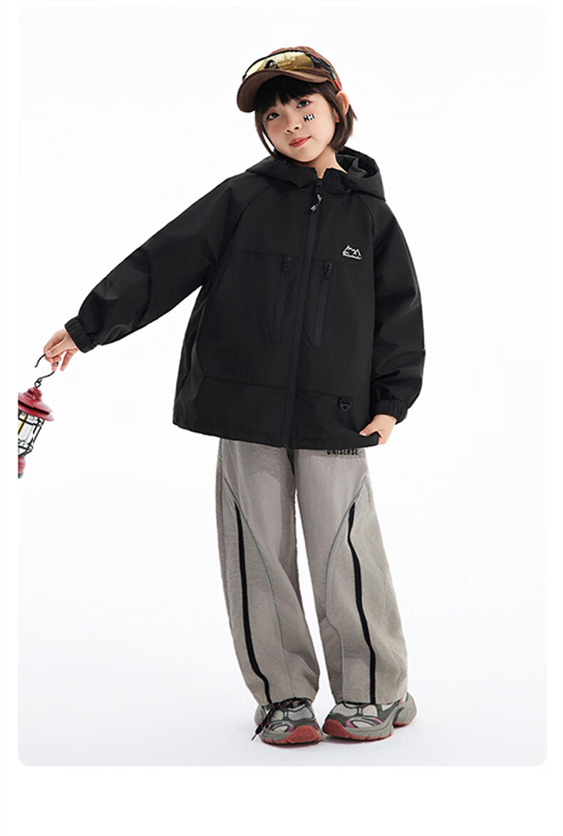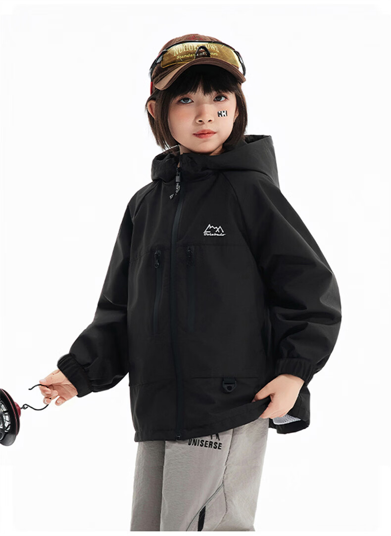 雪中飞儿童外套户外男童春新款女孩连帽时尚拼色户外防风上衣 黑色 120