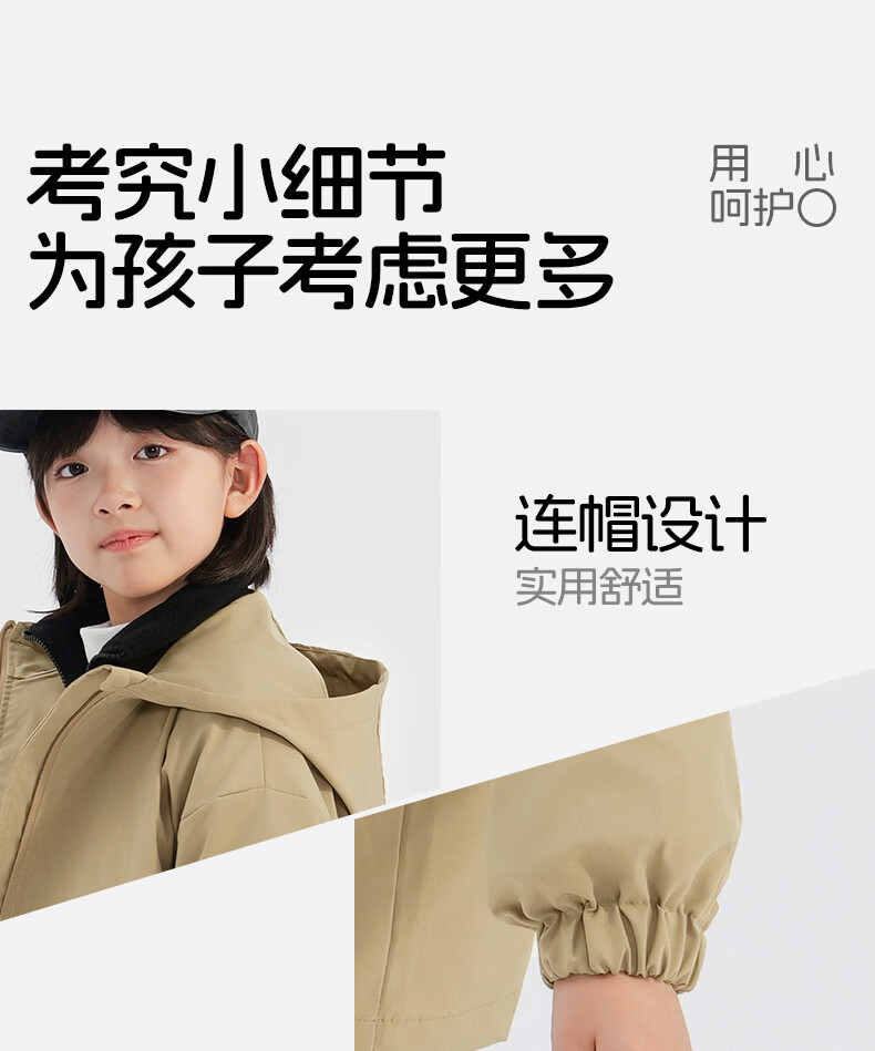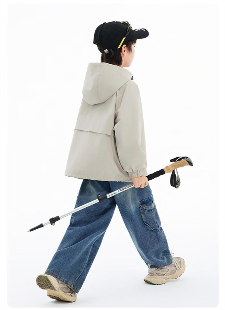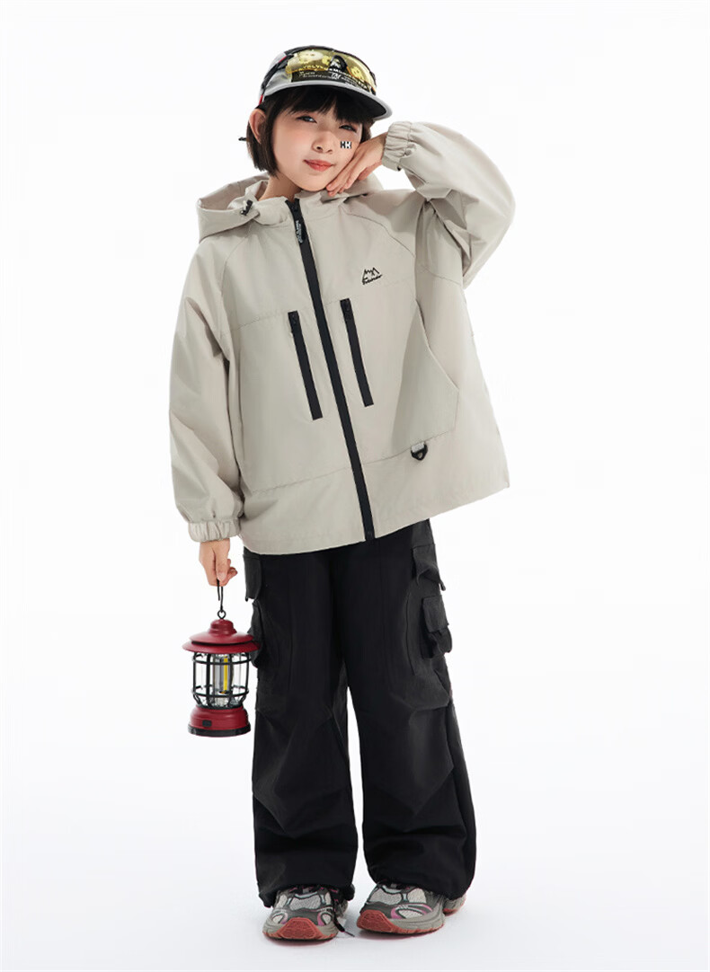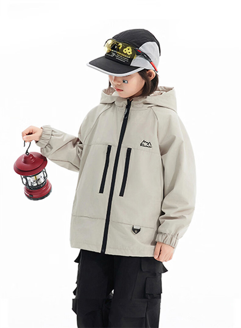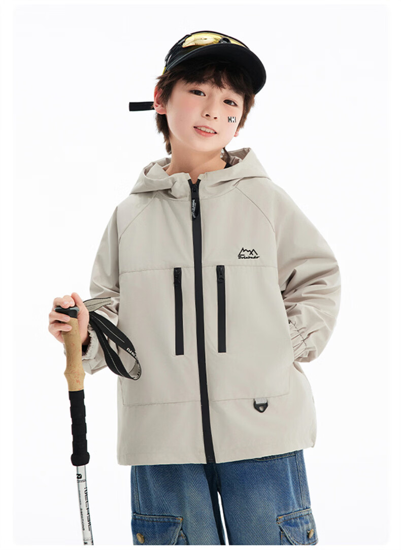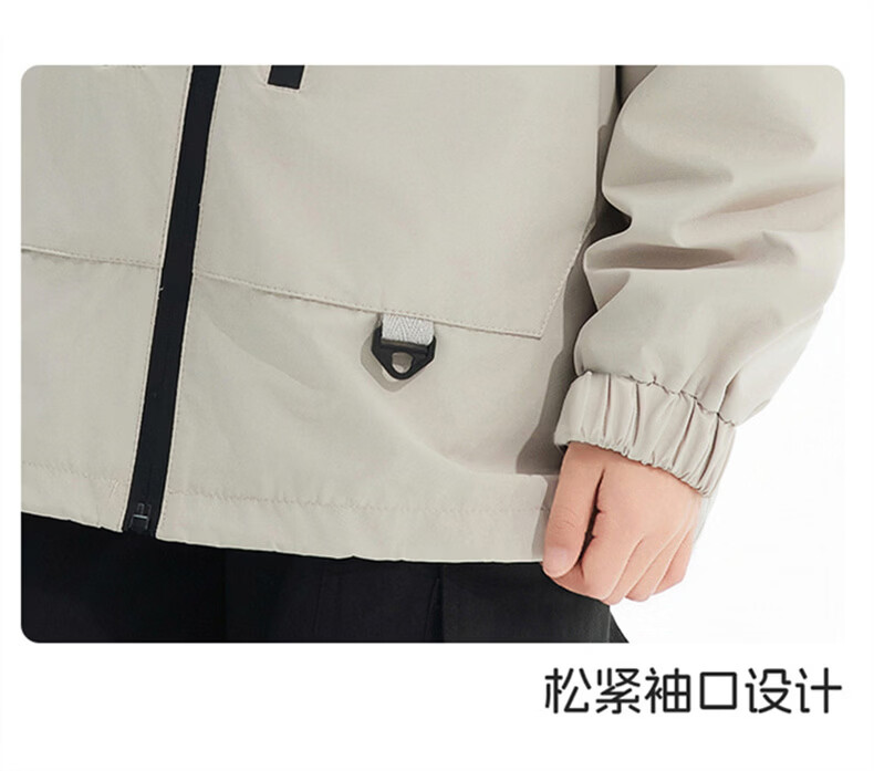 班尼路(Baleno)童装儿童外套春秋款2026新款男童三防冲锋夹克春季女童上衣中大童 米白 【冲锋衣外套】 110