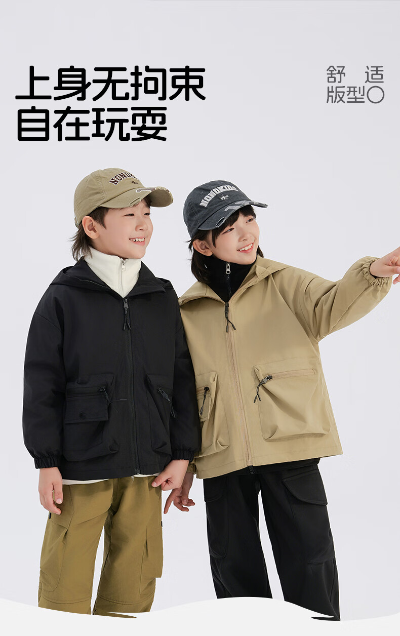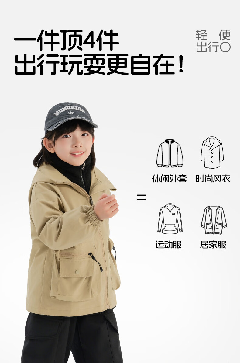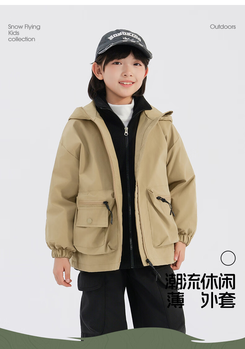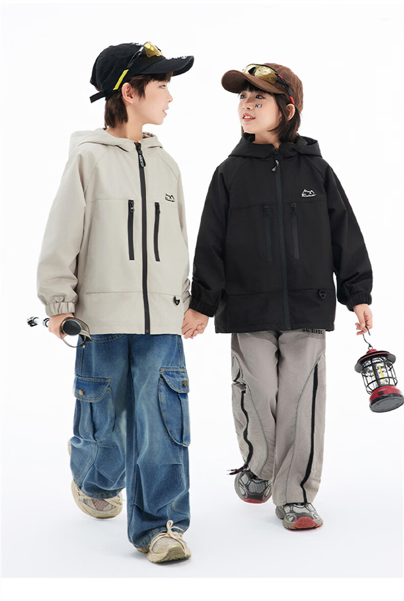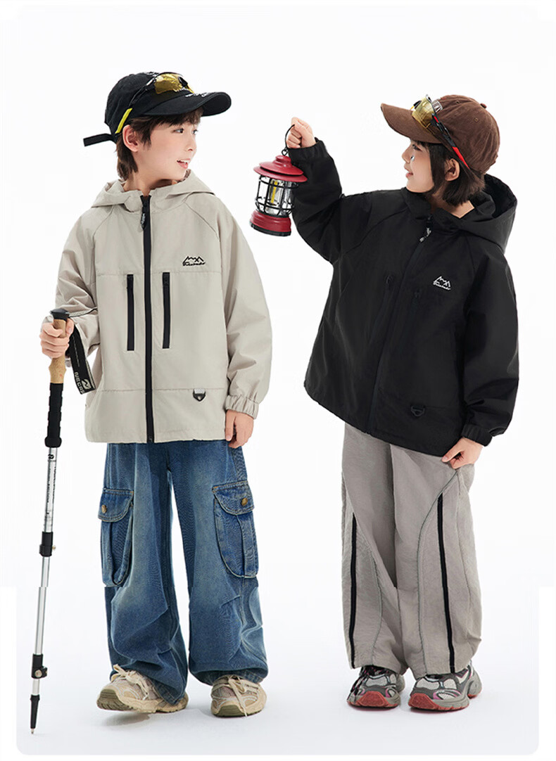 班尼路(Baleno)童装儿童外套春秋款2026新款男童三防冲锋夹克春季女童上衣中大童 米白 【冲锋衣外套】 110