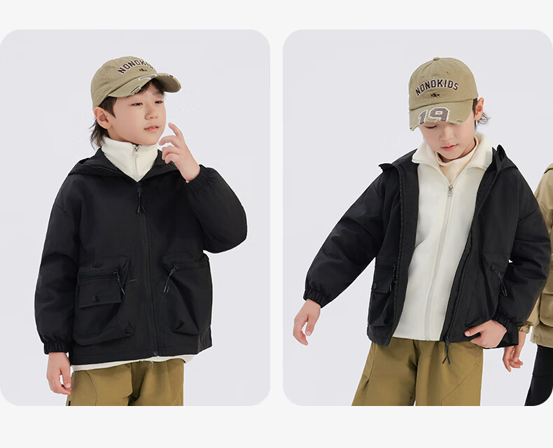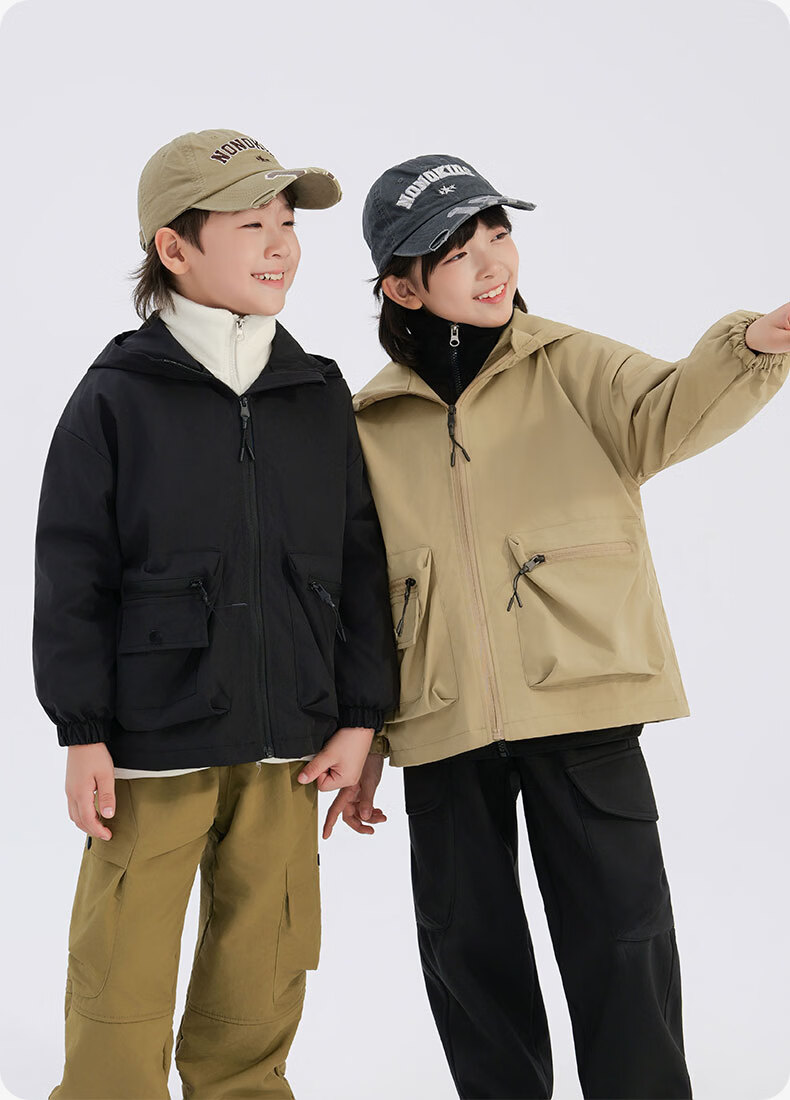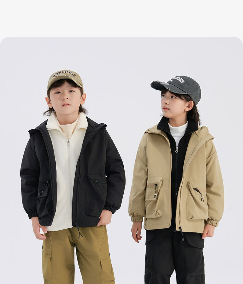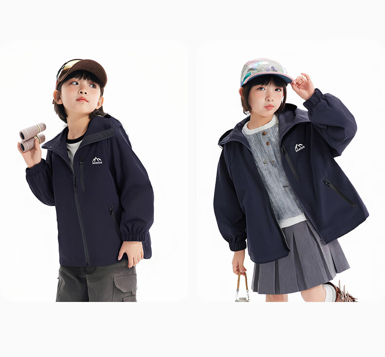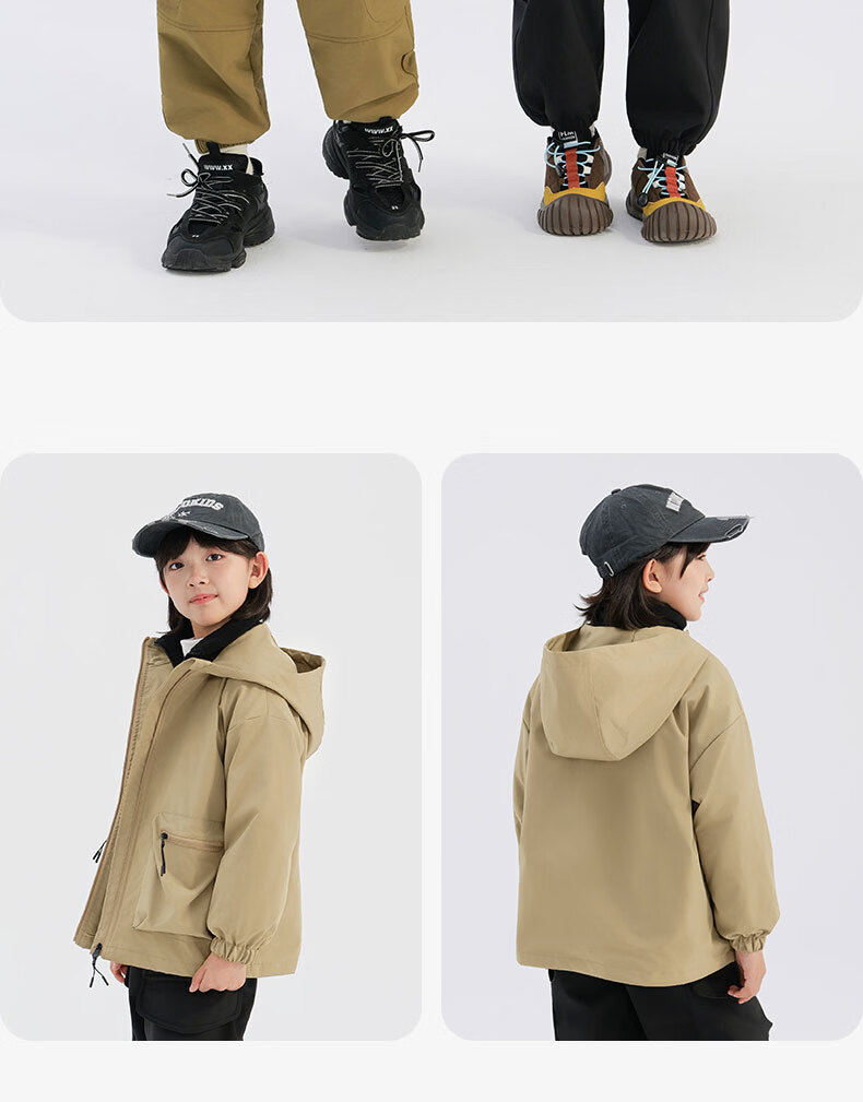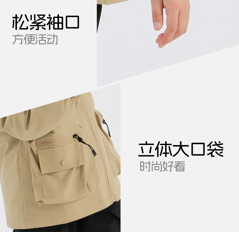 班尼路(Baleno)童装儿童外套春秋款2026新款男童三防冲锋夹克春季女童上衣中大童 米白 【冲锋衣外套】 110