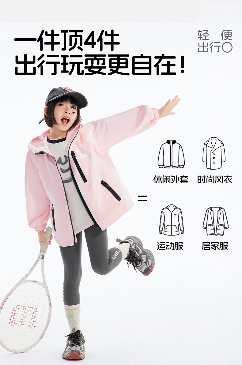 小猪班纳童装26夏装新款儿童带帽外套中大童女童拉链衫女孩凉感防晒衣 鸽羽灰 130