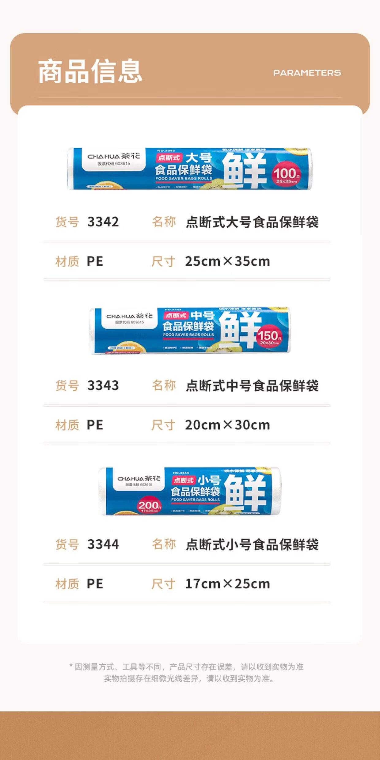 茶花(CHAHUA)保鲜袋加厚点断式密封袋食品袋手撕袋一次性保鲜 小号 400只