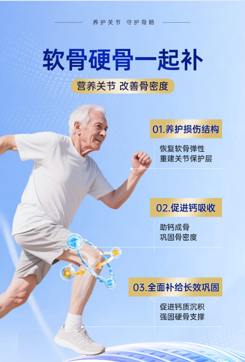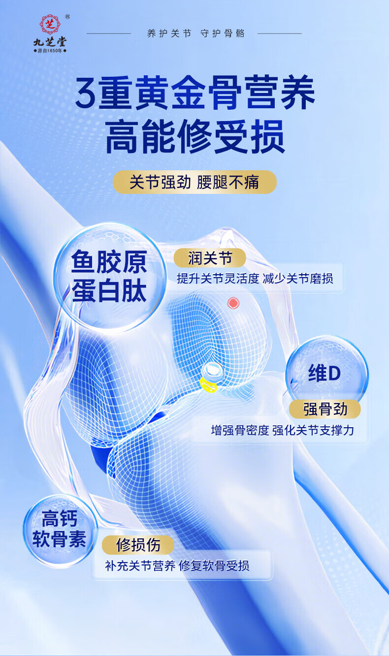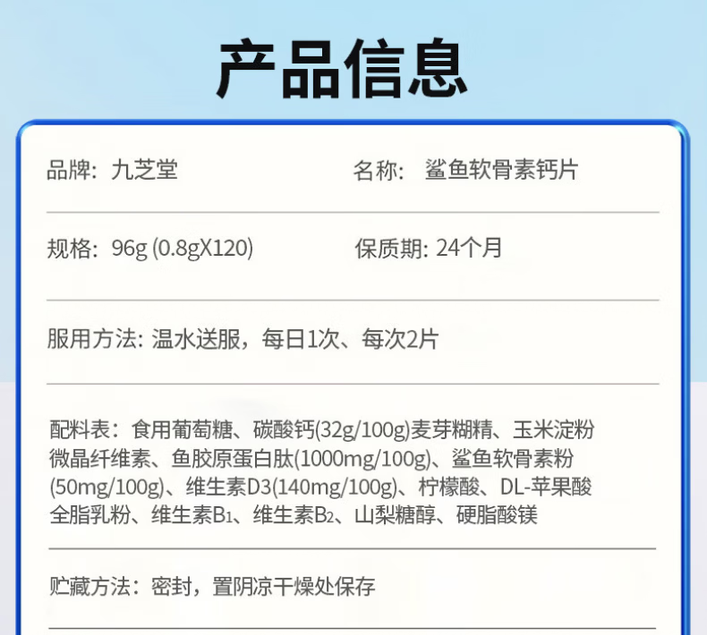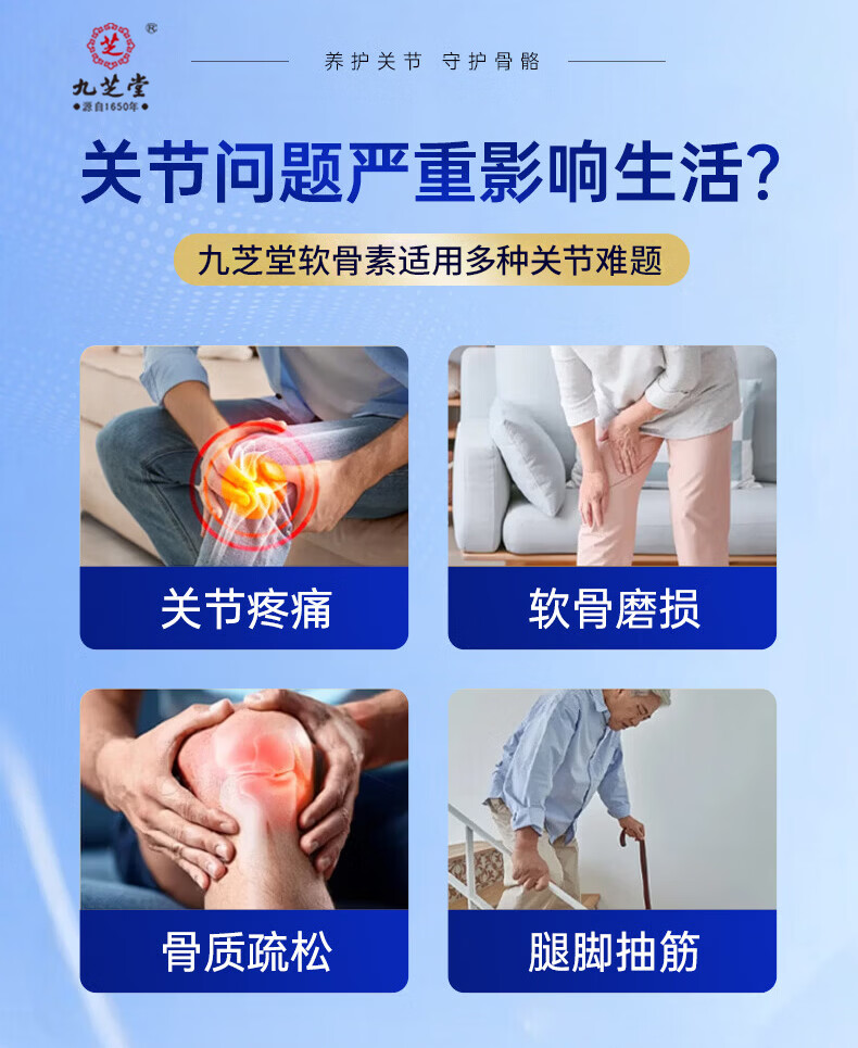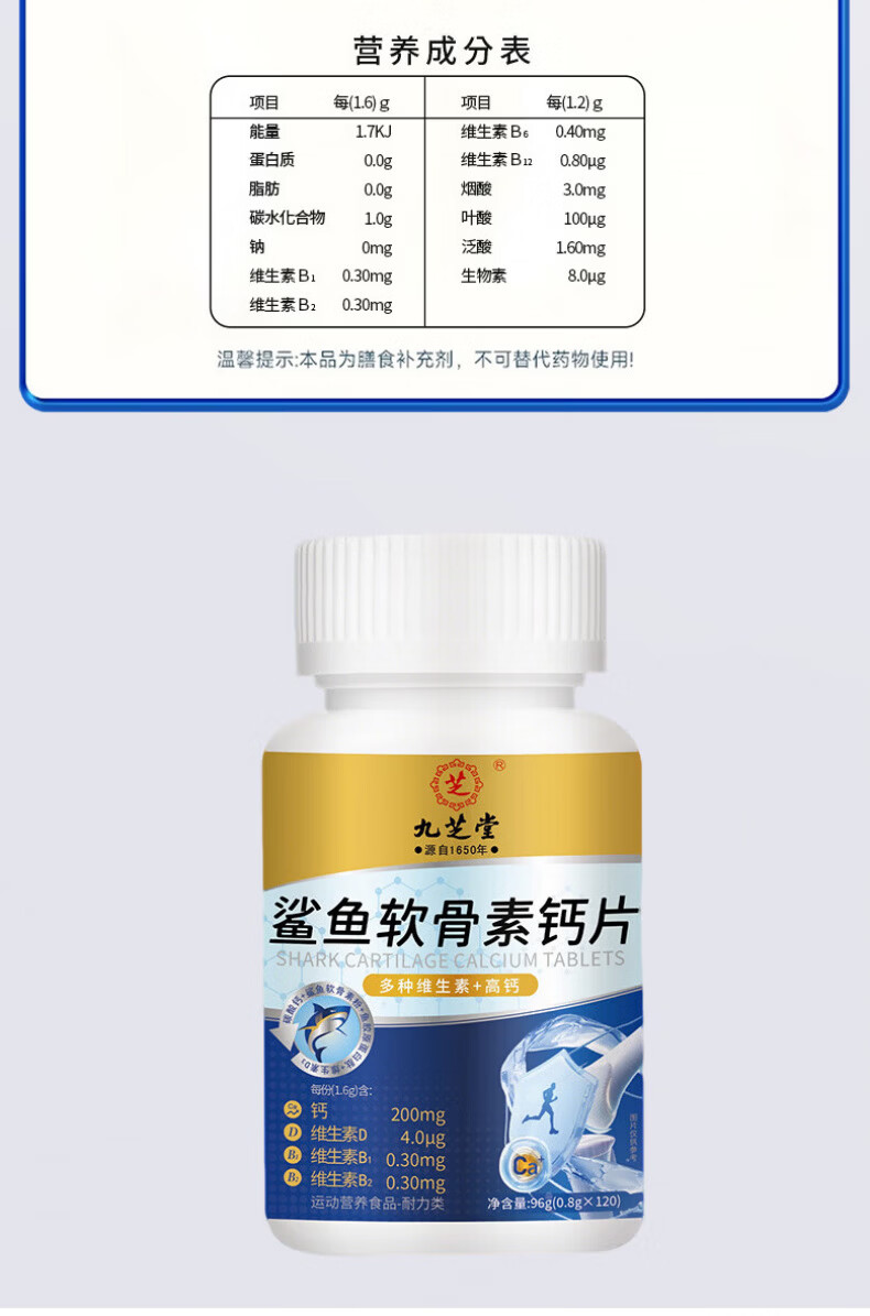 九芝堂鲨鱼软骨素钙片中老年人补钙钙片中老年人腿抽筋腰腿疼骨质疏松 1瓶【关节养护】 120片*1瓶