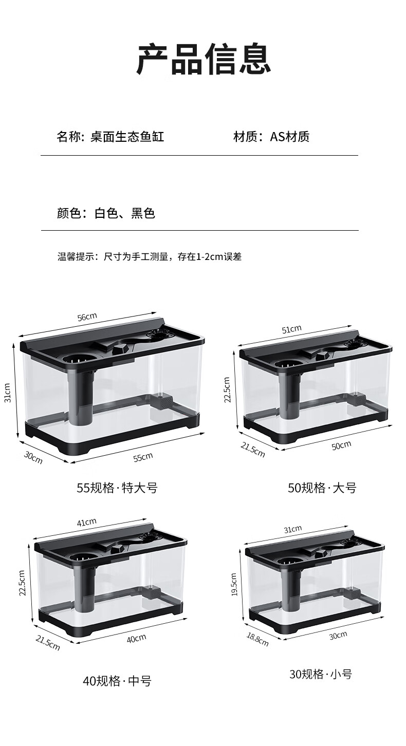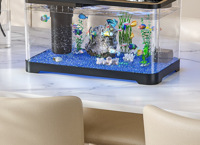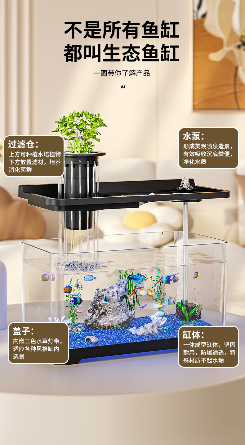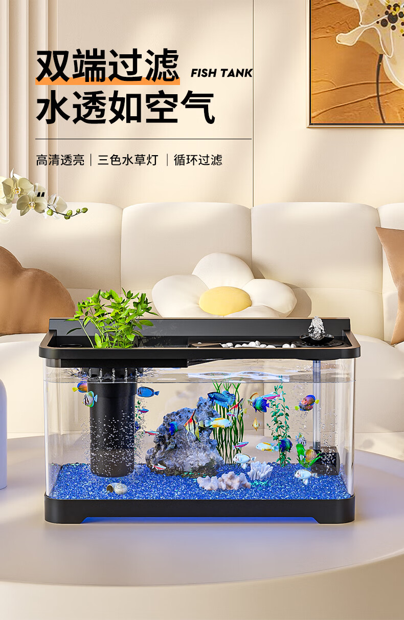 宠小岛鱼缸双端过滤制氧一体缸自循环小型客厅新款生态造景热带鱼饲养 大号黑色【升级款】+75W加热棒