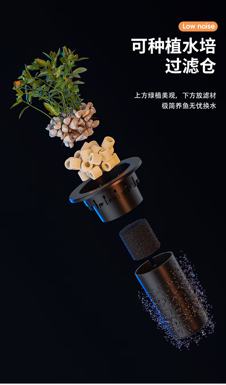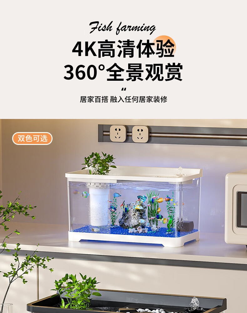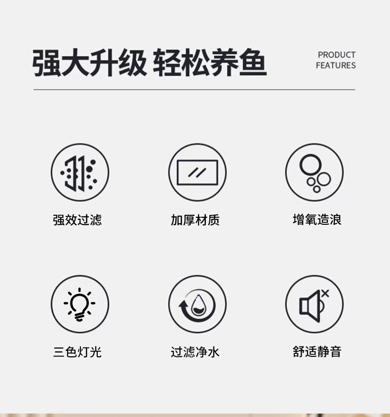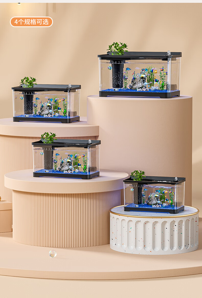 宠小岛鱼缸双端过滤制氧一体缸自循环小型客厅新款生态造景热带鱼饲养 大号黑色【升级款】+75W加热棒