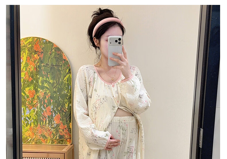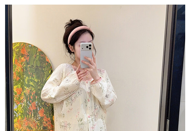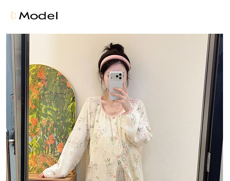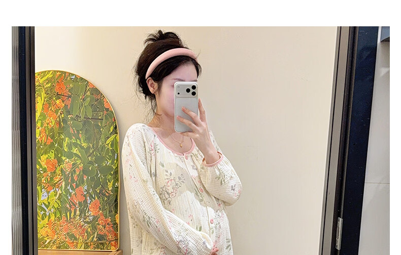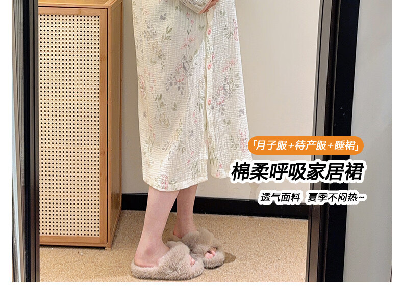 ARTFULMOM英国哺乳睡裙医院待产裙孕妇生产服进产房纯棉纱布长款月子服套装 粉色【单裙】 L【建议体重:90-120斤】