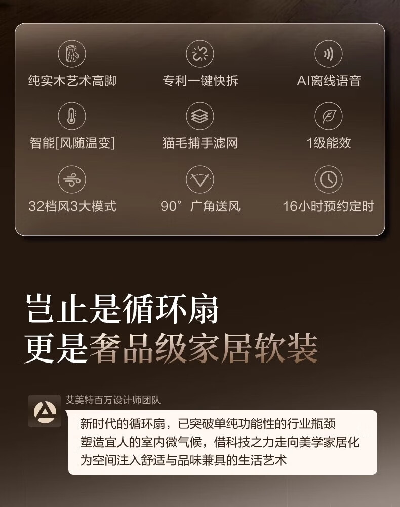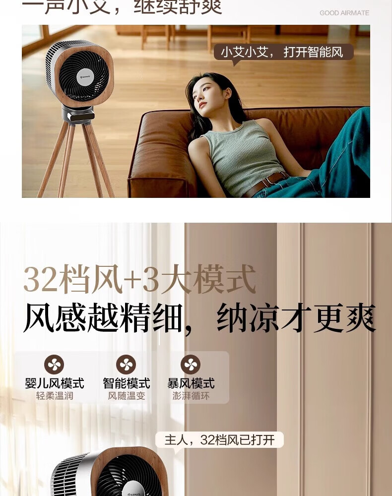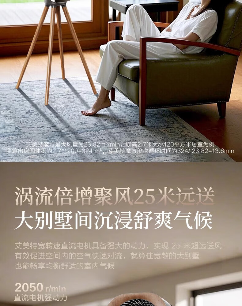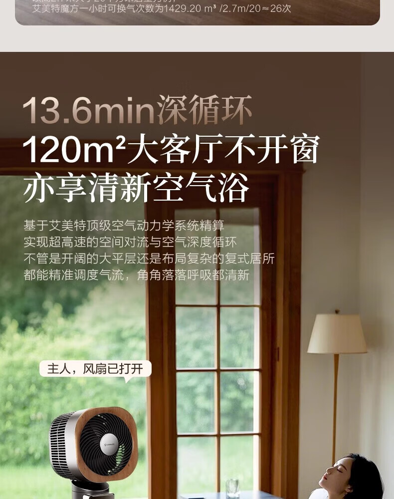 艾美特小静奢魔方电风扇 艺术风扇空气循环扇 大平层家用四方扇 Air1plus Air15 艺术空气循环扇AIR15