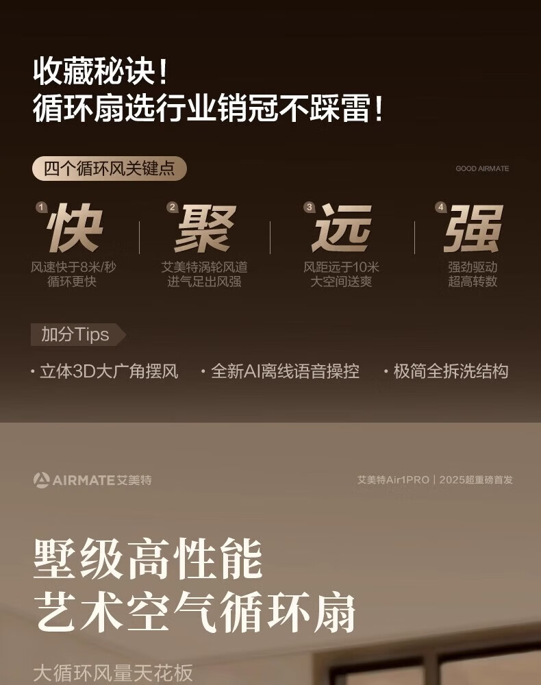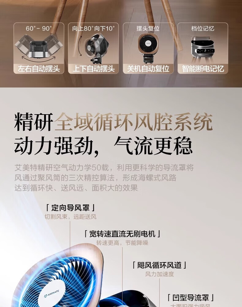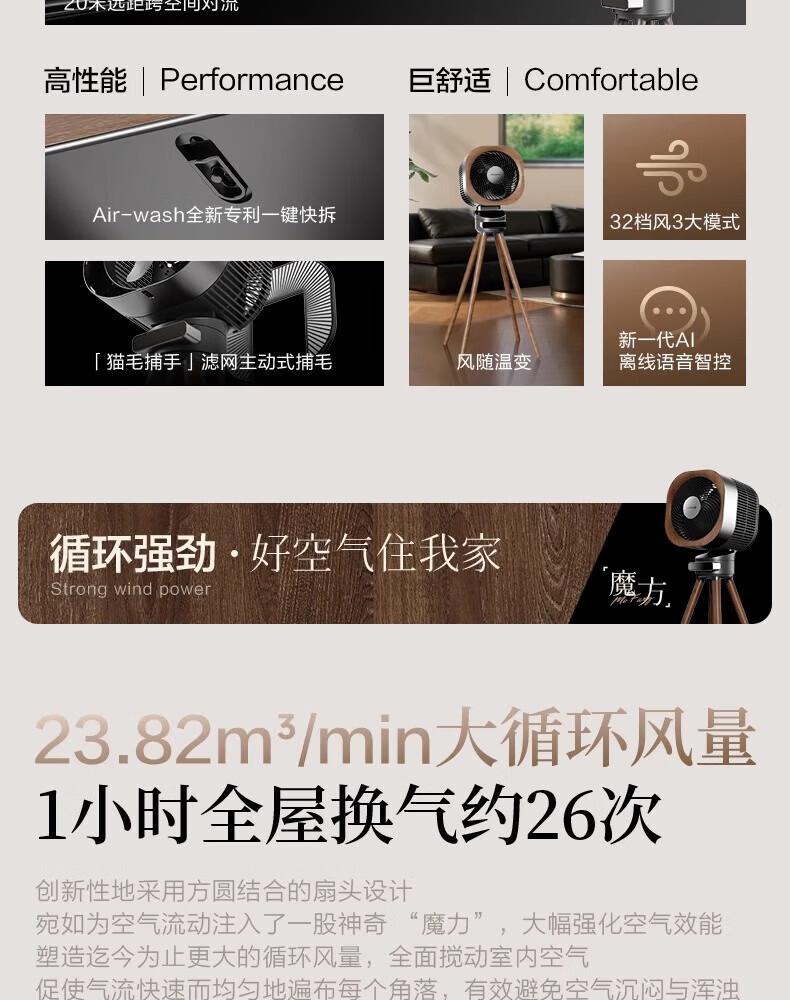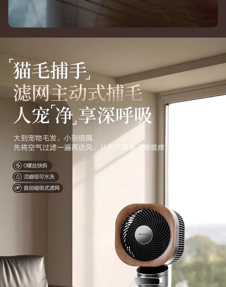 艾美特小静奢魔方电风扇 艺术风扇空气循环扇 大平层家用四方扇 Air1plus Air15 艺术空气循环扇AIR15