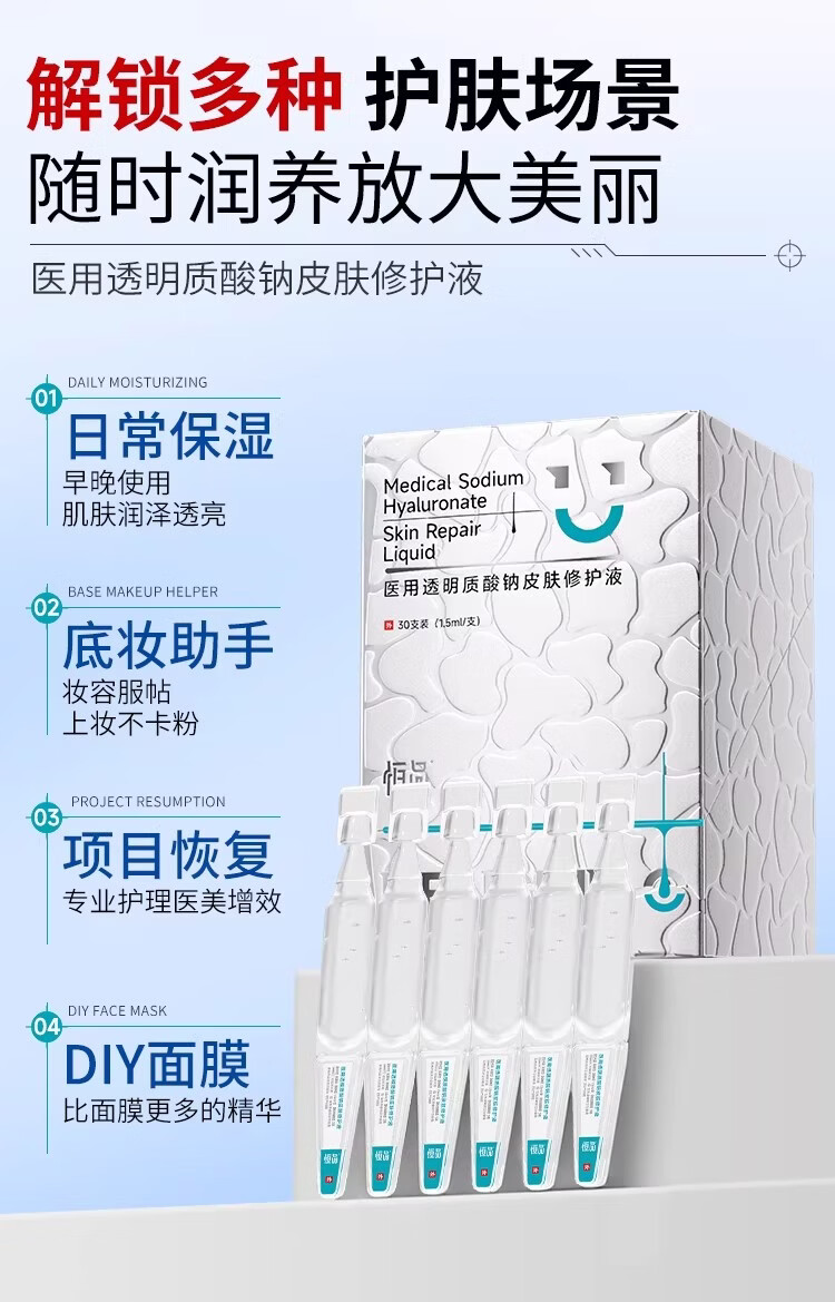 恒品医用透明质酸钠皮肤修护液无菌型次抛精华术后修复创面促愈 医用级次抛【1盒30支】一次一抛