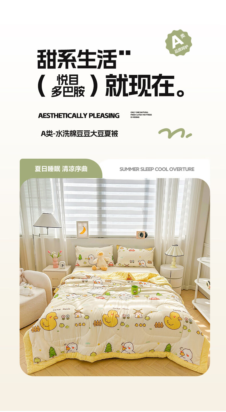 胖东来同款大豆豆豆被夏季冰凉豆豆夏凉被大豆纤维空调被夏天薄被 草莓狗 双人夏被-200X230/cm【A类豆豆被 软糯亲