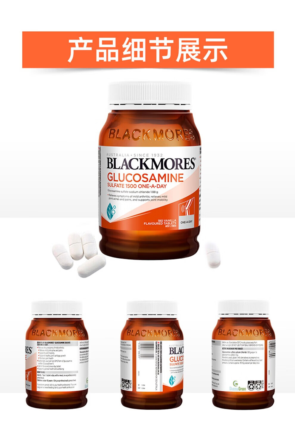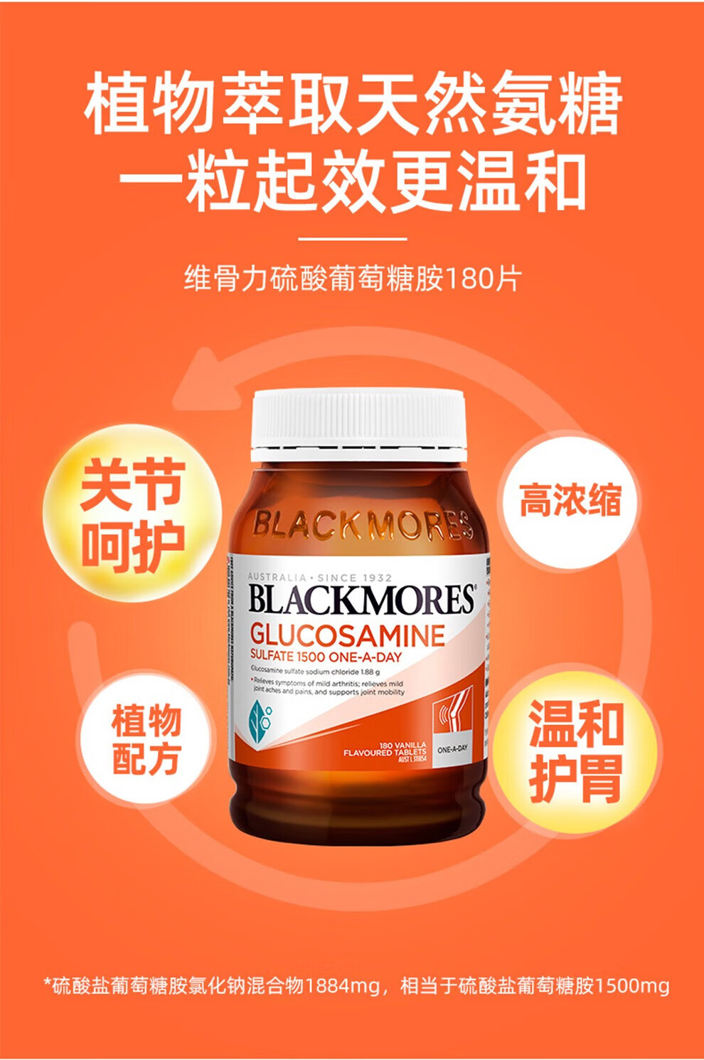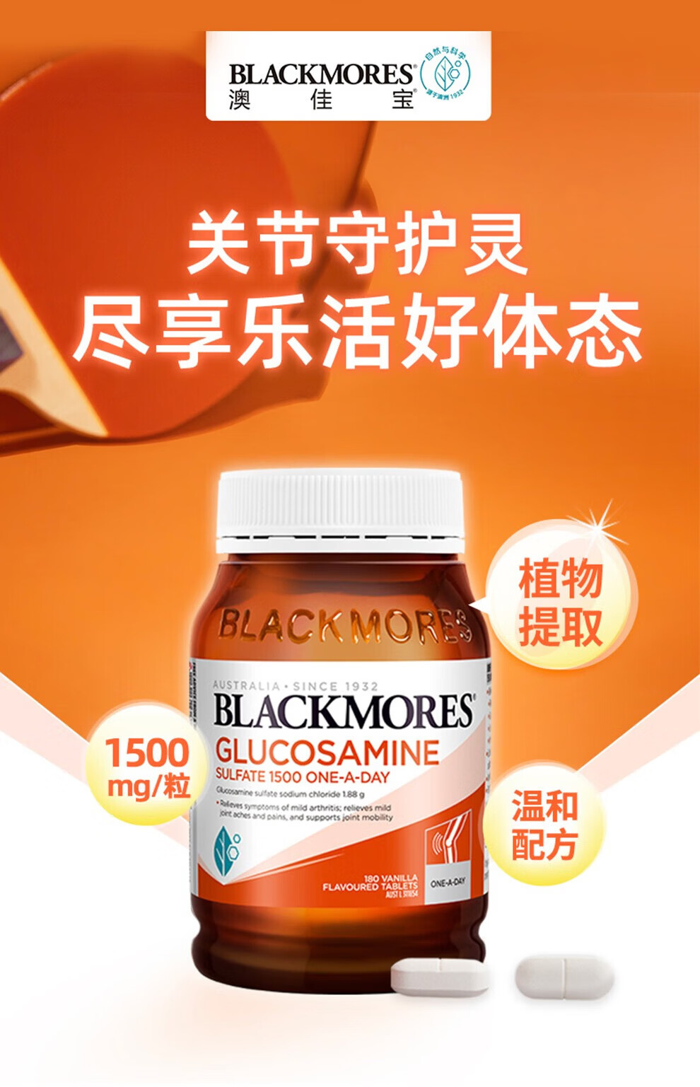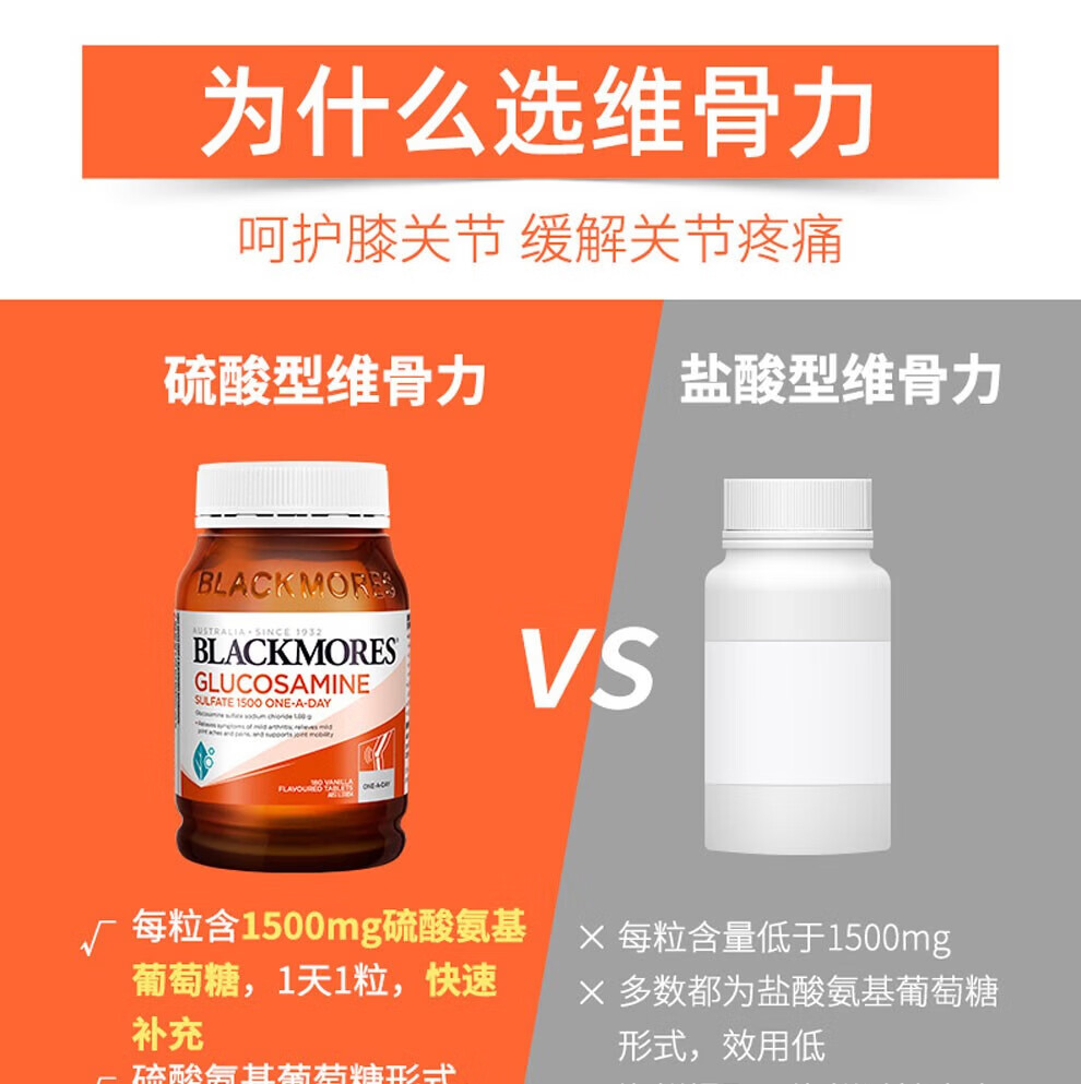 blackmores 氨糖维骨力 高浓度1500mg 180粒 成人中老年 年货送礼 【关节养护】维骨力 180粒*2瓶