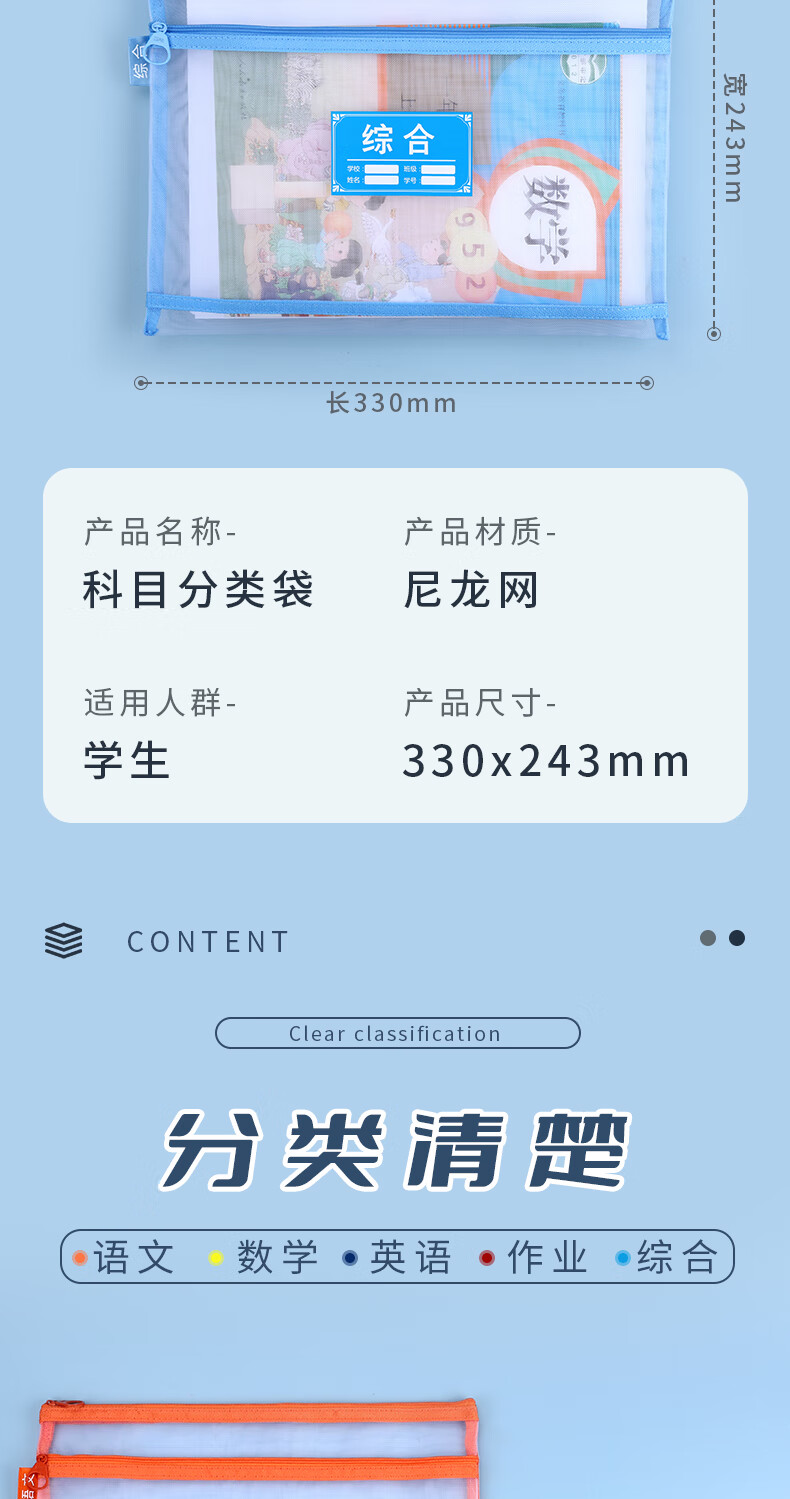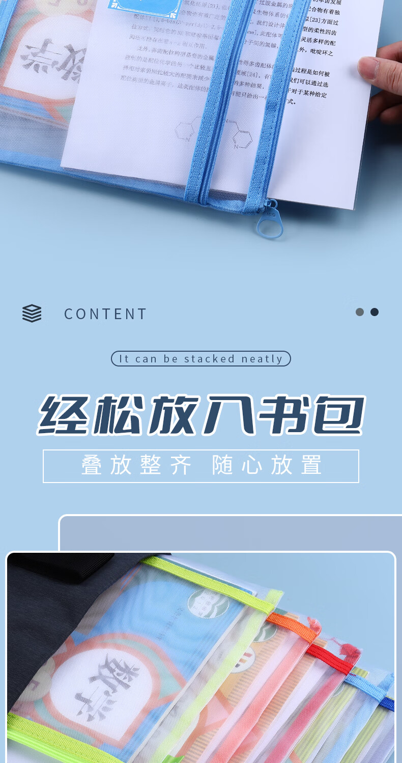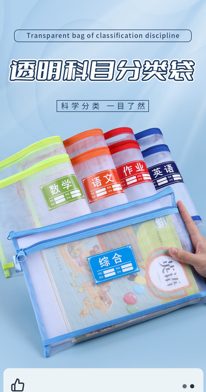 晨光(M&G)科目分类袋学科袋文件袋拉链式小学生用双层大容量便携科目袋资料袋试卷收纳袋子 【双层5个】语文+数学+英语+综合+作业