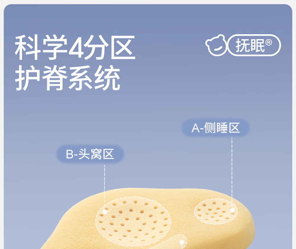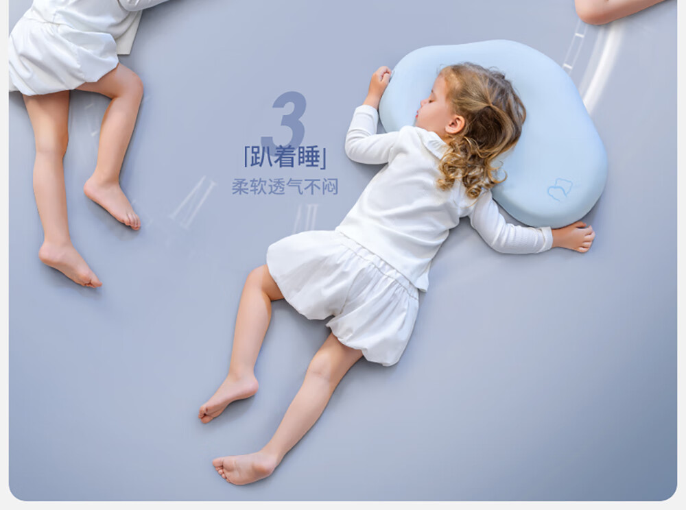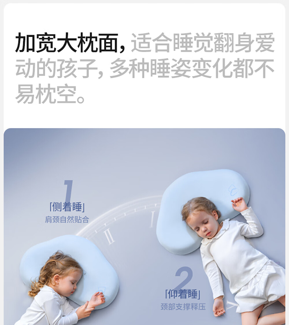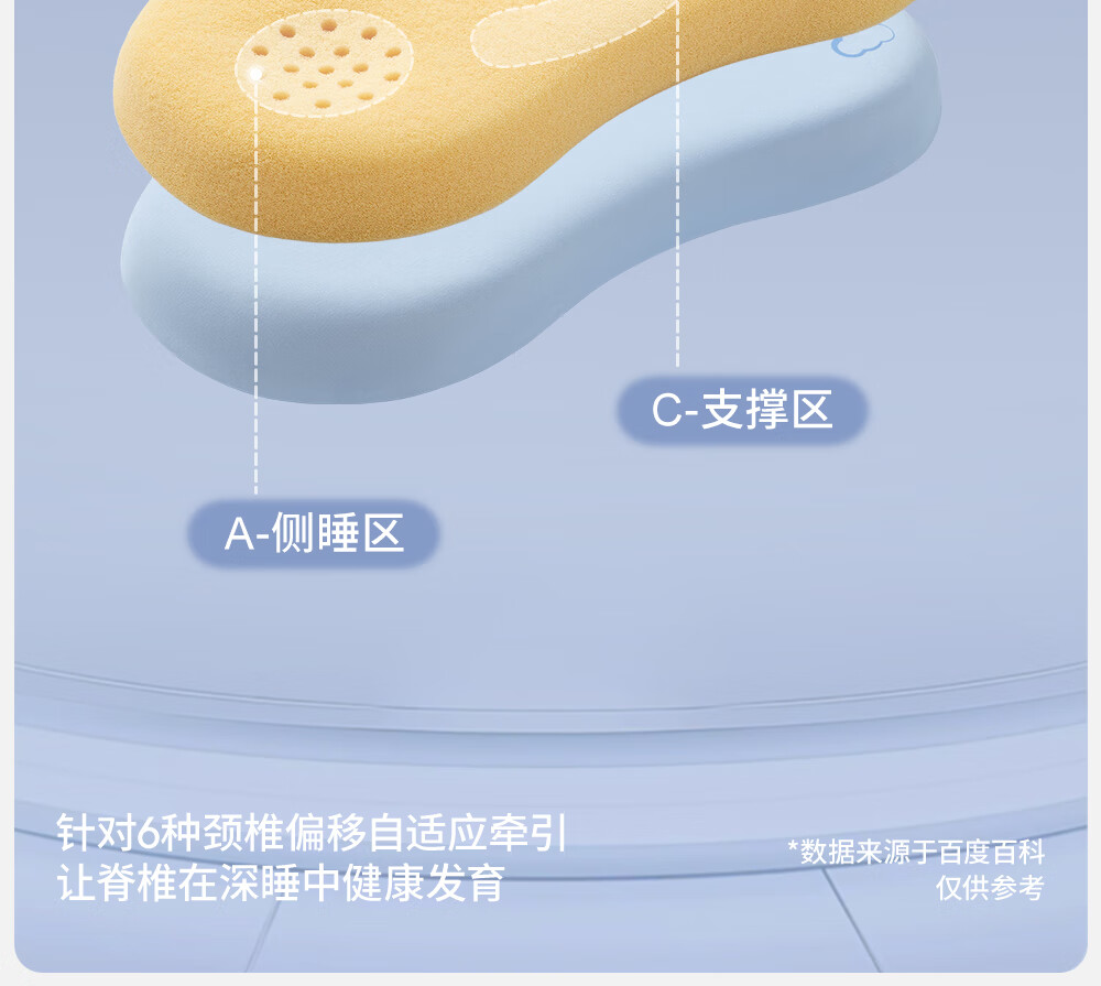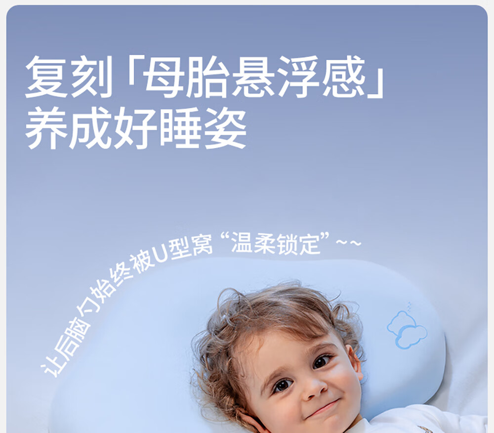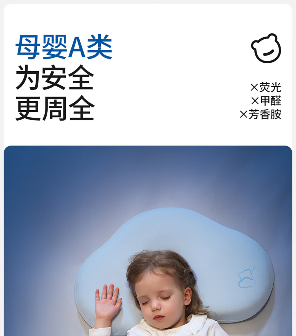 贝肽斯婴儿枕头6个月以上儿童分区宝宝枕护颈神器硅胶枕头1-3岁 晴空蓝