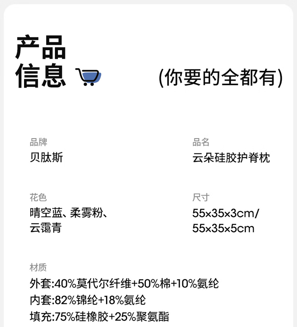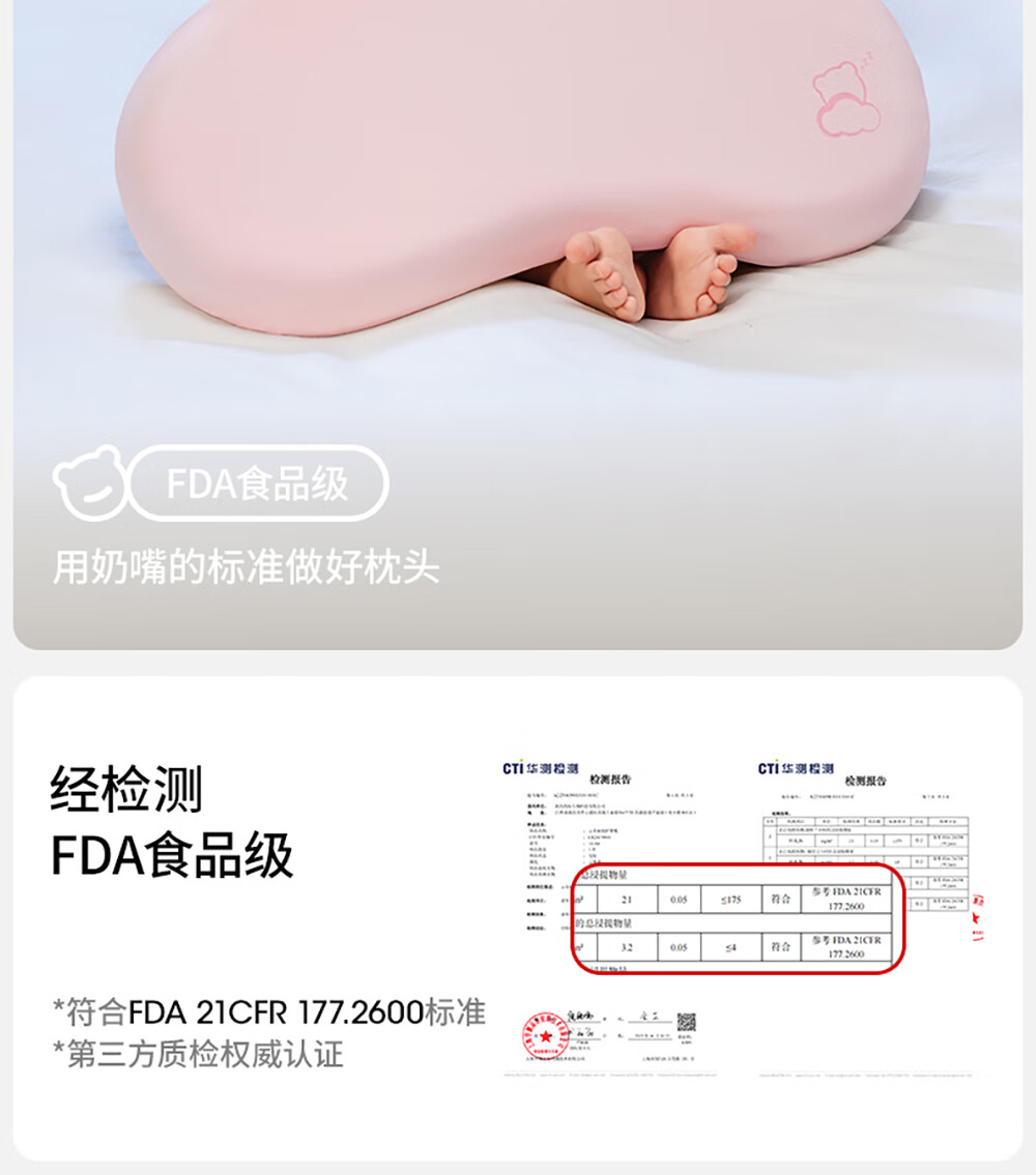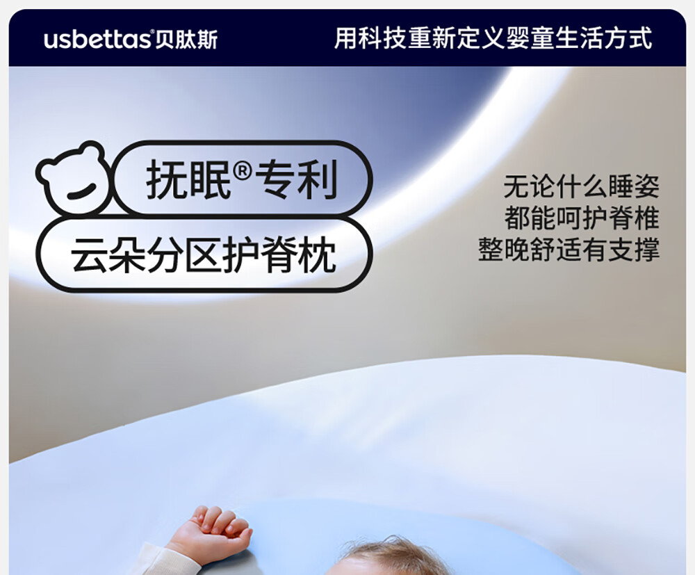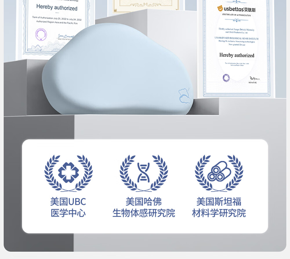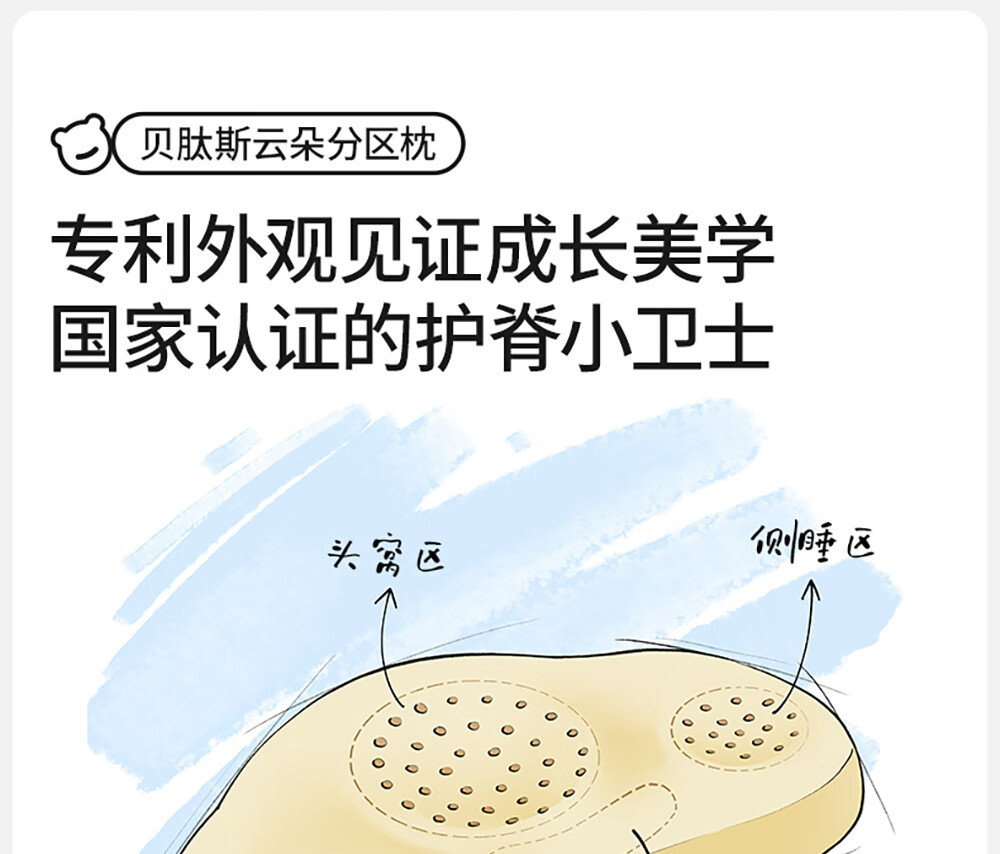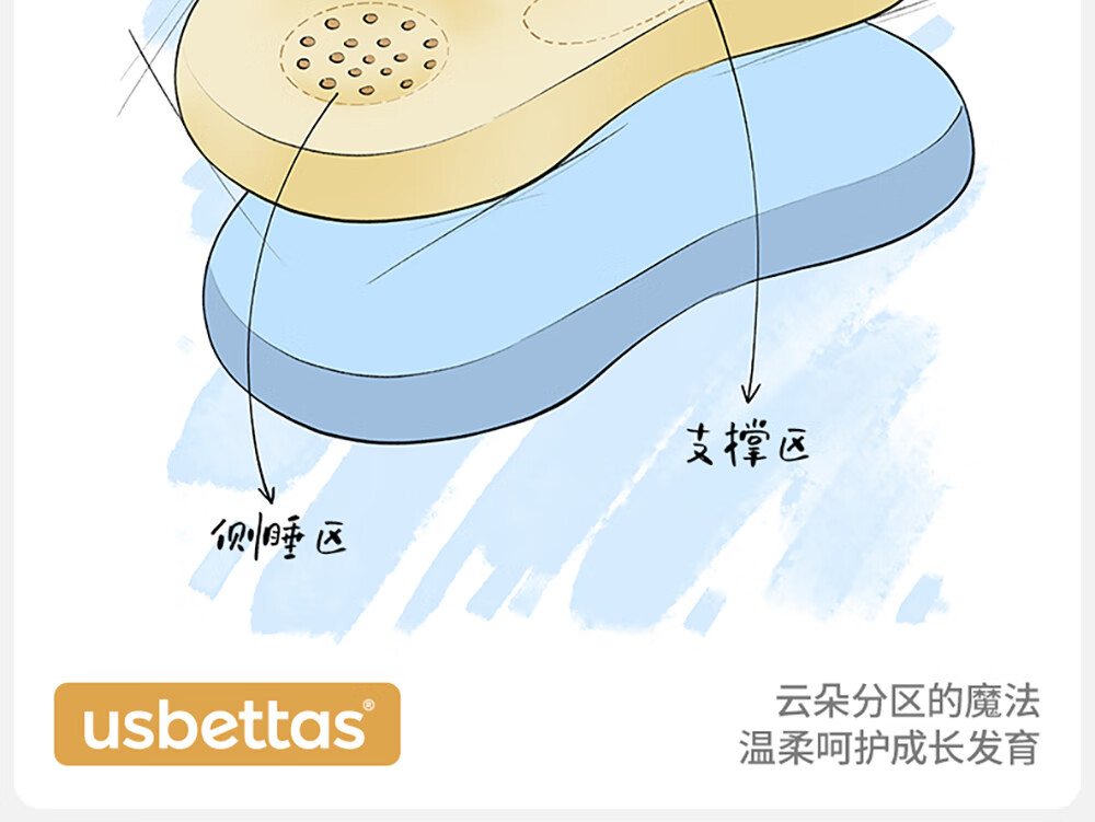 贝肽斯婴儿枕头6个月以上儿童分区宝宝枕护颈神器硅胶枕头1-3岁 晴空蓝