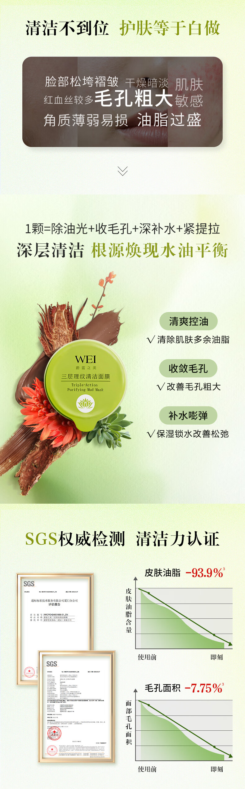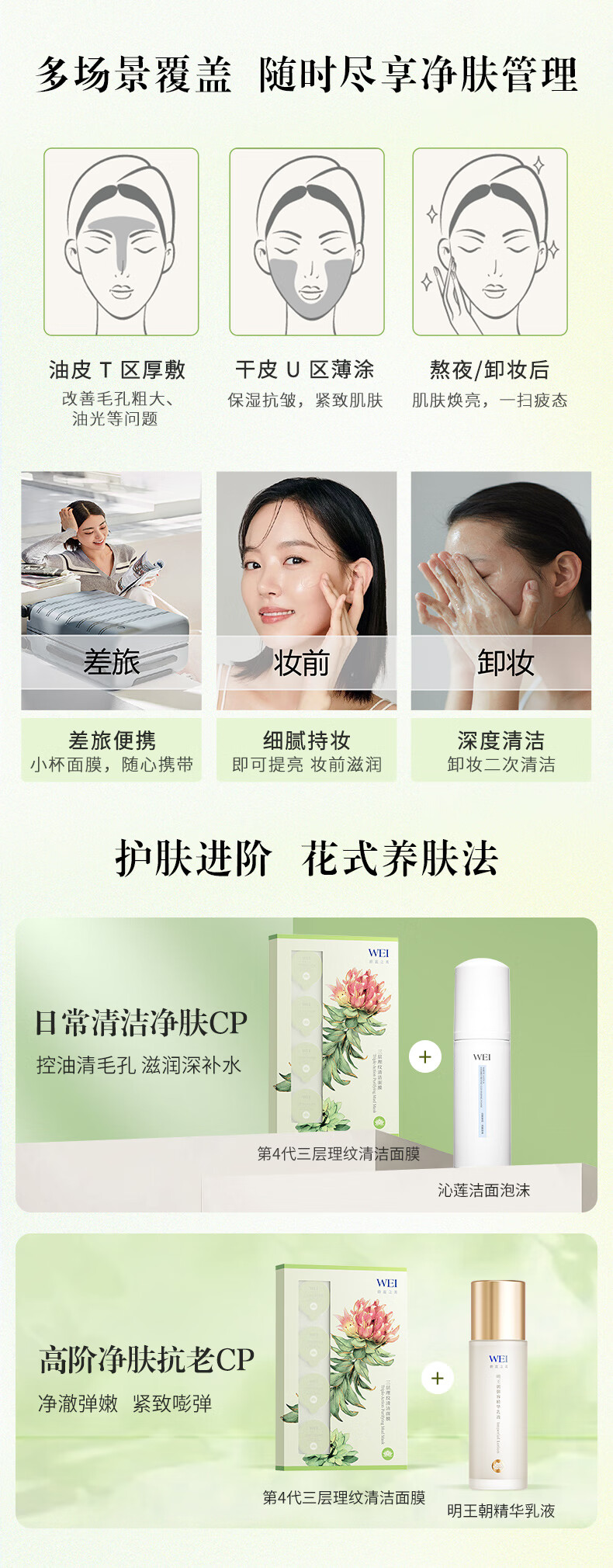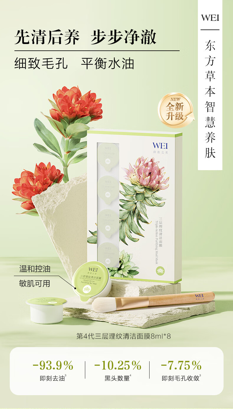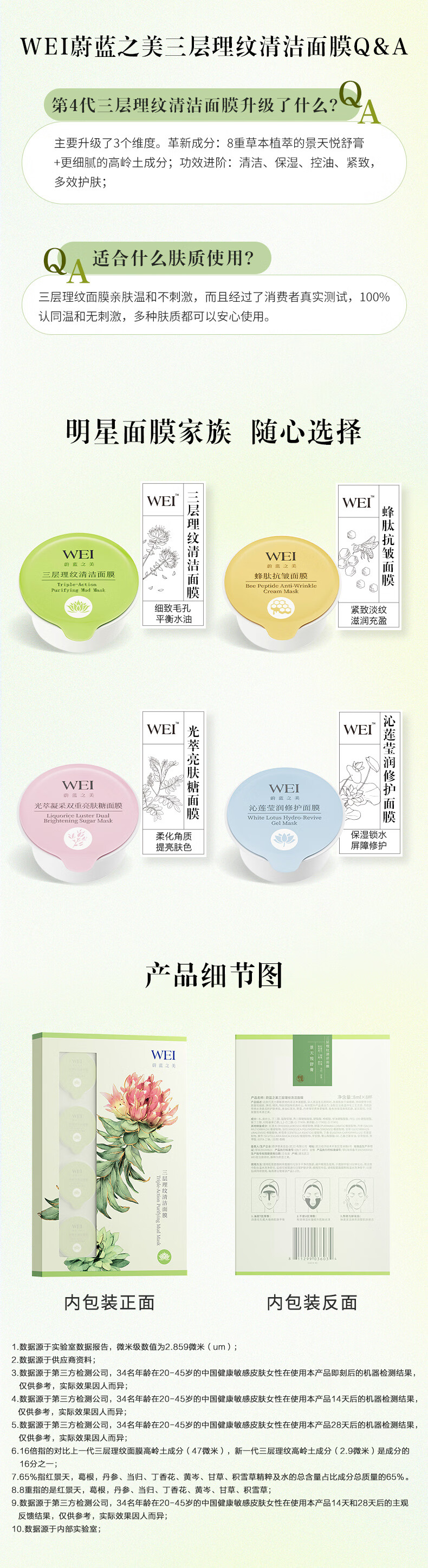 蔚蓝之美WEI三层理纹面膜 深层清洁毛孔补水保湿控油生巧杯去黑头泥膜8颗